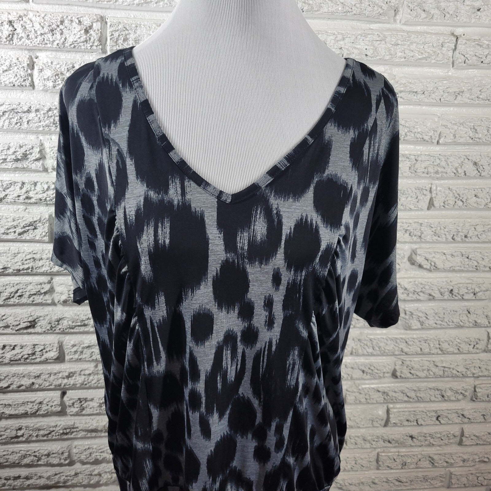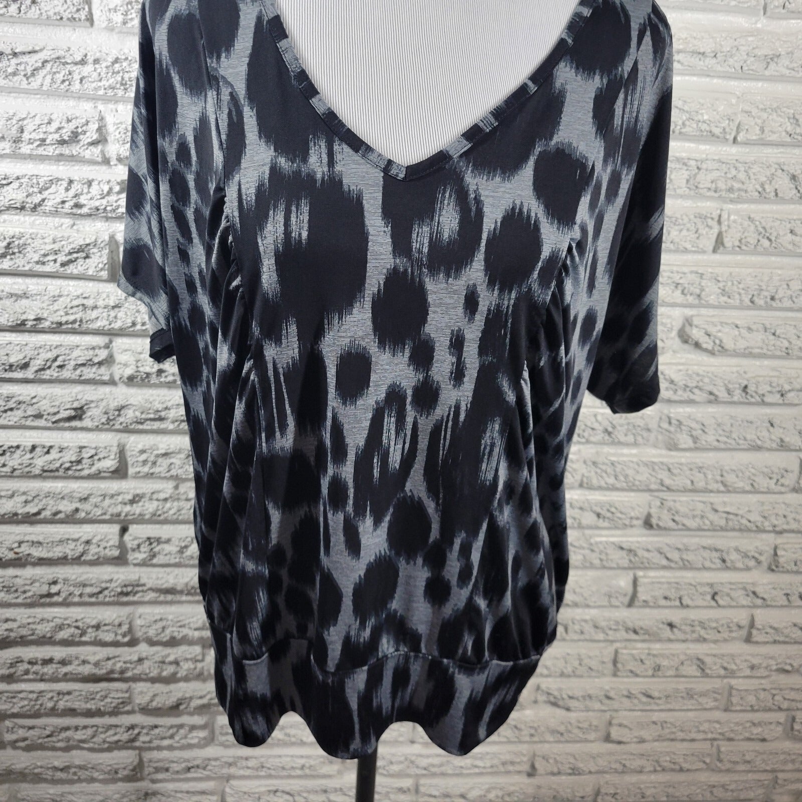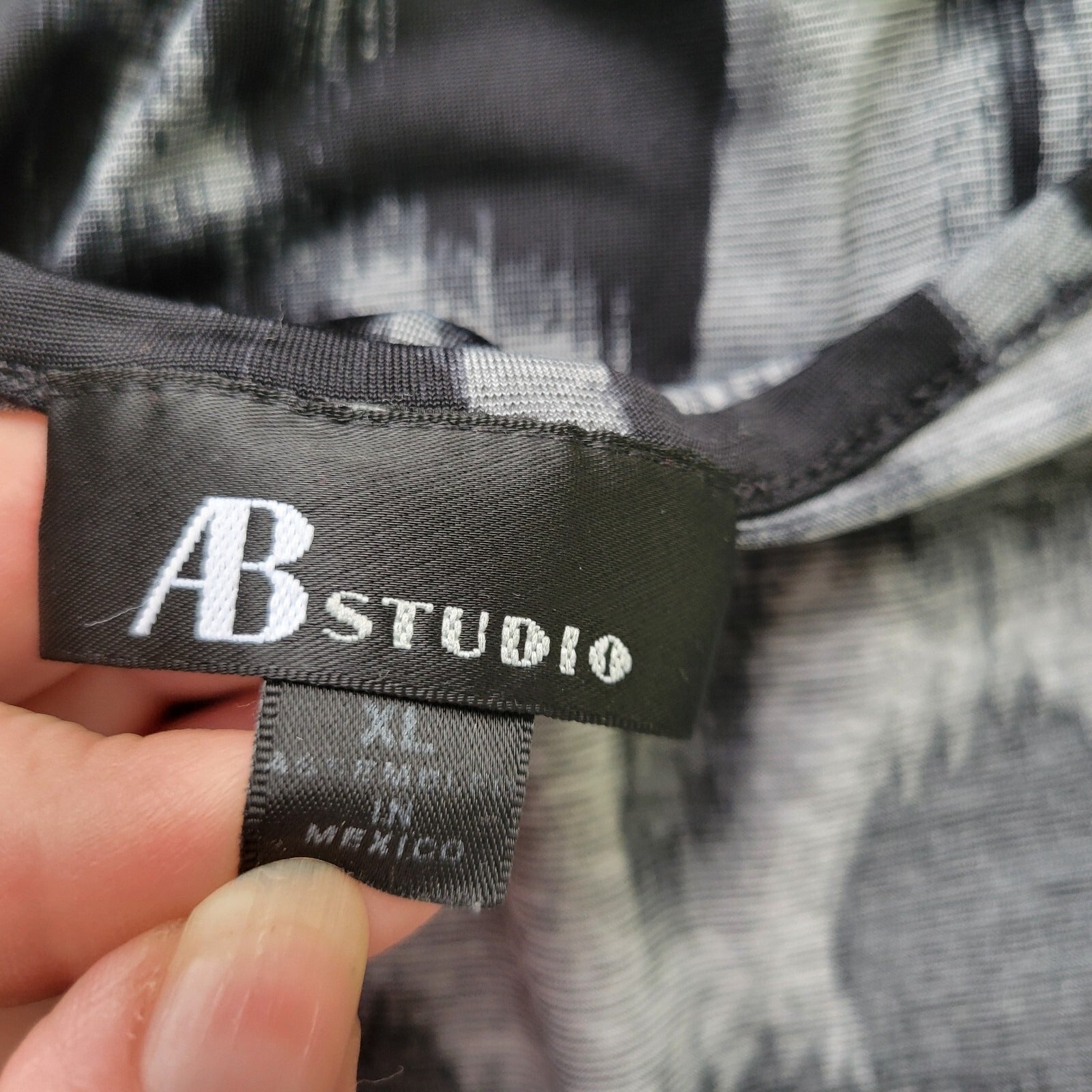 AB Studio Womens Top Extra Large XL Tee Black Gray Watercolor Casual Poly Blend