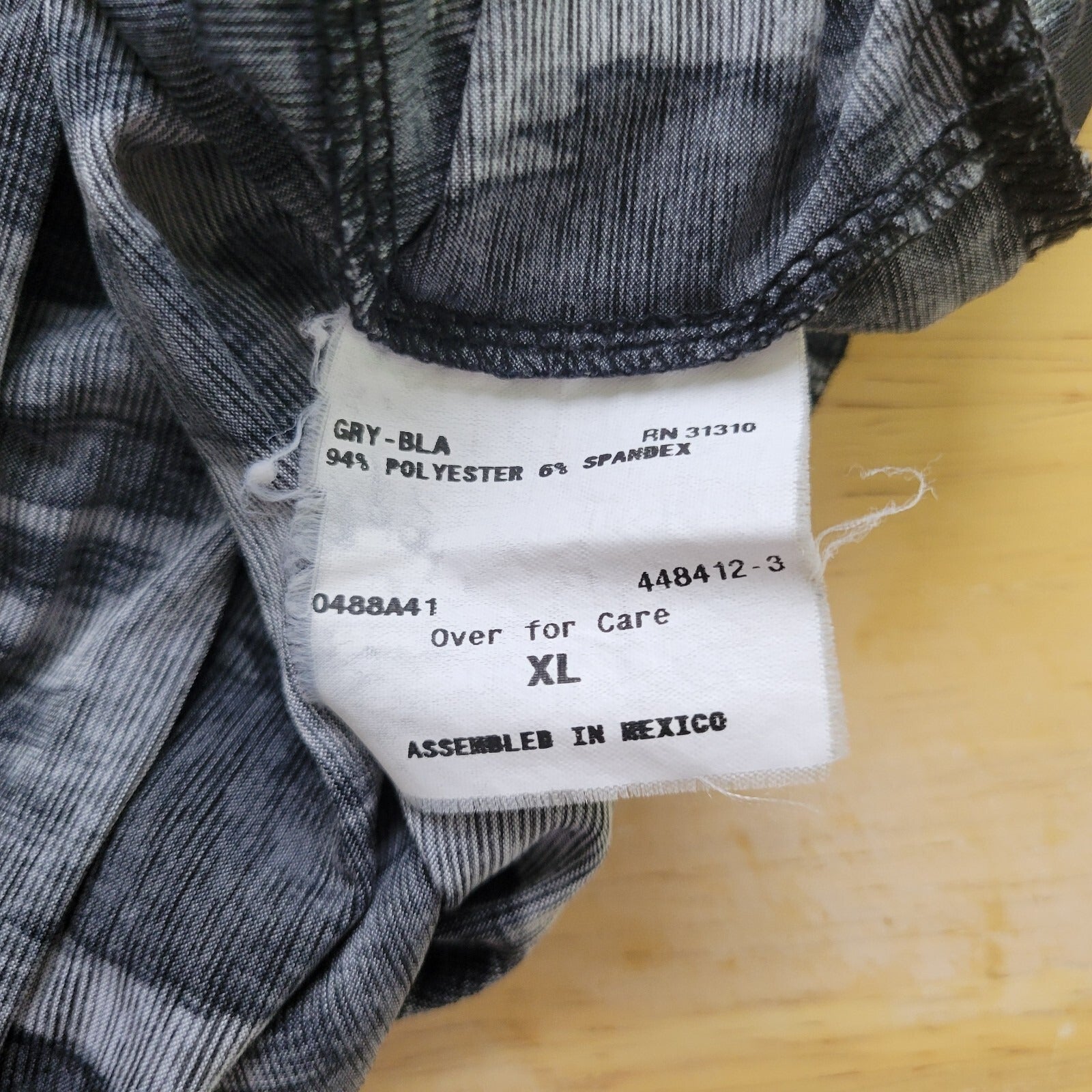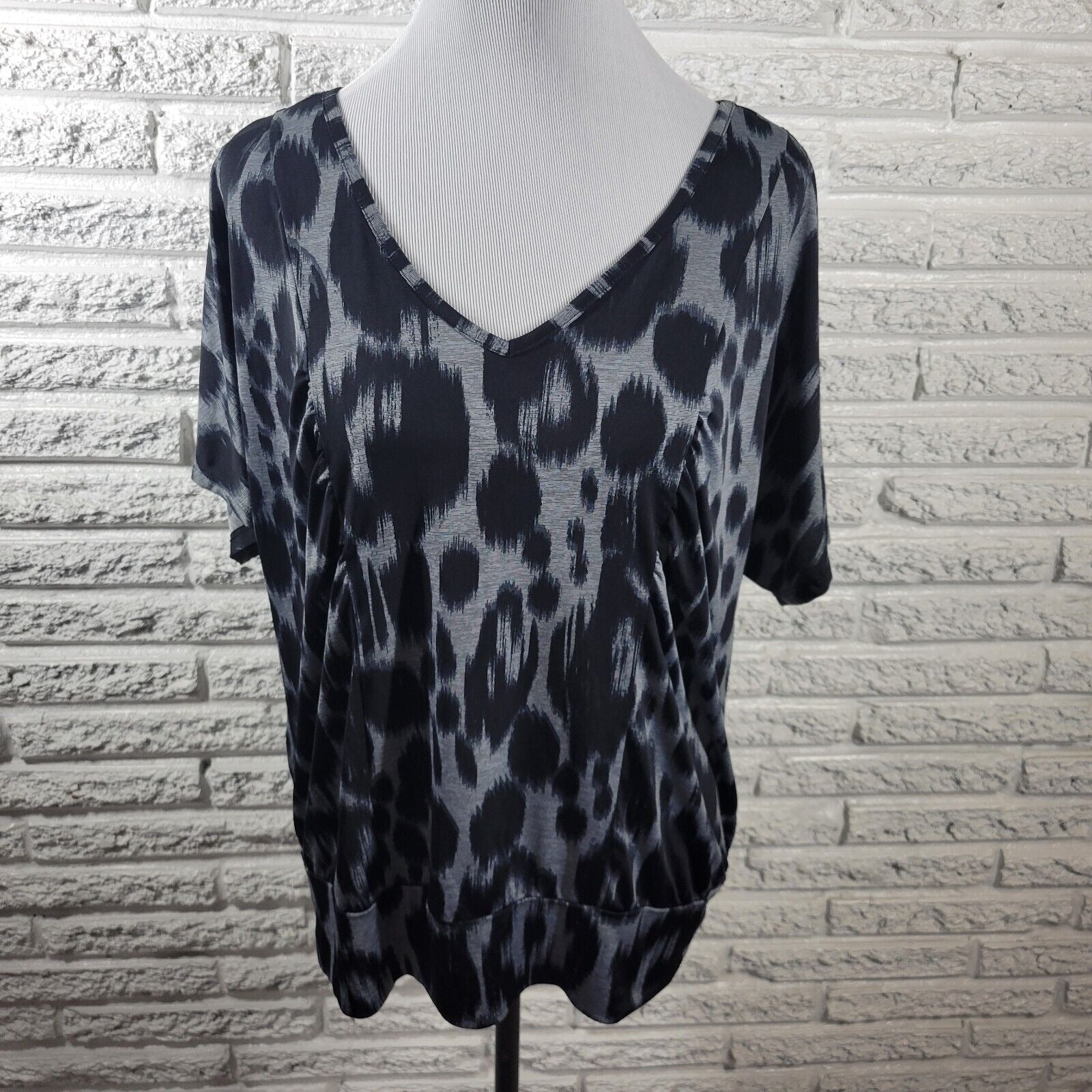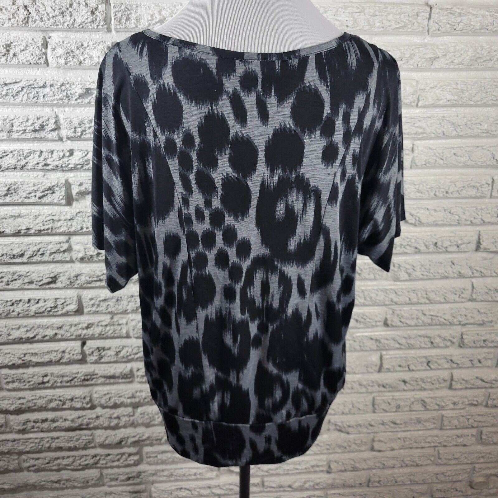 AB Studio Womens Top Extra Large XL Tee Black Gray Watercolor Casual Poly Blend