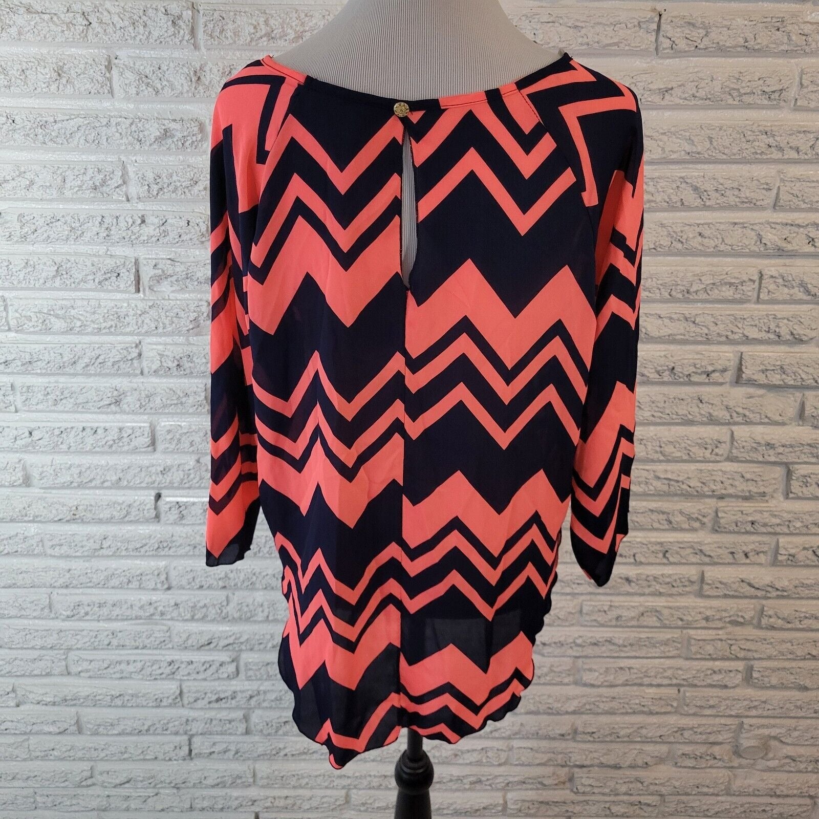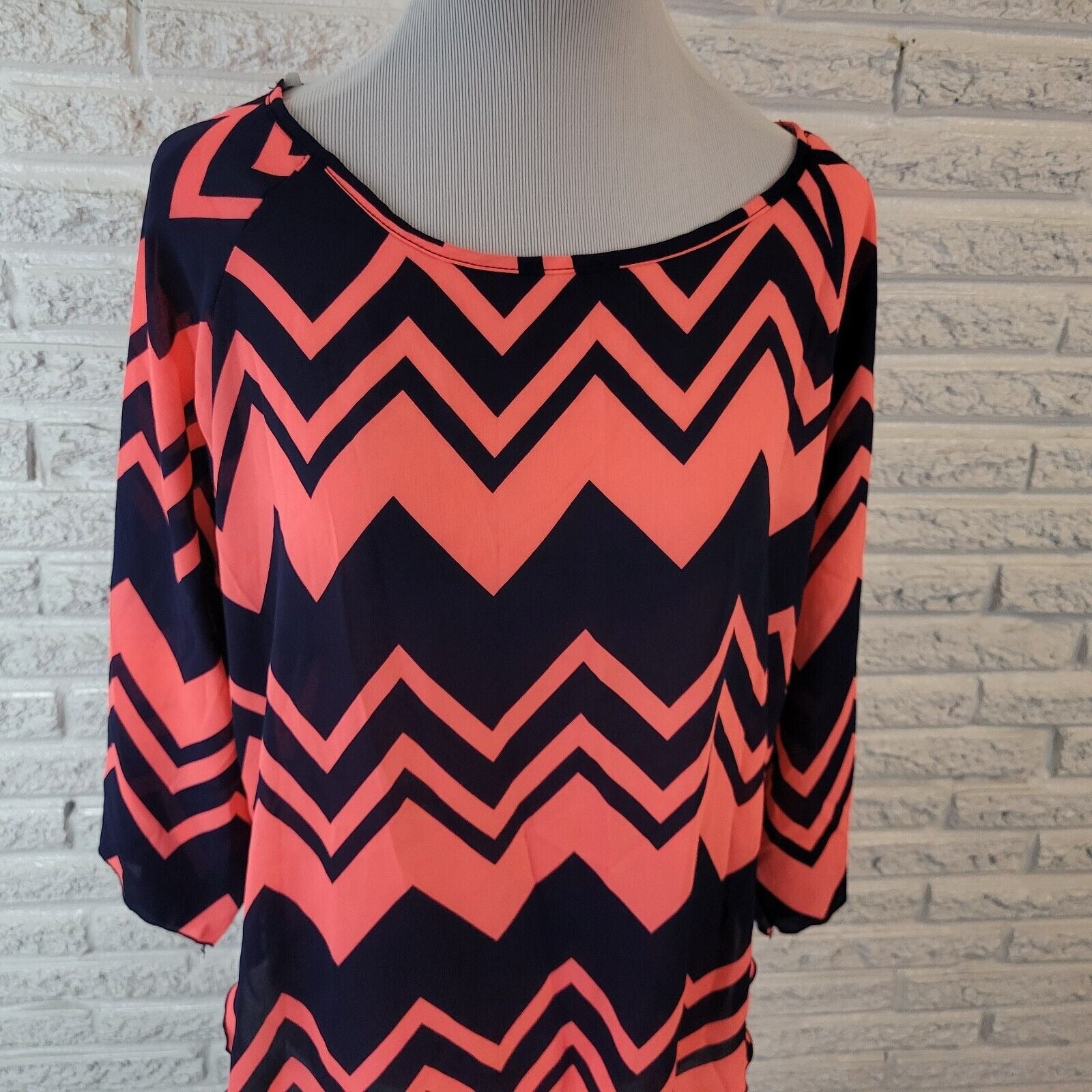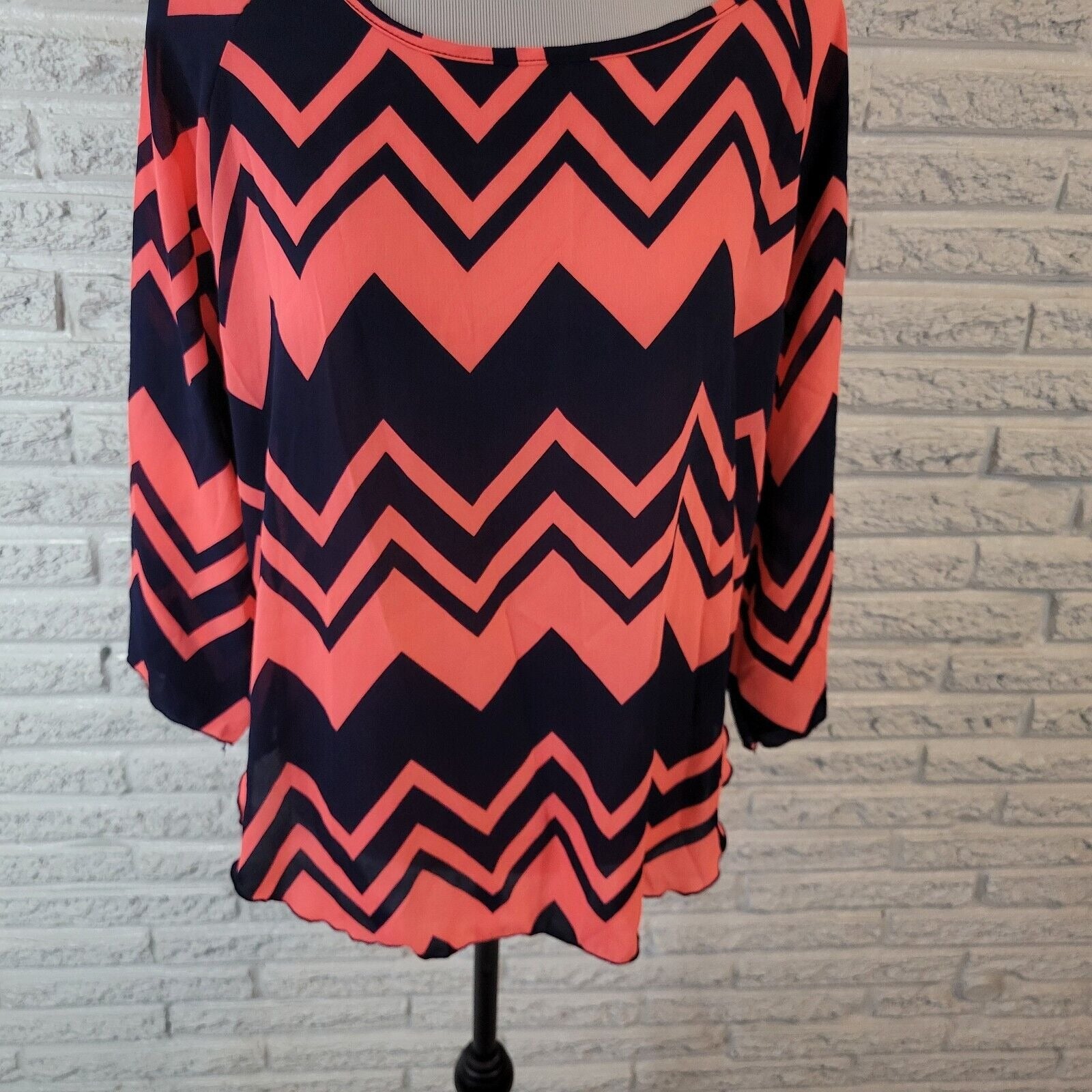 Absolute Angel Womens Top Extra Large Long Sleeve Pink Blue Zig Zag Lightweight