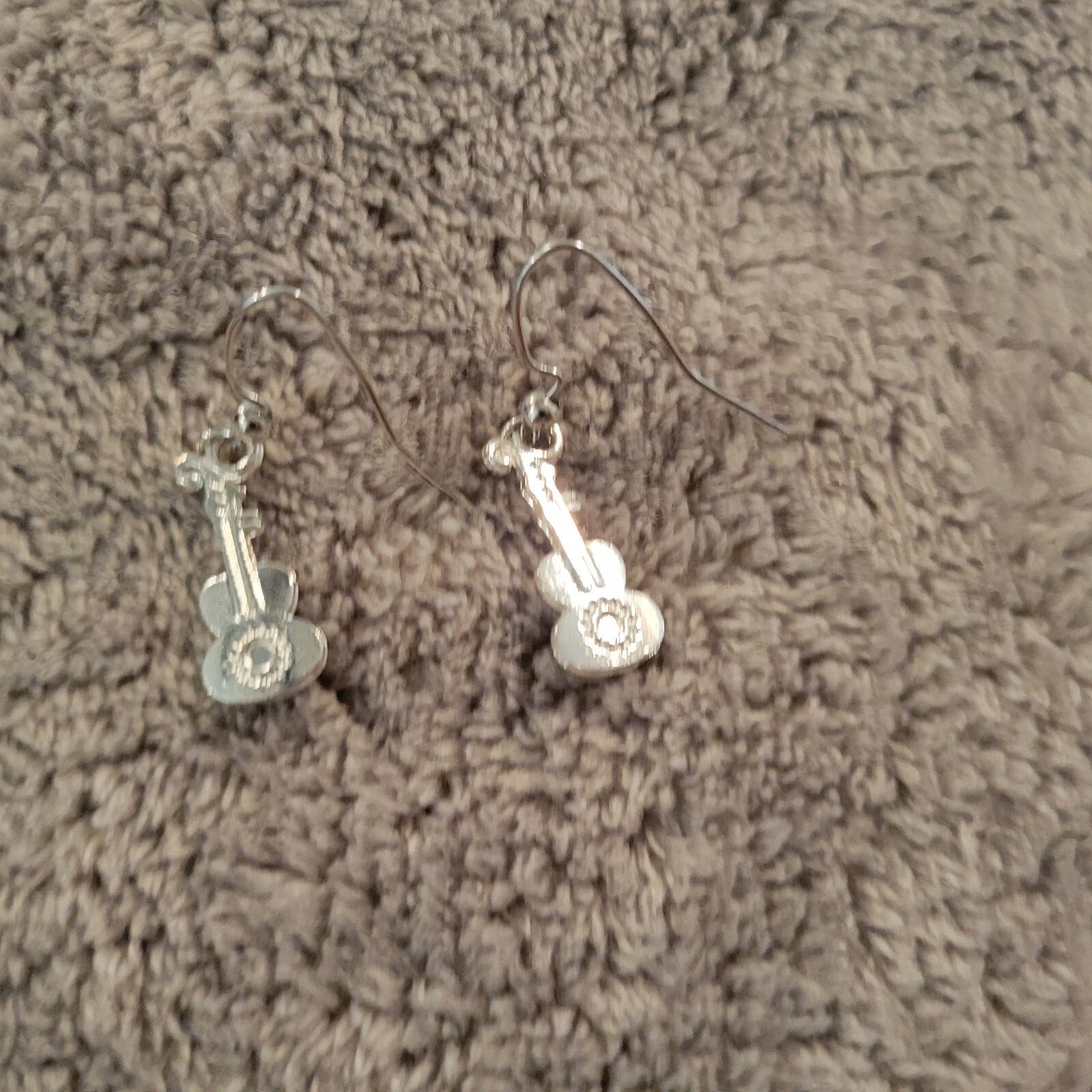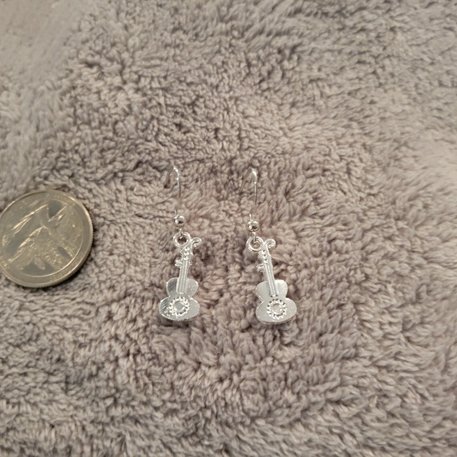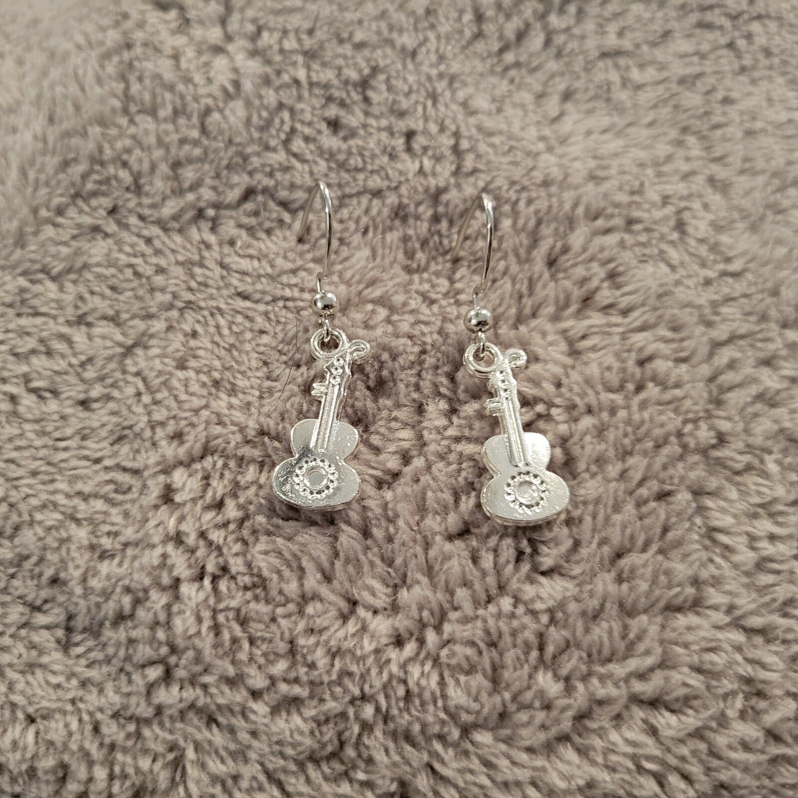 Acoustic Guitar Womens Earrings One Pair Music Silver Tone Alloy Band Orchestra