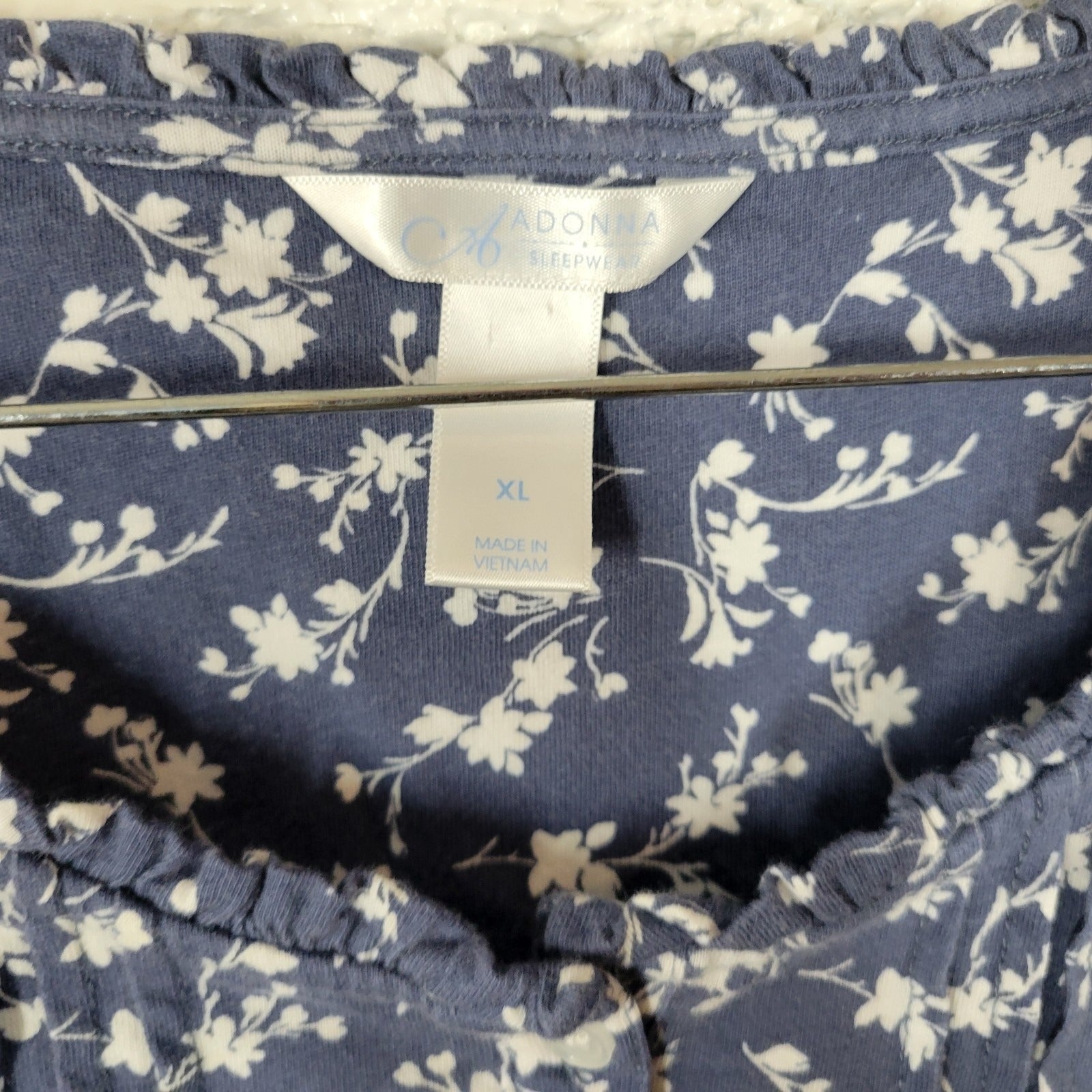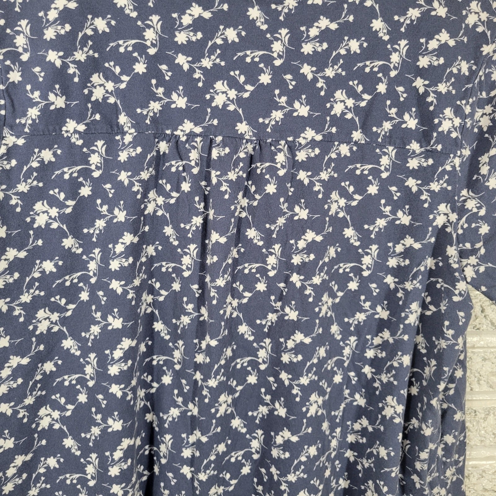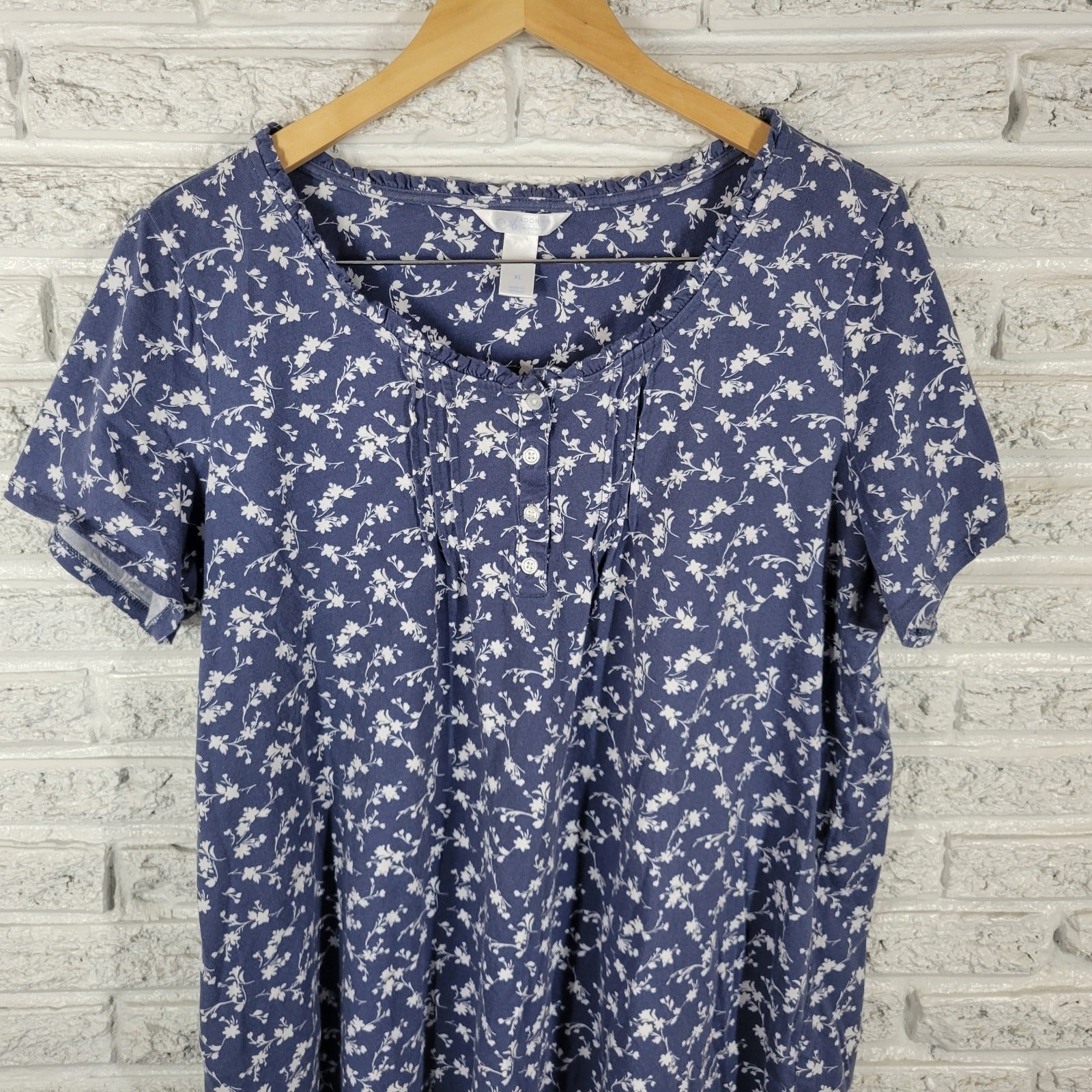Adonna Womens Pajama Top Extra Large Blue Floral Cotton Pintucked Lightweight