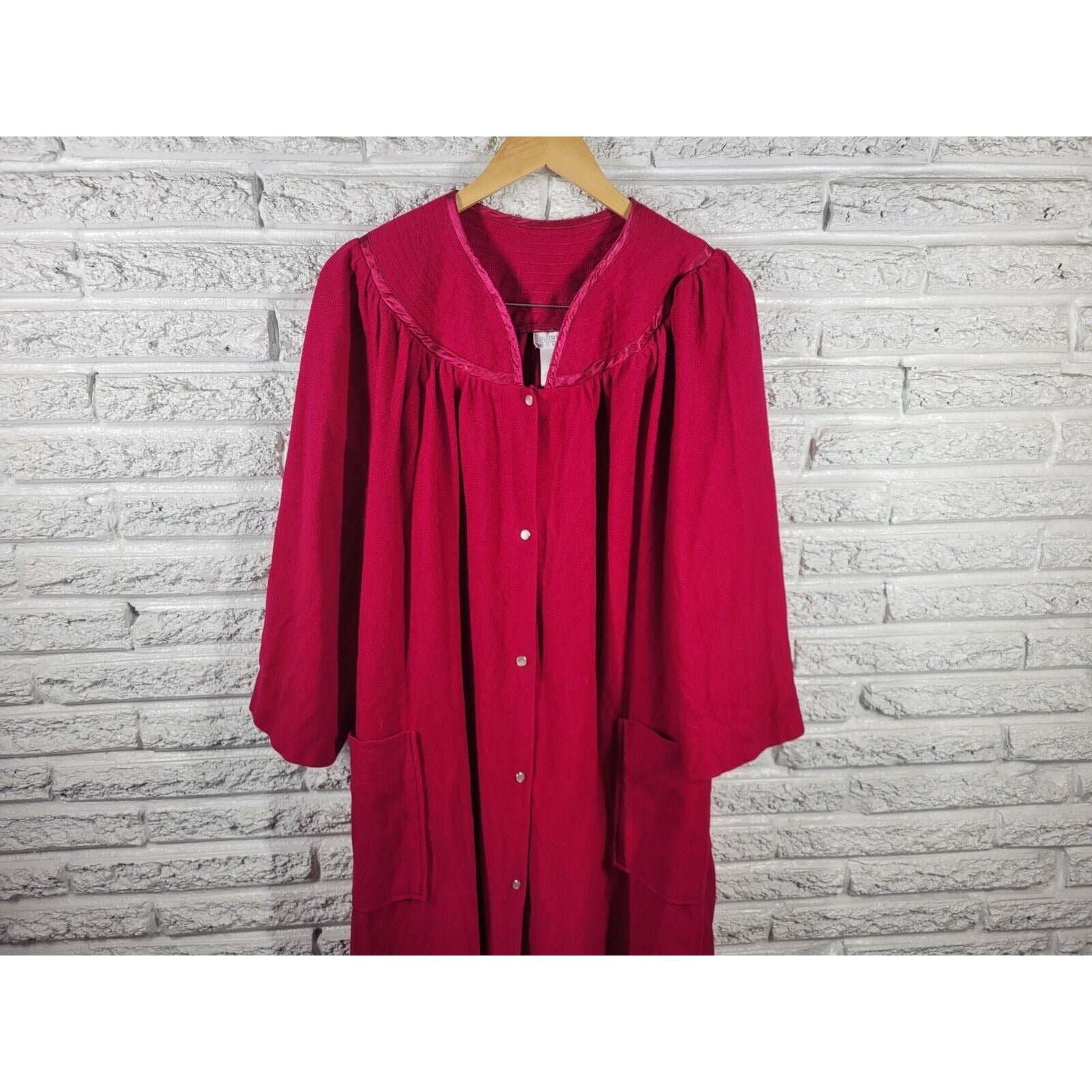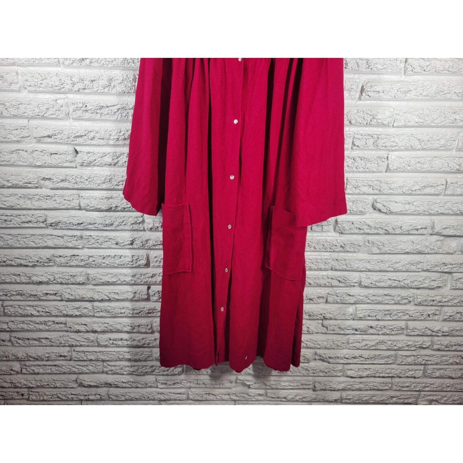 Adonna Womens Robe 1X Long Sleeve Flannel Hot Pink Pockets Snaps Pleated Lounge