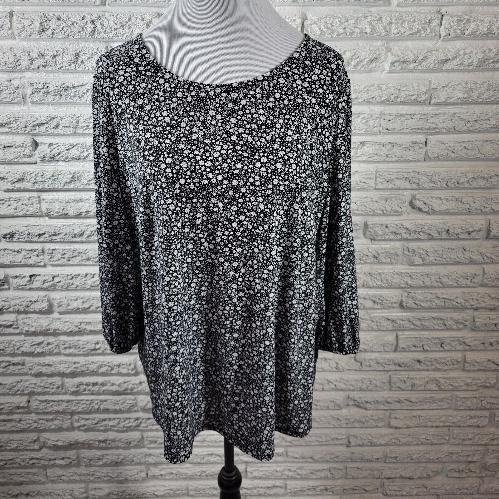Adrianna Papell Womens Top 1X Long Sleeve Black Floral Poly Blend Back Keyhole