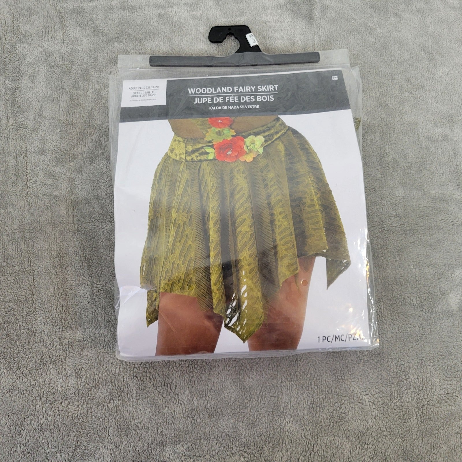 This product is an adult women's Halloween costume in size 2XL, featuring a woodland fairy skirt. The skirt is designed for a show or theater occasion, with a whimsical and festive style that fits the Halloween theme. Made for plus size women, this costume offers a unique and playful outfit option for those looking to dress up for a special event. Perfect for those who enjoy dressing up and want a fun and imaginative costume for Halloween.