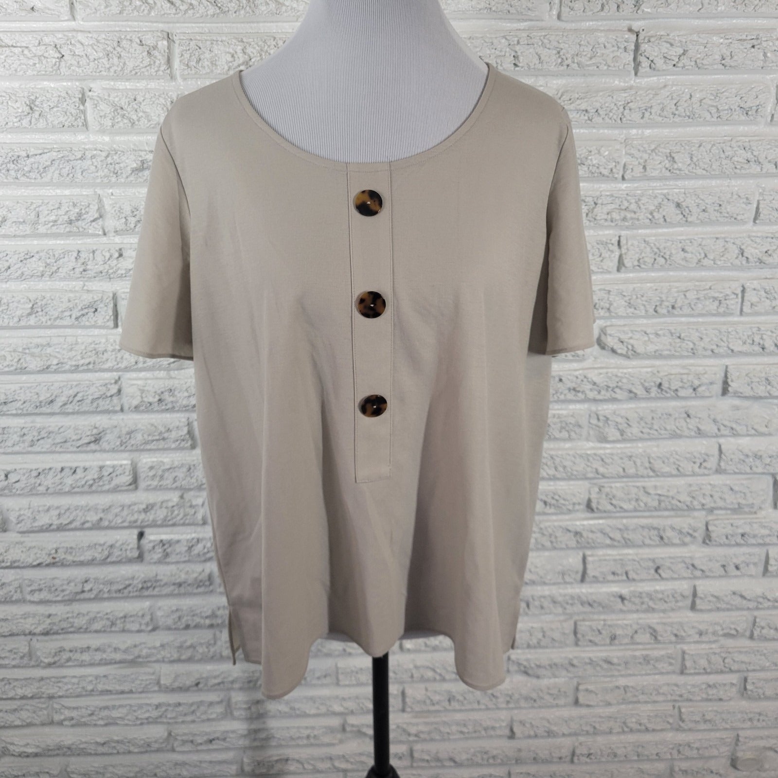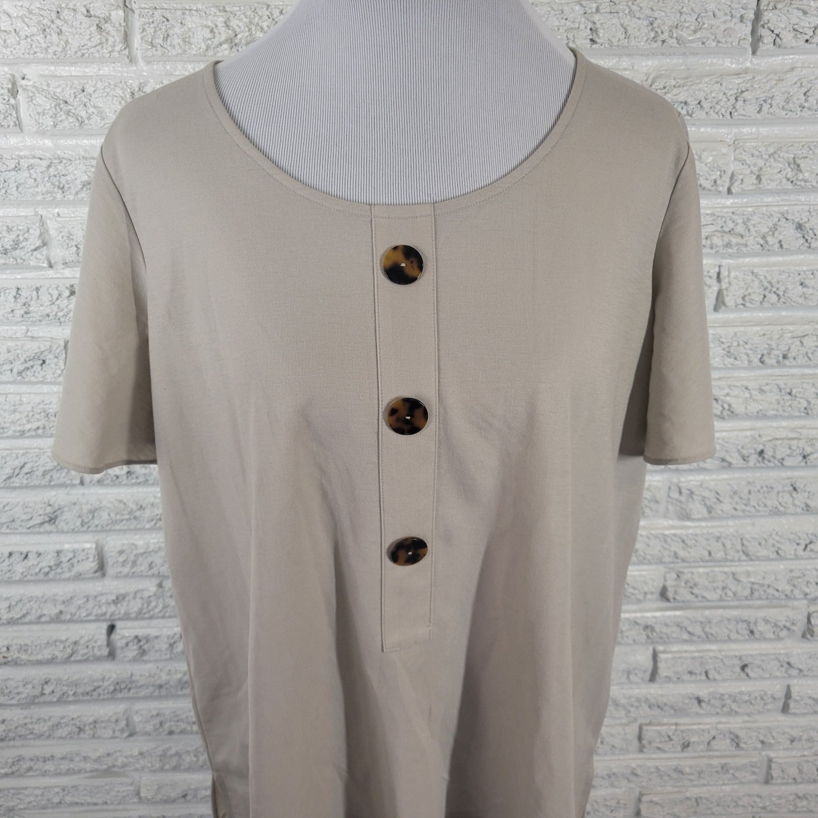 Alfani Womens Top 0X Plus Flutter Sleeve Beige Deco Buttons Office Lightweight
