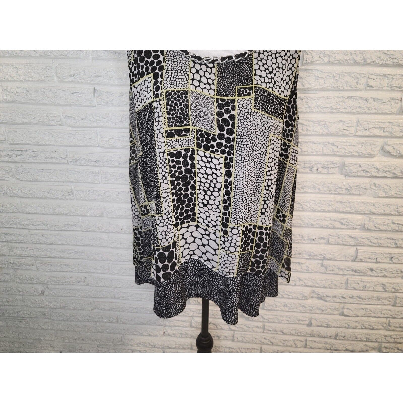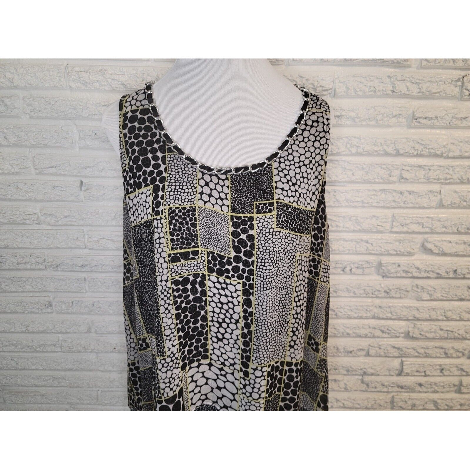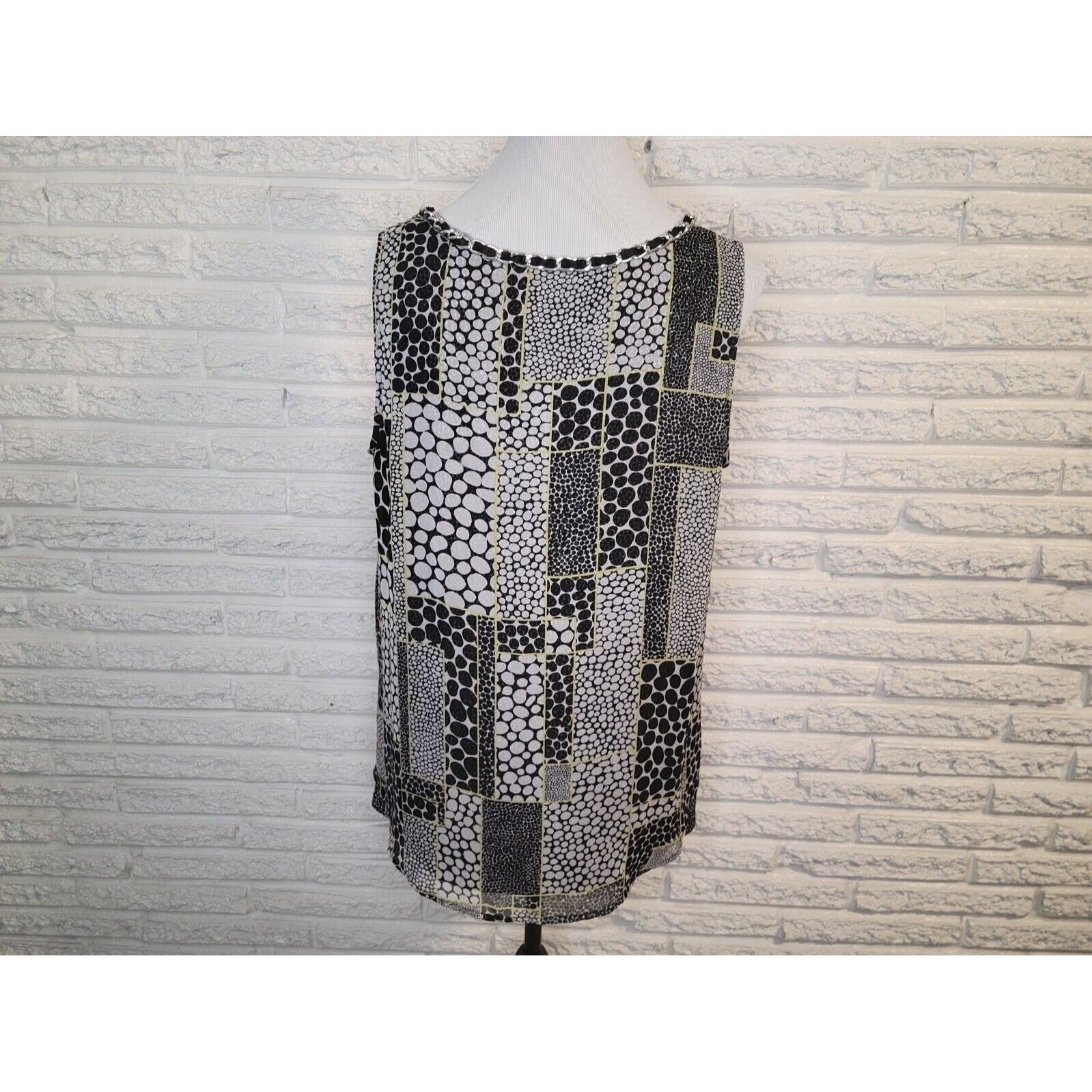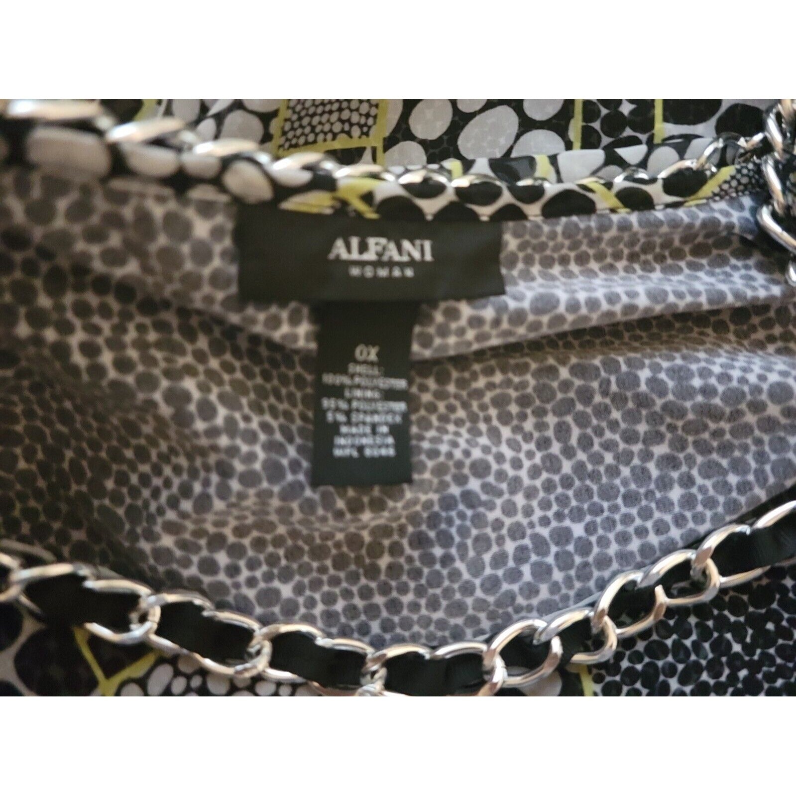 This Alfani women's tank top is a stylish addition to your wardrobe. The geometric pattern in black adds a touch of sophistication, while the boat neck and sleeveless design make it versatile for both casual and business occasions. The pullover closure and stretchy polyester material make it comfortable to wear in any season. The tank top is available in size 0X, which fits regular plus-size women. It is suitable for all seasons, including winter, summer, fall, and spring. Made in Indonesia, this basic style top is perfect for any woman who wants to look fashionable and feel comfortable.