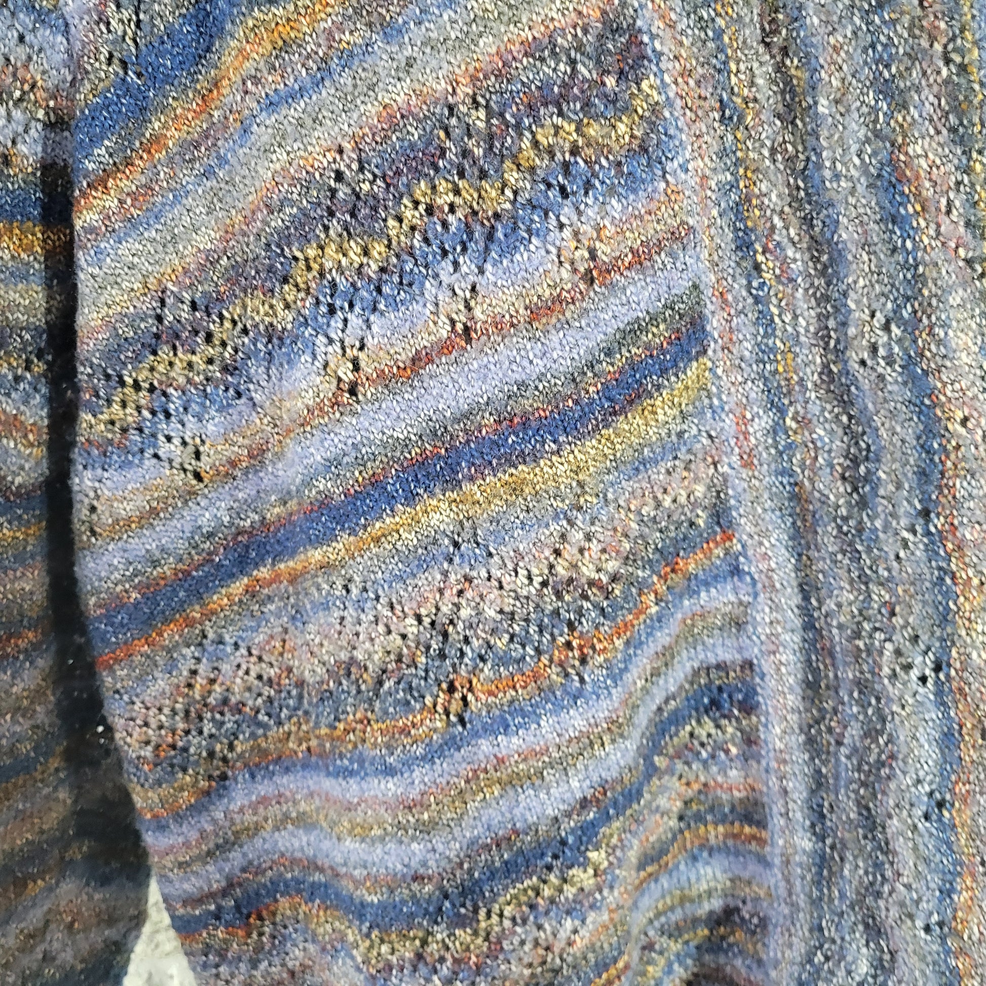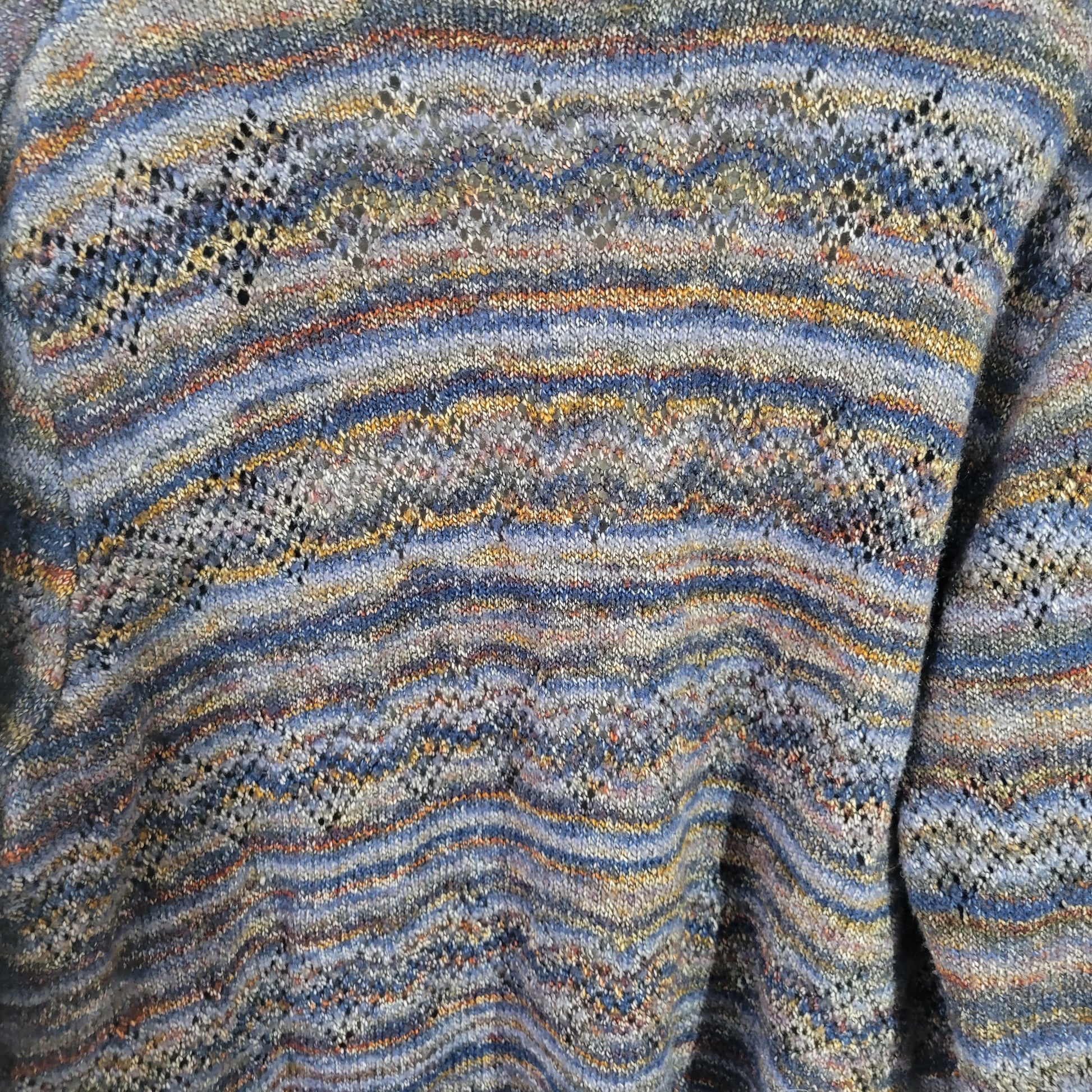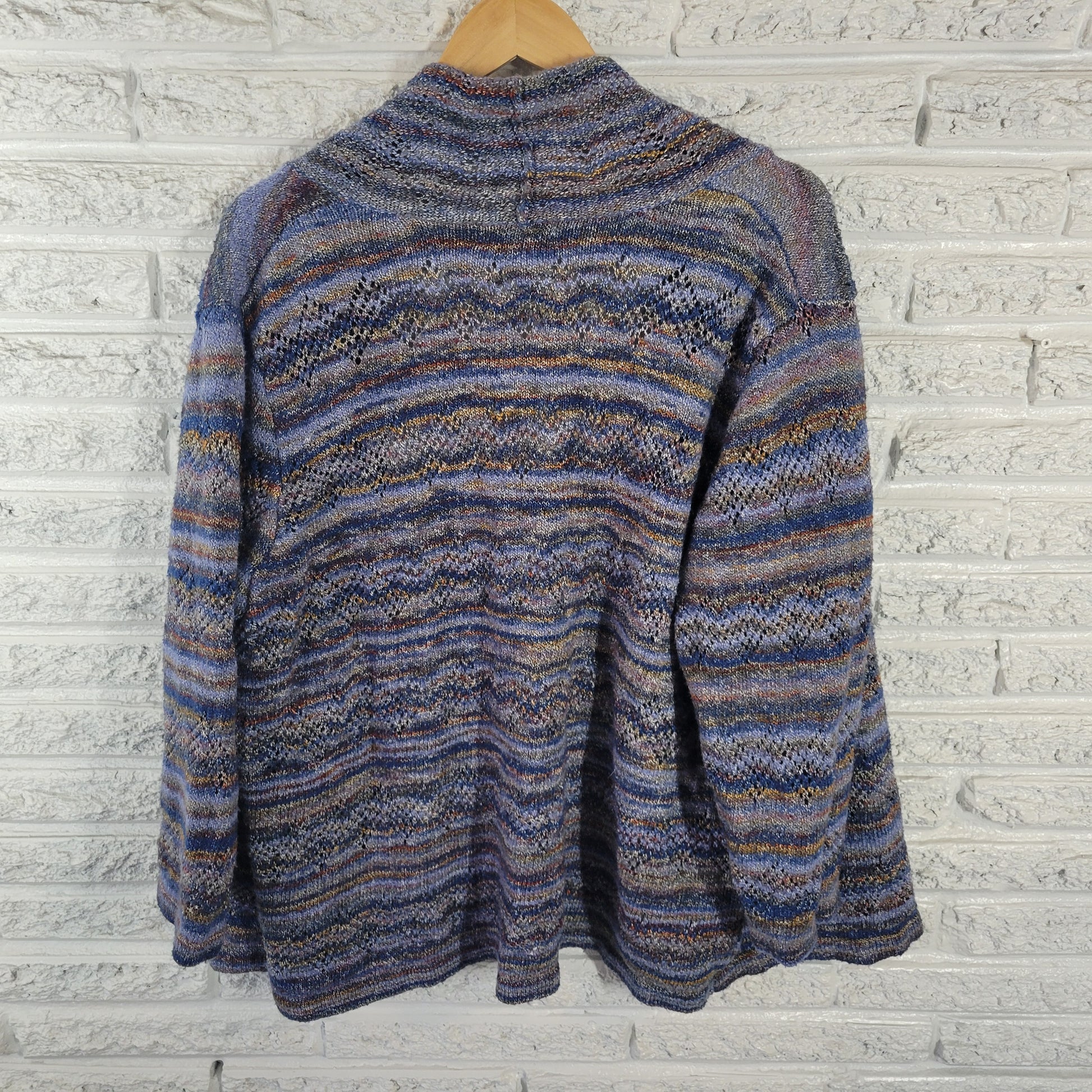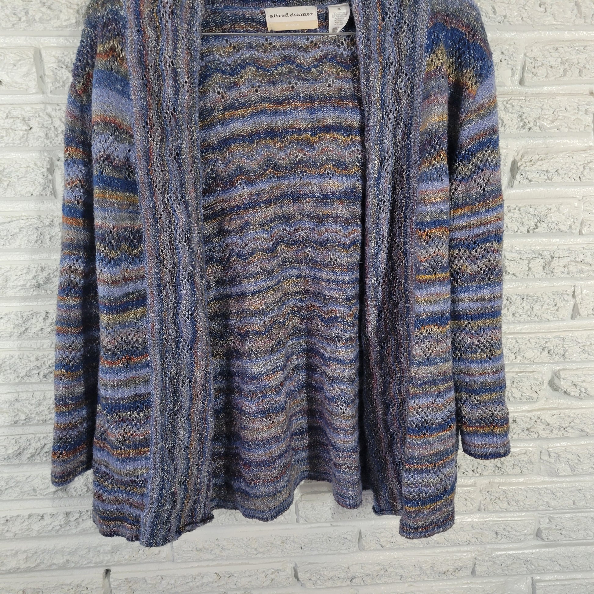 Alfred Dunner 2X Cardigan Sweater Blue Brown Eyelet Open Front 3/4 Sleeve SWE45E