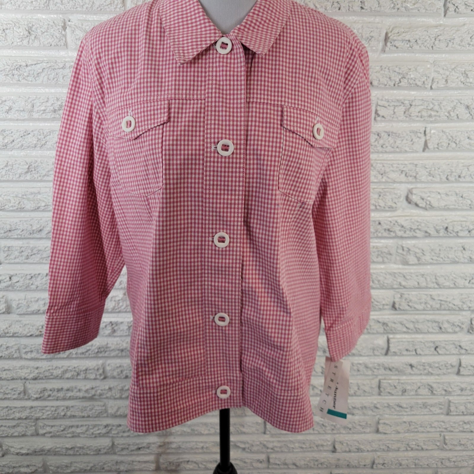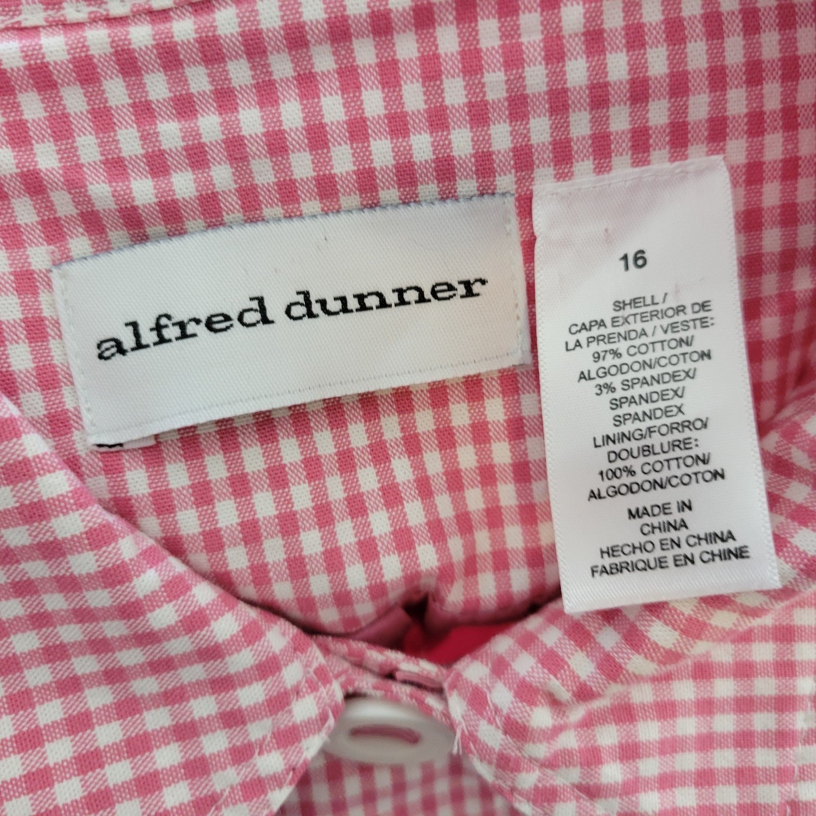 Alfred Dunner Women Jacket 16 Blazer Carnation Pink Gingham Check Pockets Casual