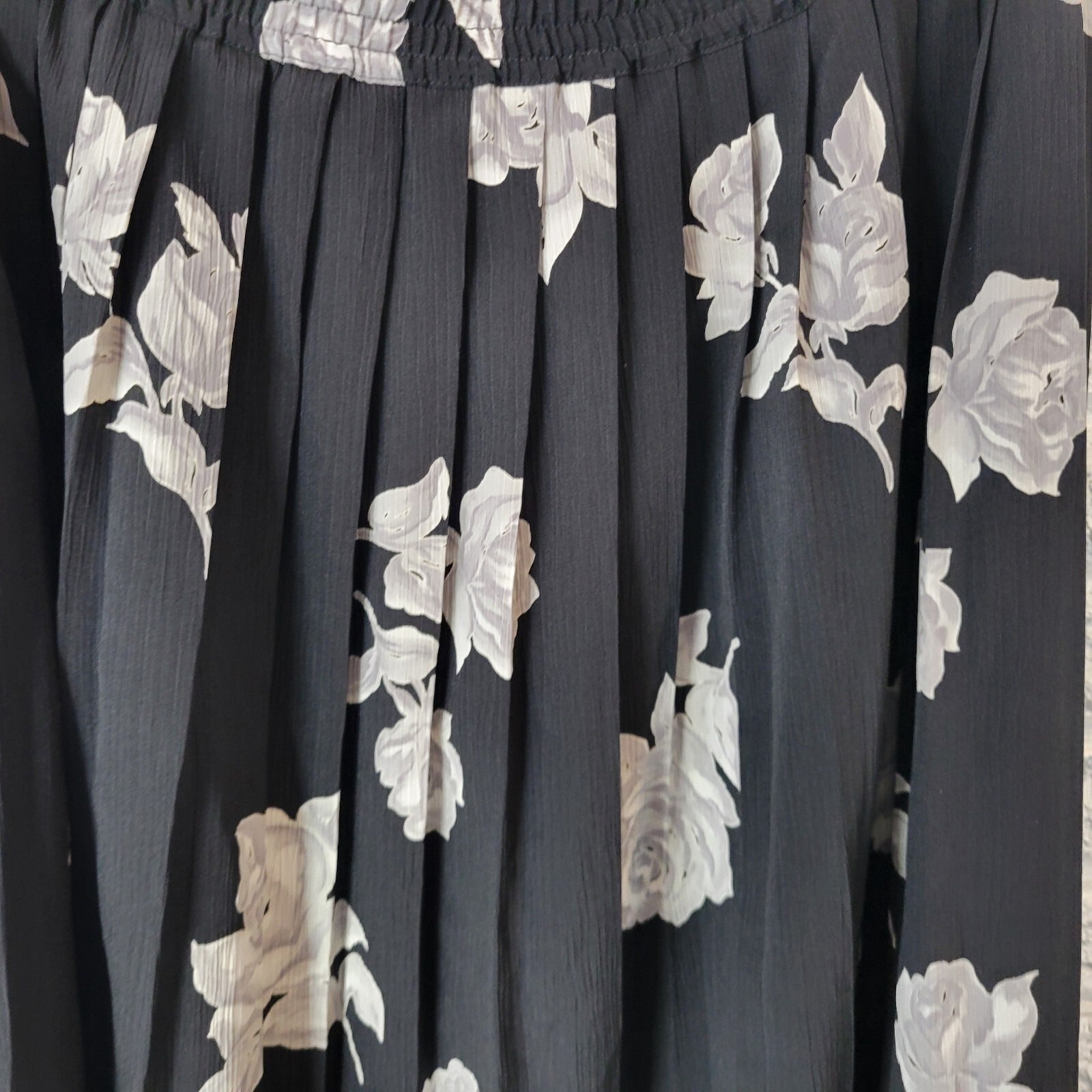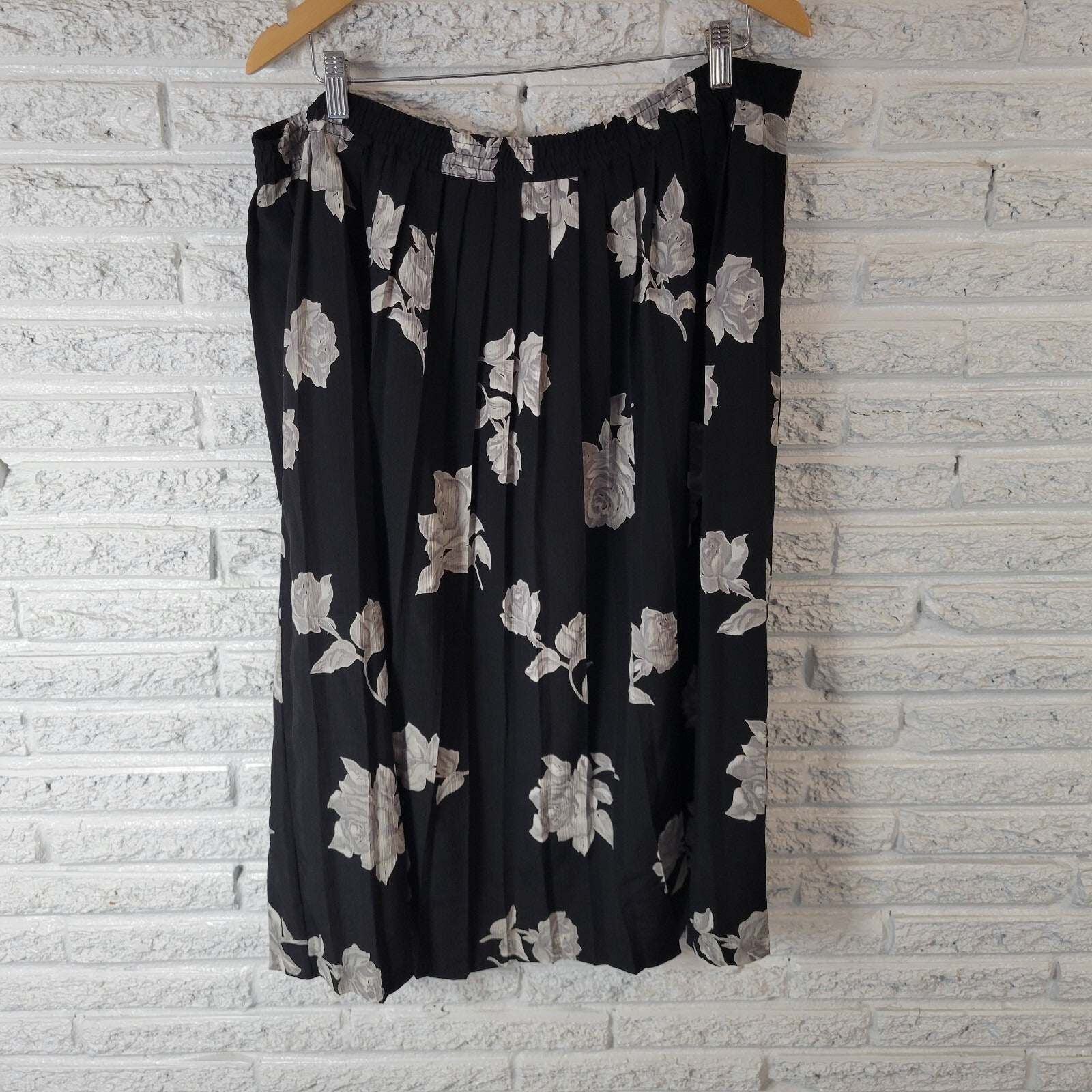 Alfred Dunner Women Skirt 22W Plus ALine Pull On Black Gray Floral Sheer Pleated