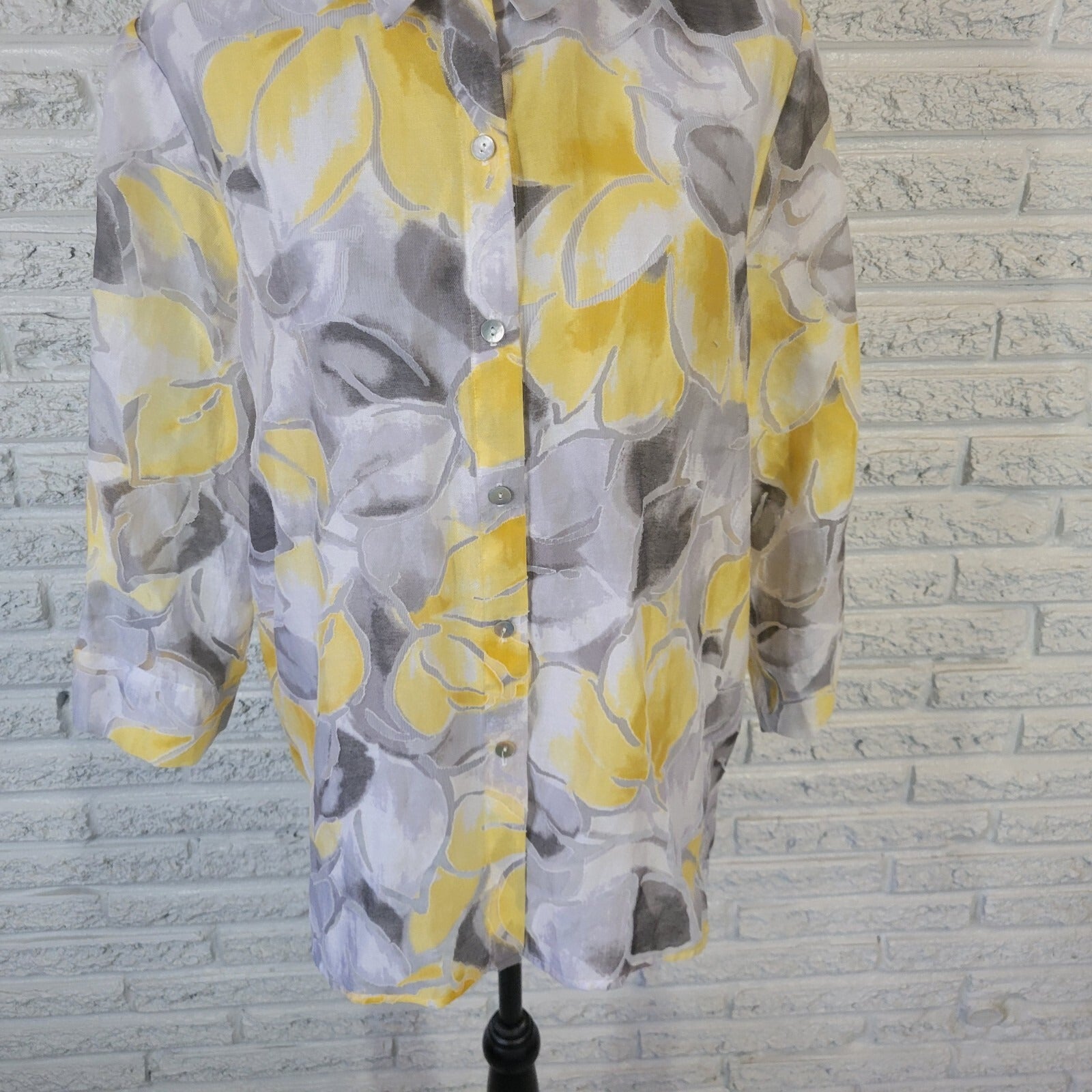 Alfred Dunner Women Top 18 Plus Yellow Floral Sheer Lightweight Button Up Career