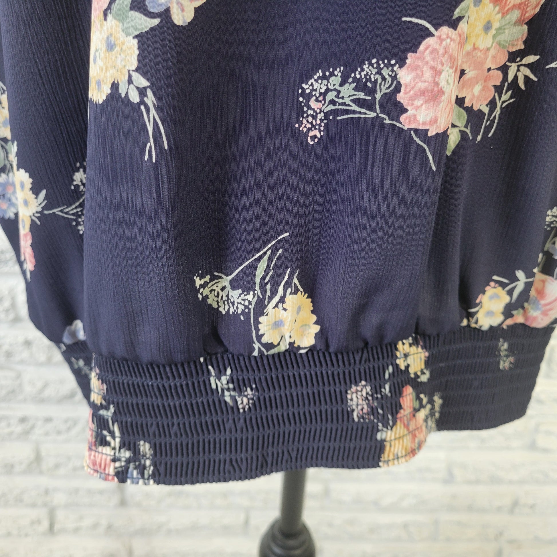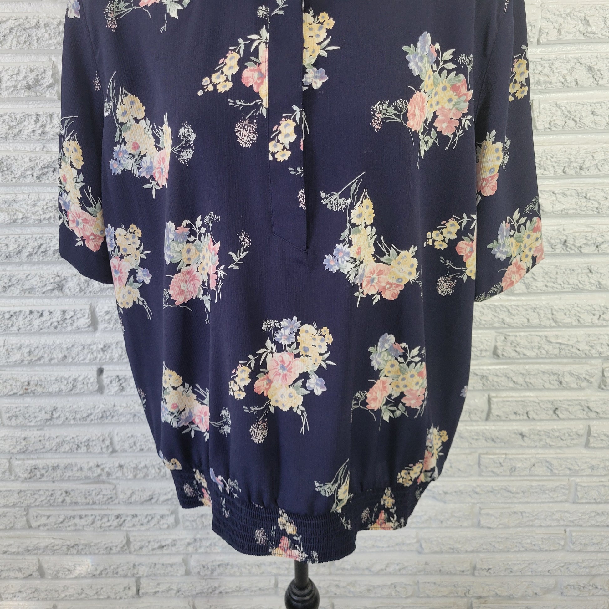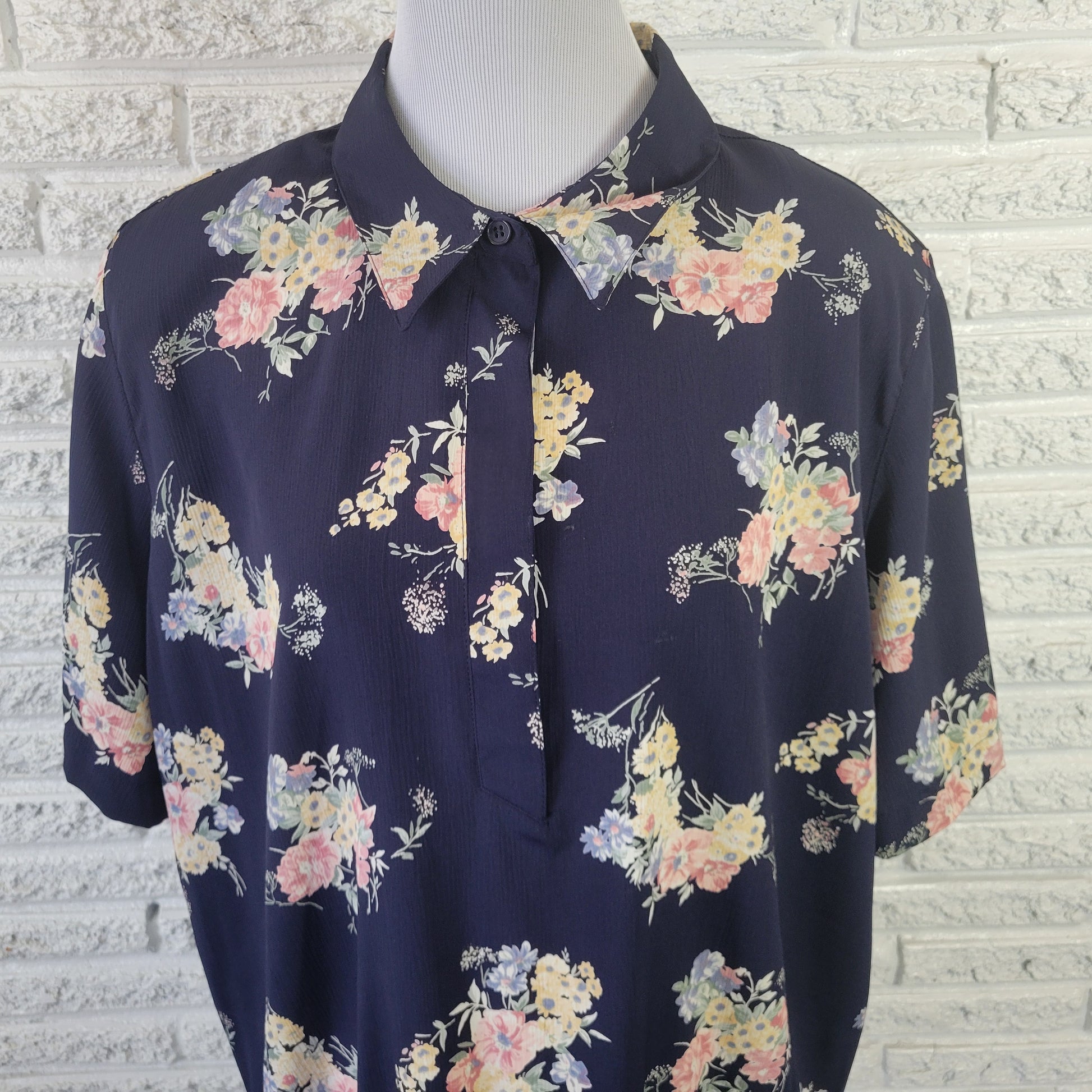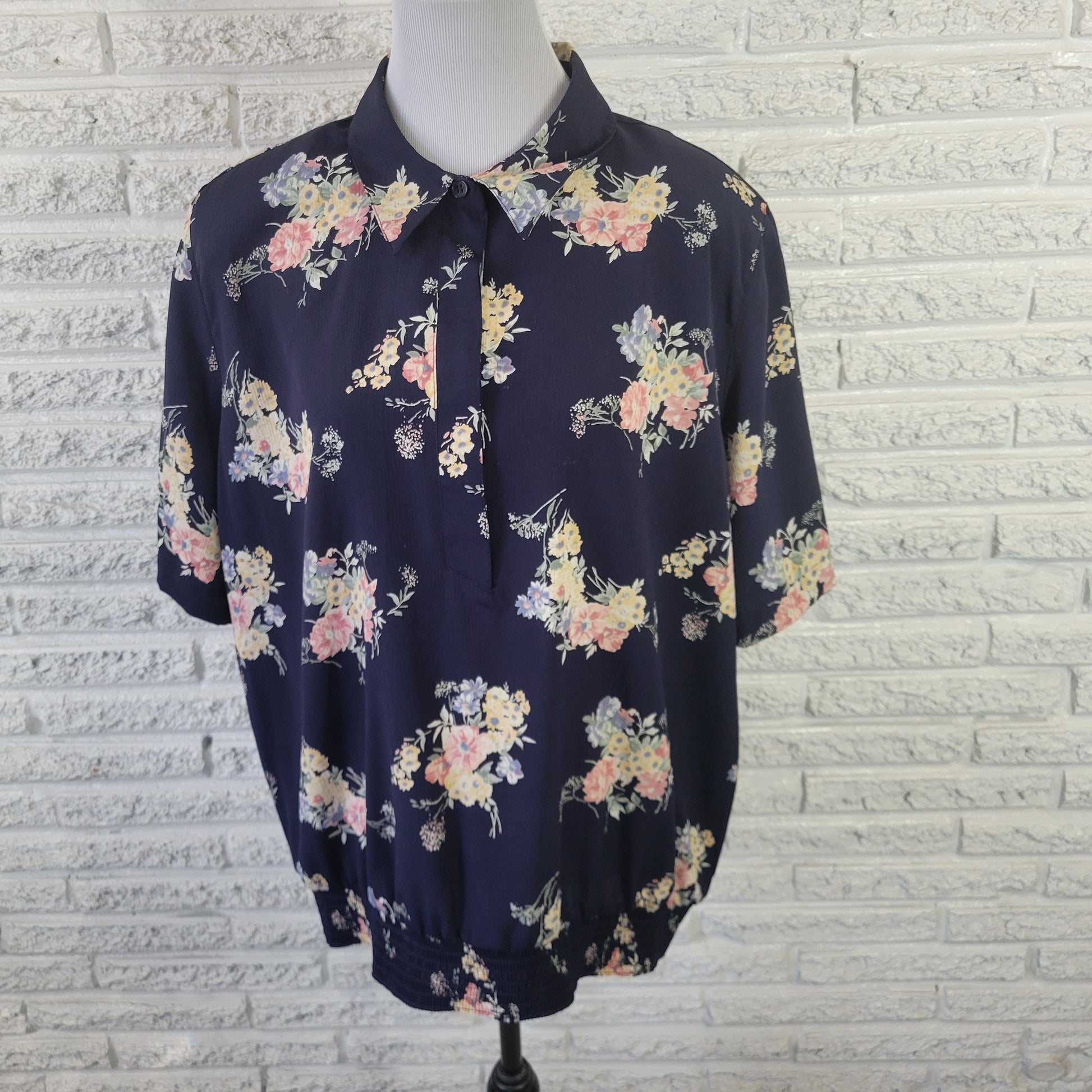 Alfred Dunner Women's 22W Blue Yellow Floral Peplum Top Button Collared FLO20E