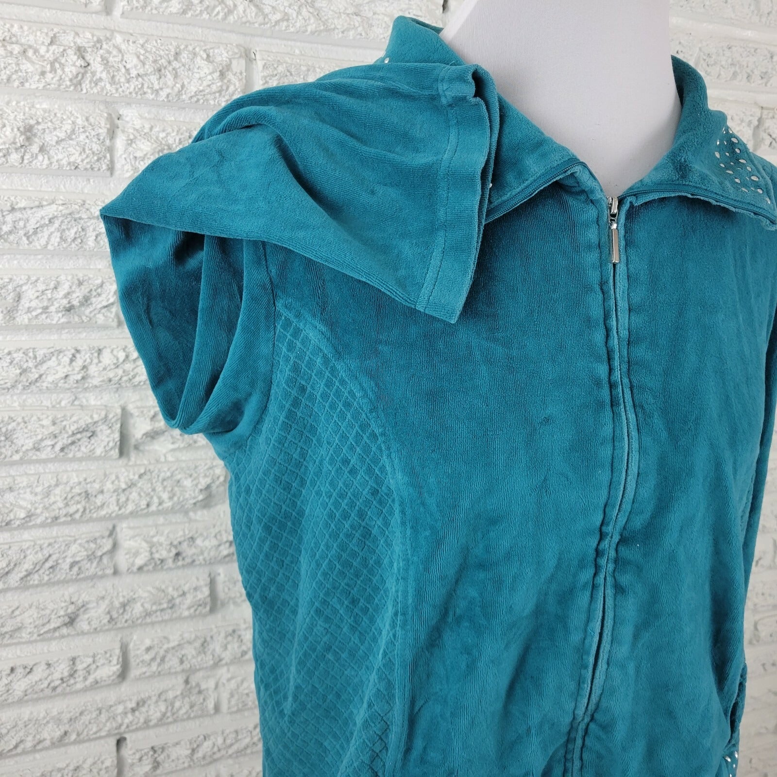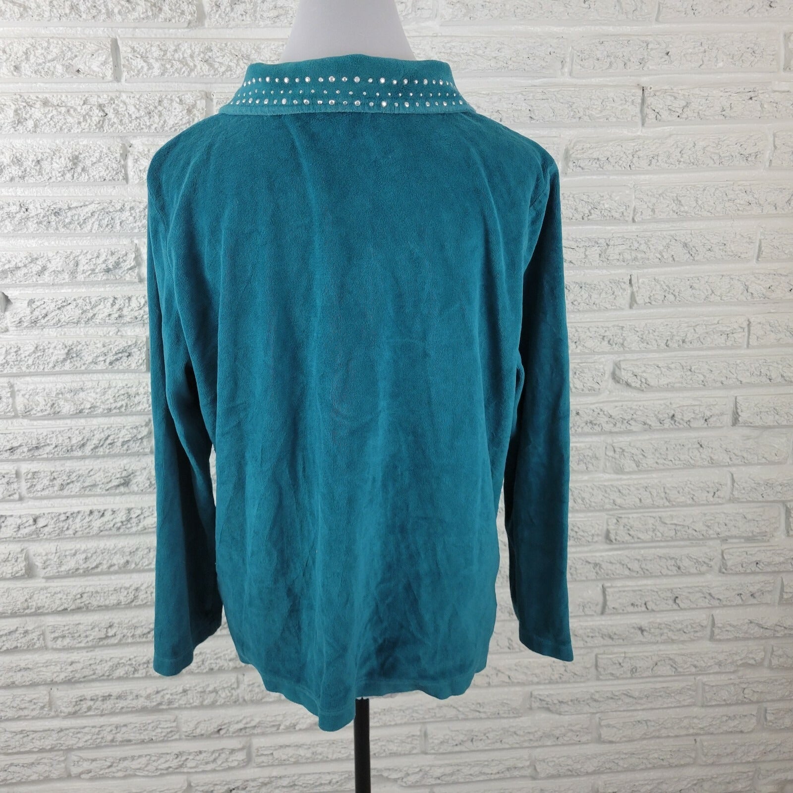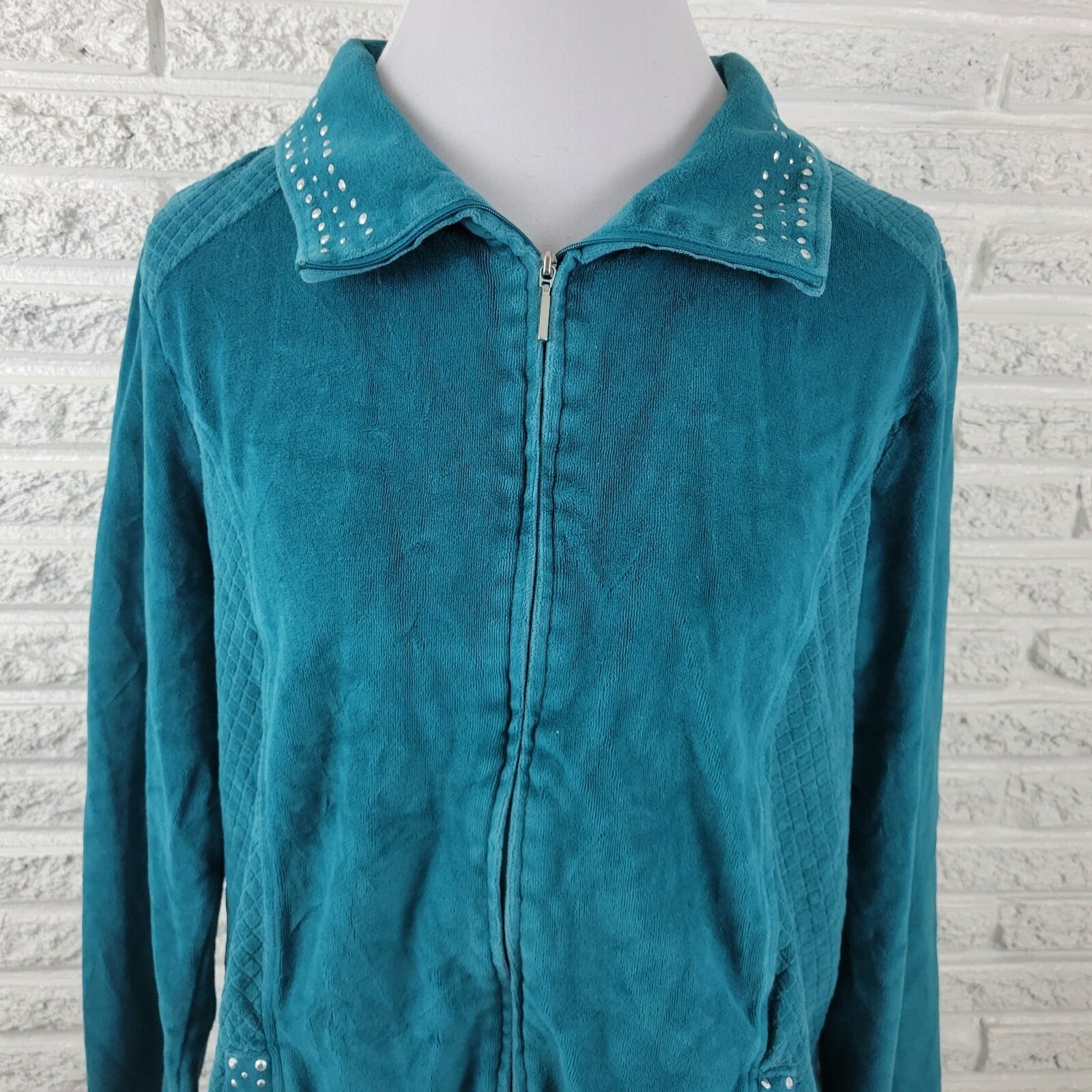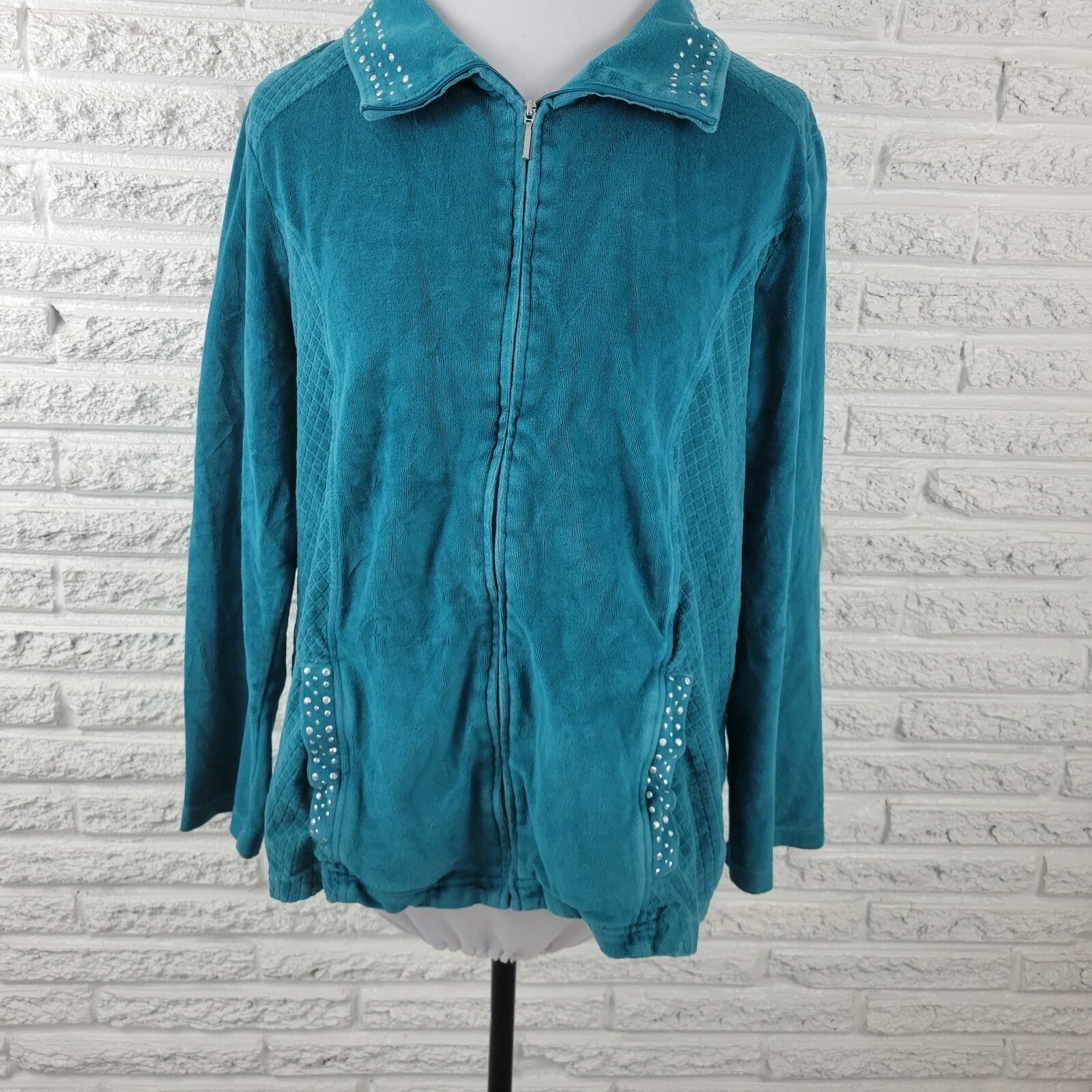 Alfred Dunner Womens Jacket 18 Plus Blue Green Corduroy Studded Casual Collar