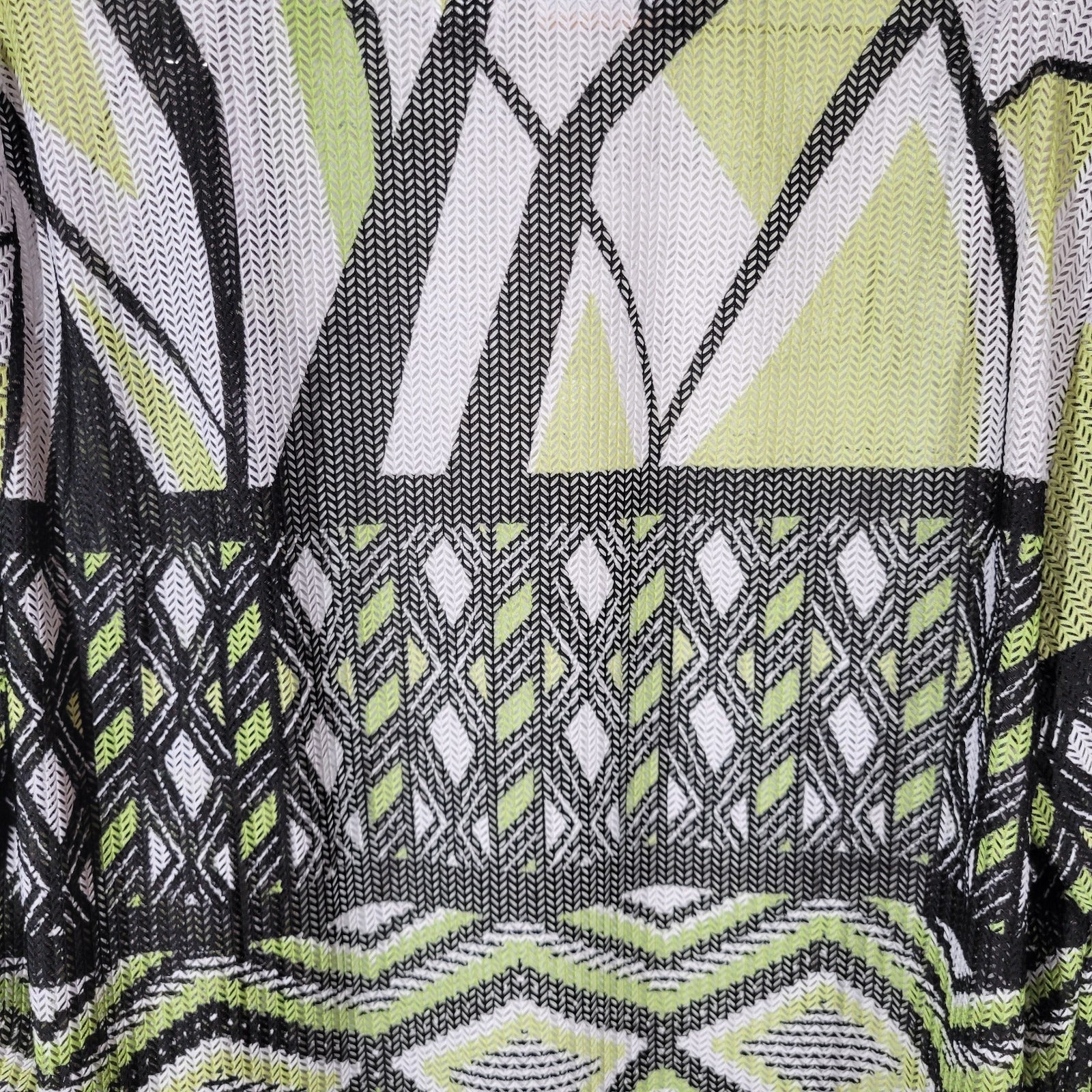 Alfred Dunner Womens Top 1X Plus Open Overlay Mesh Green Black Geometric Sheer