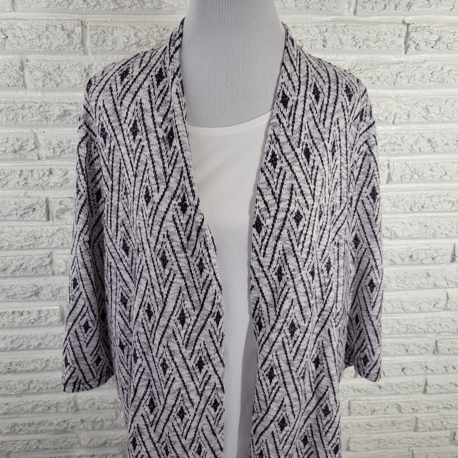 Alfred Dunner Womens Top 2X Plus 3/4 Sleeve Purple Diamonds Two In One Comfy