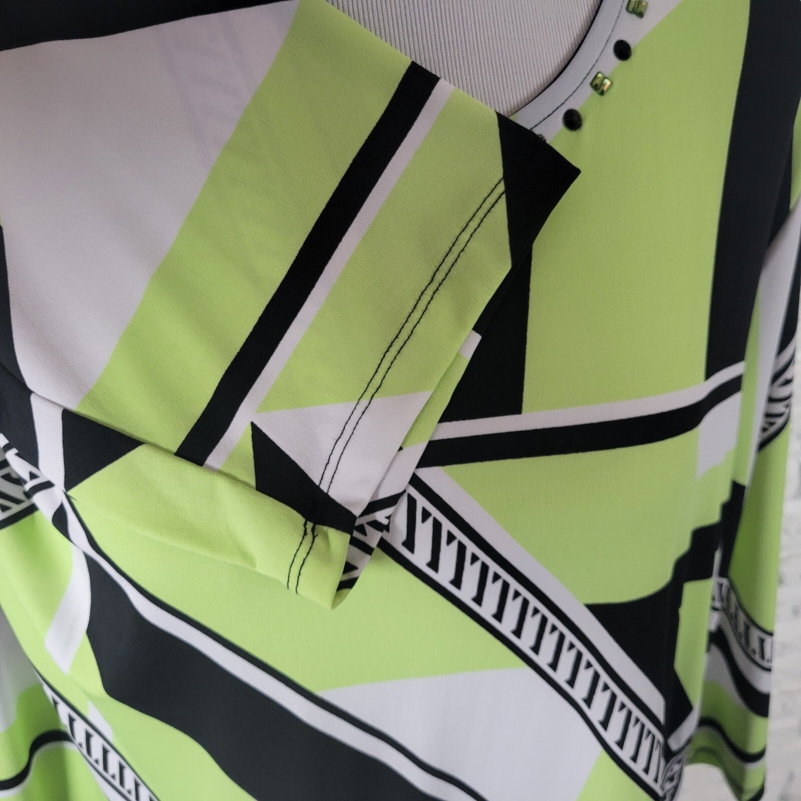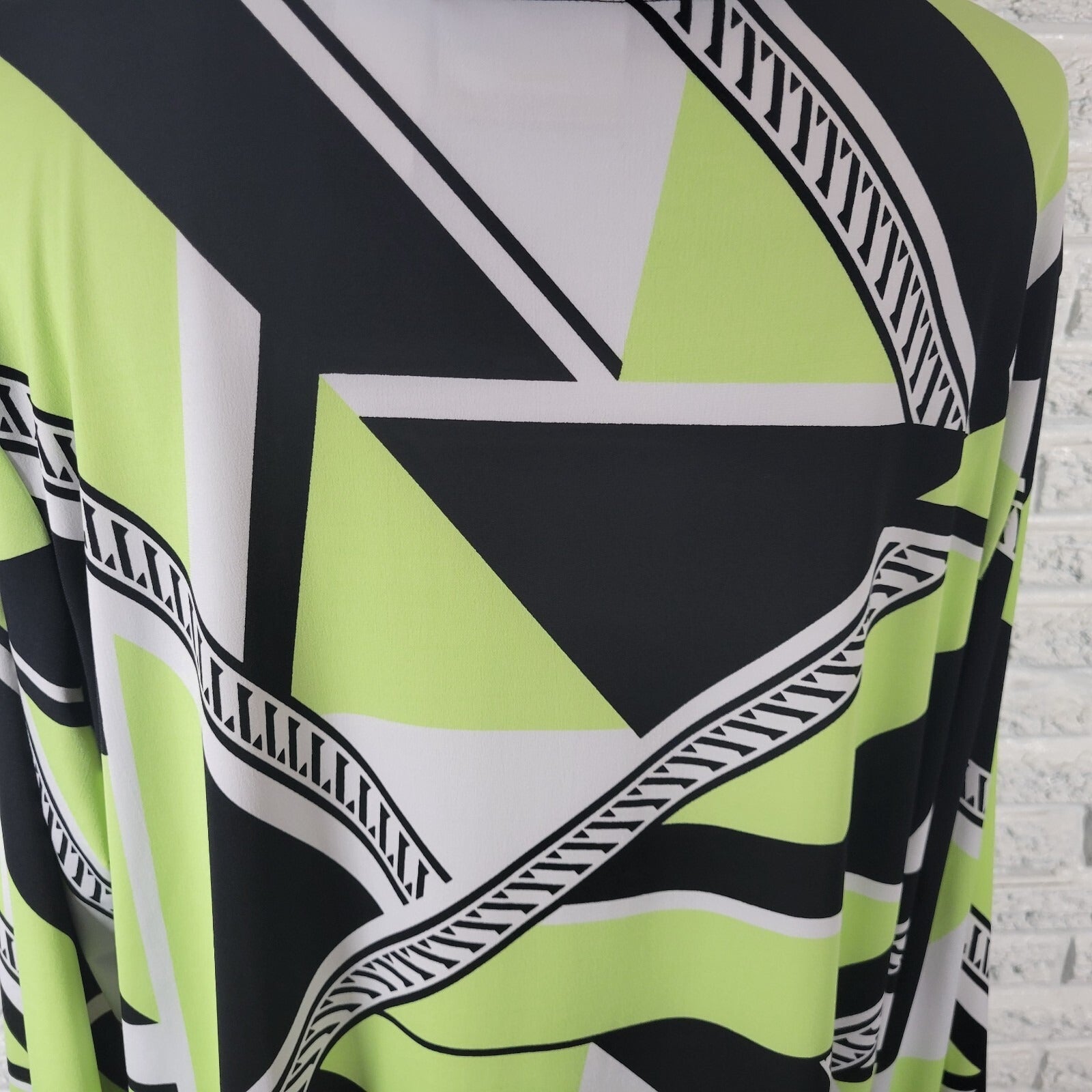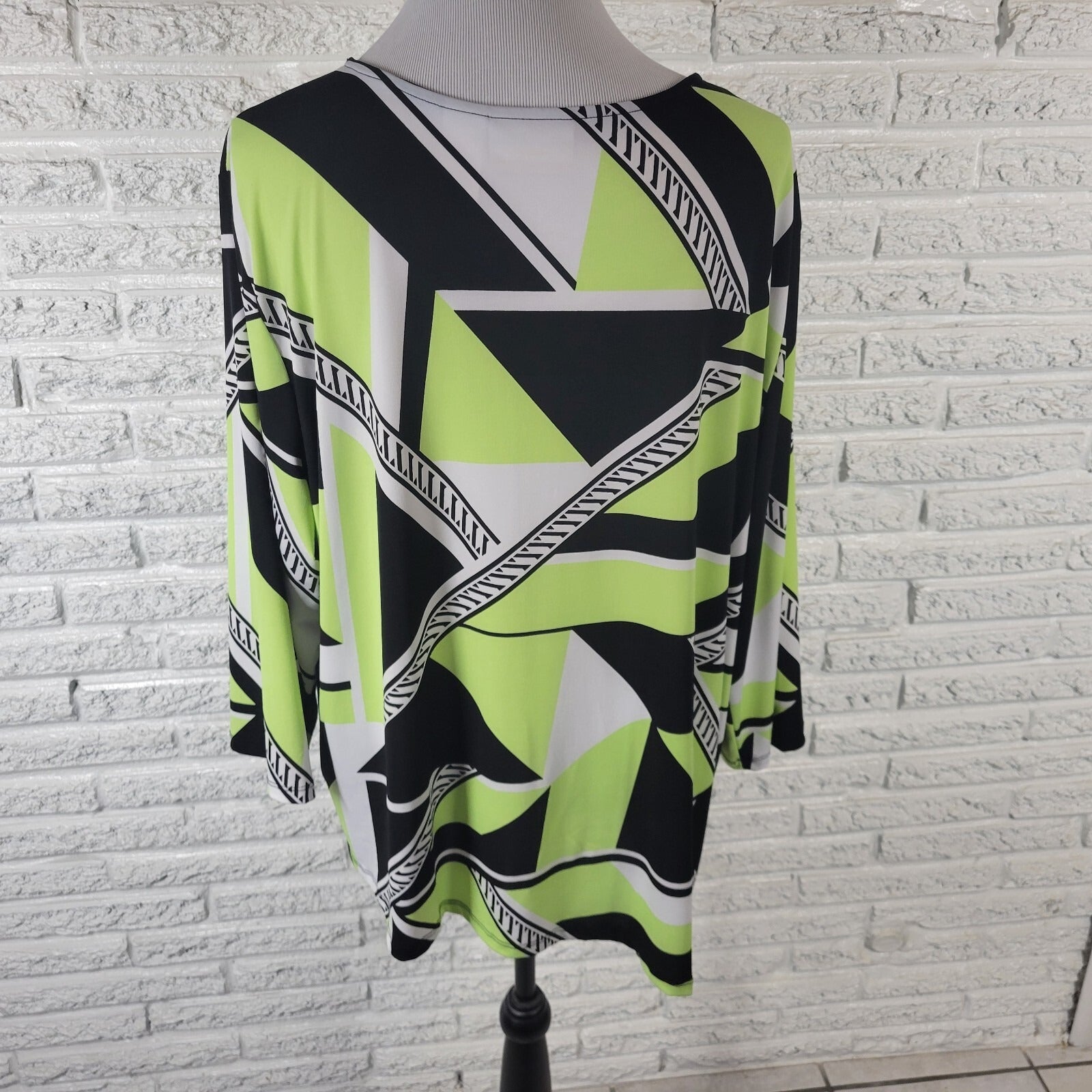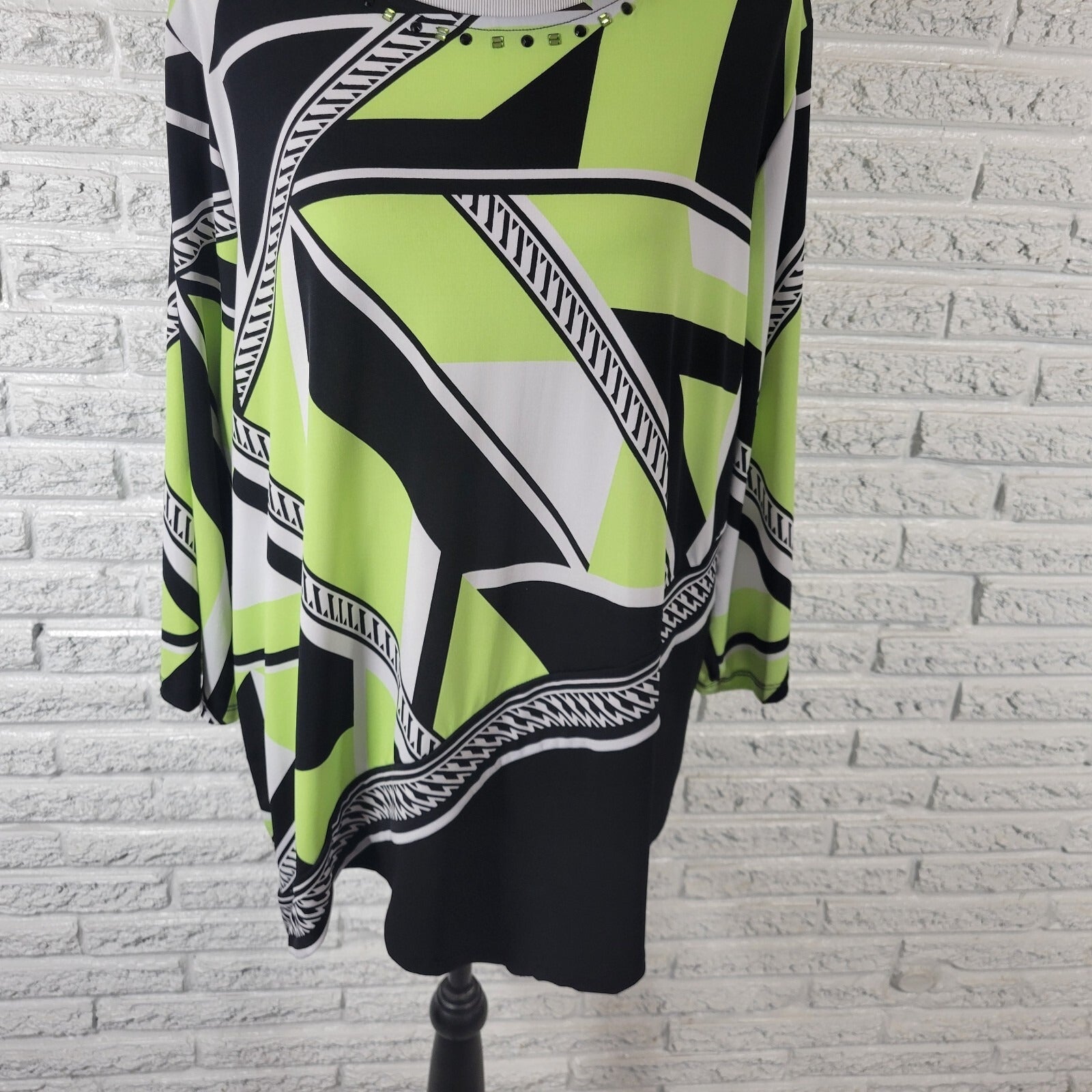 Alfred Dunner Womens Top 2X Plus Long Sleeve Green Geometric Beaded Poly Blend