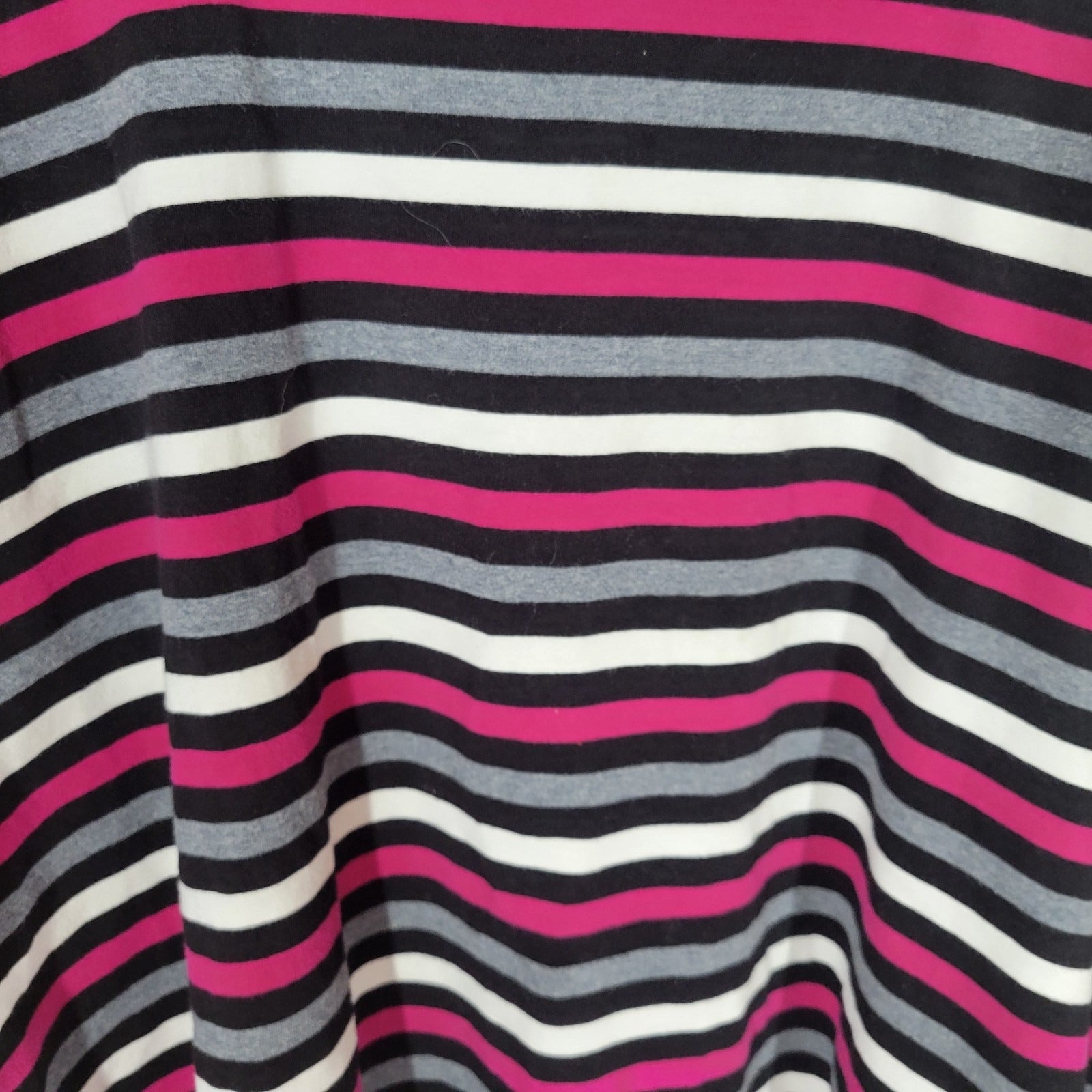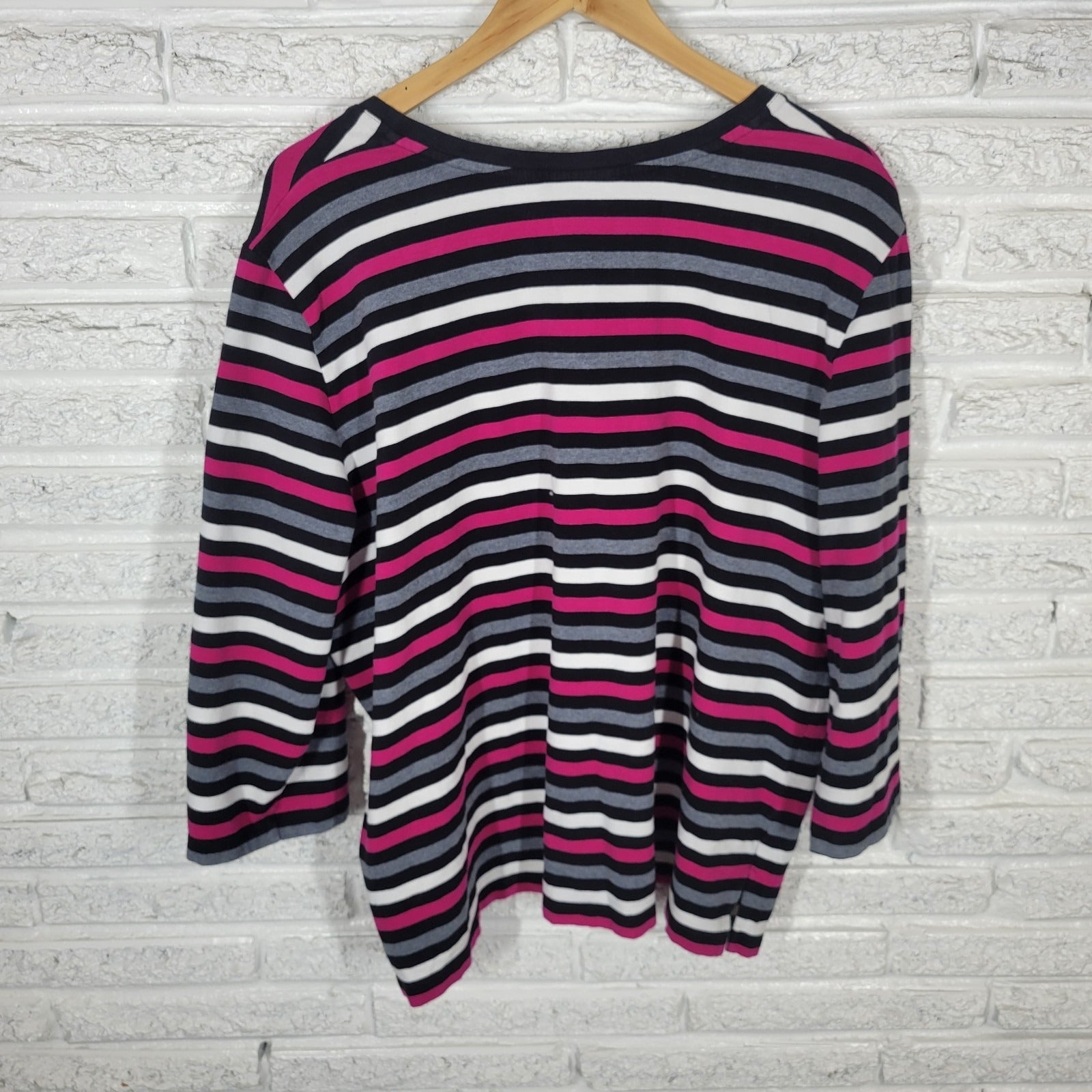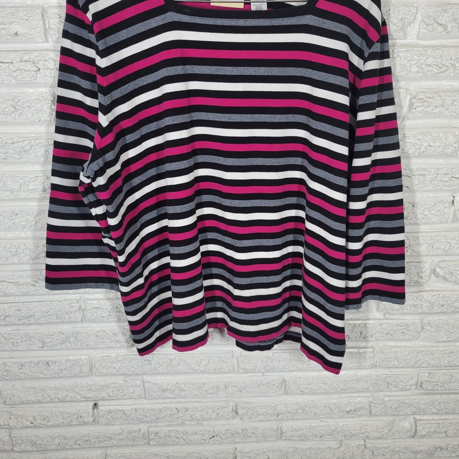 Alfred Dunner Womens Top 3X Plus 3/4 Sleeve Pink Black Stripe Cotton Blend Soft