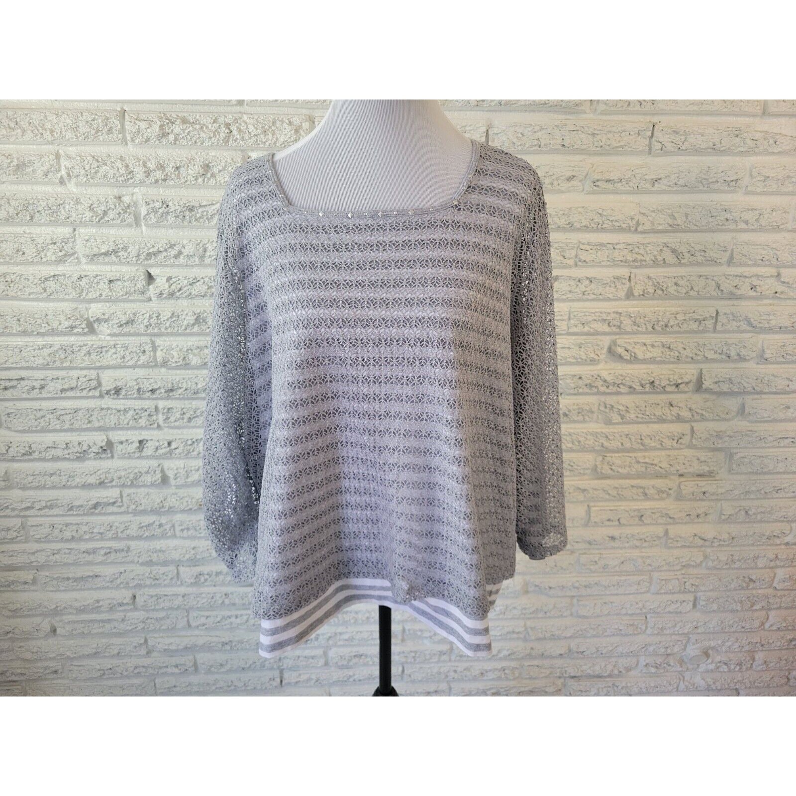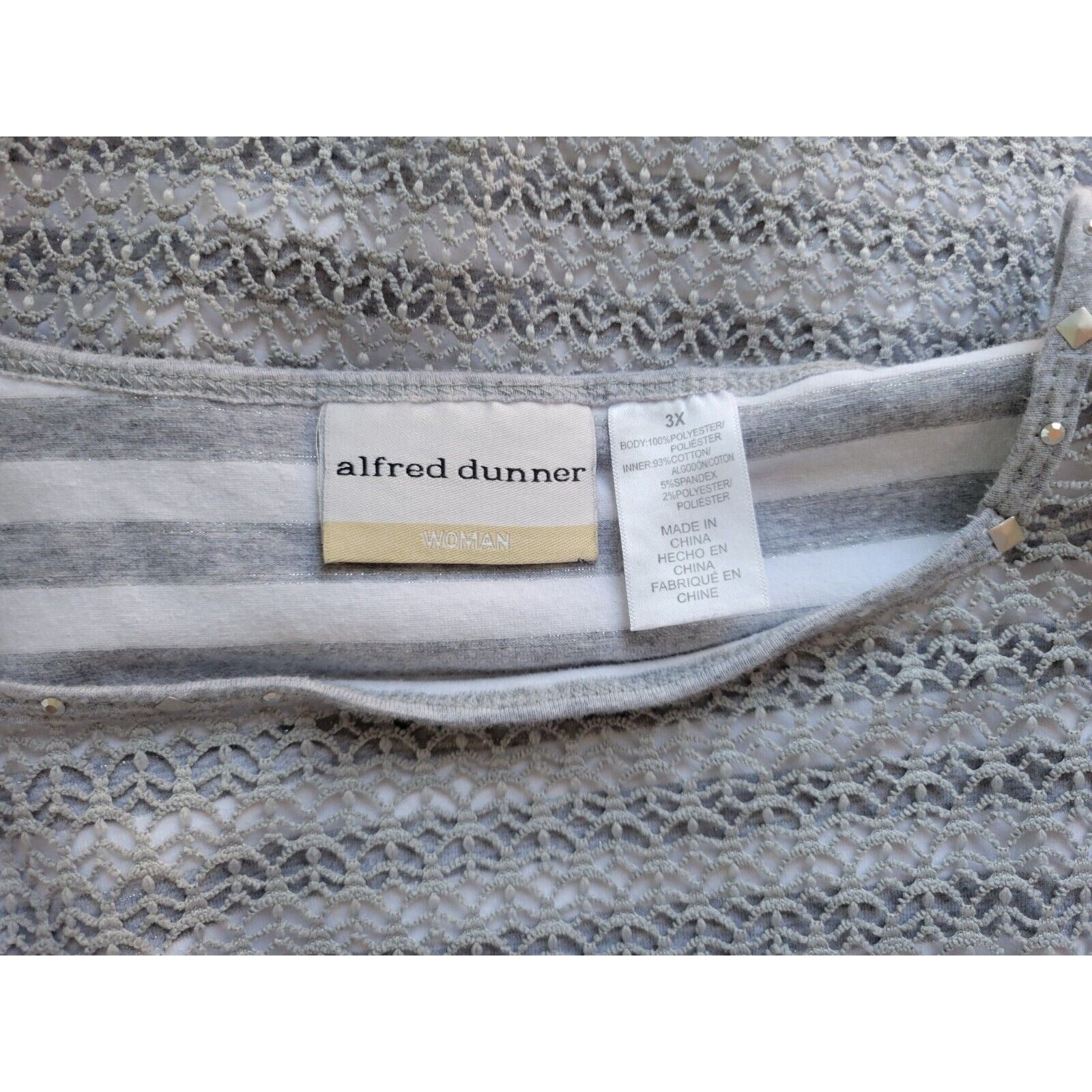 Alfred Dunner Womens Top 3X Plus Long Sleeve Gray Stripe Poly Crochet Office