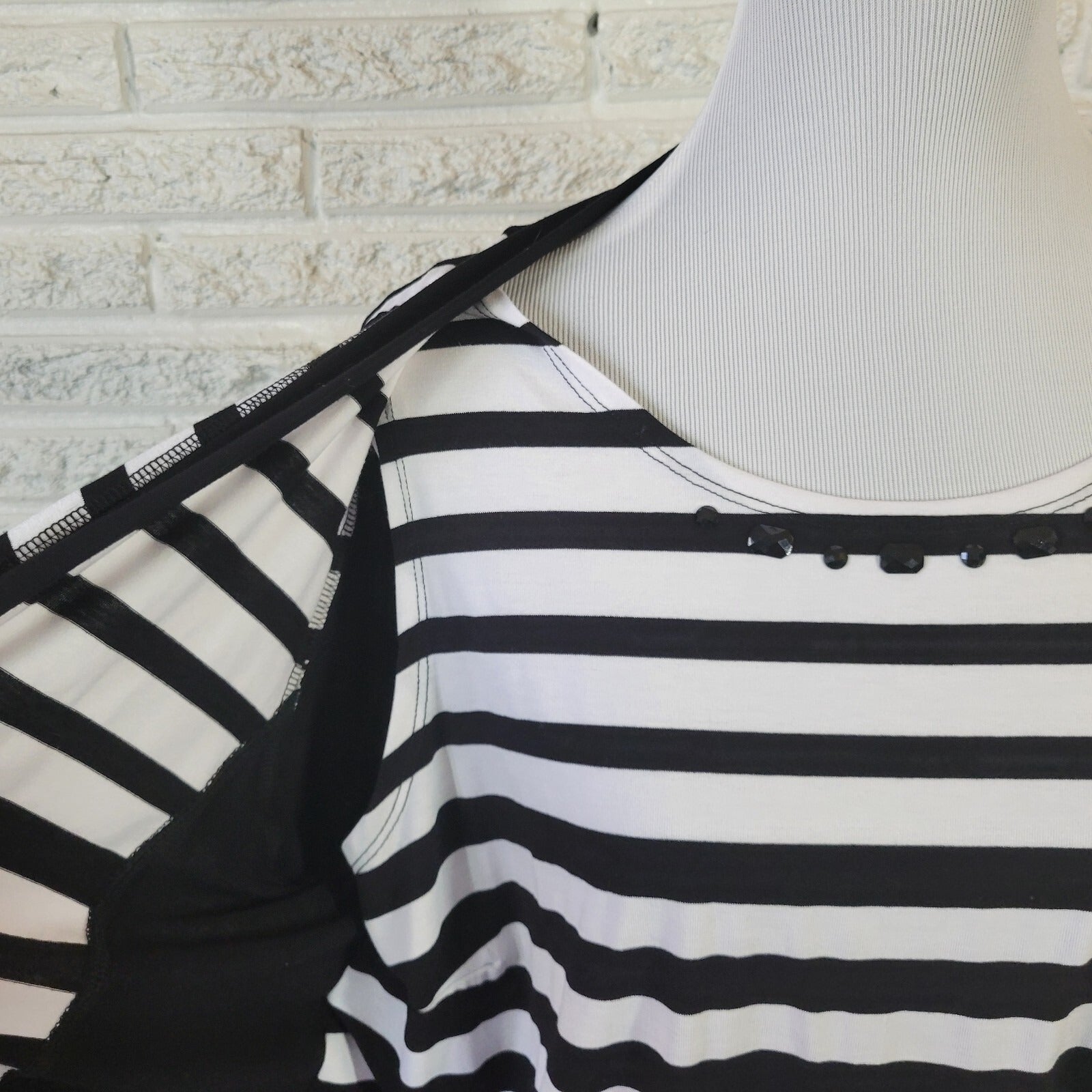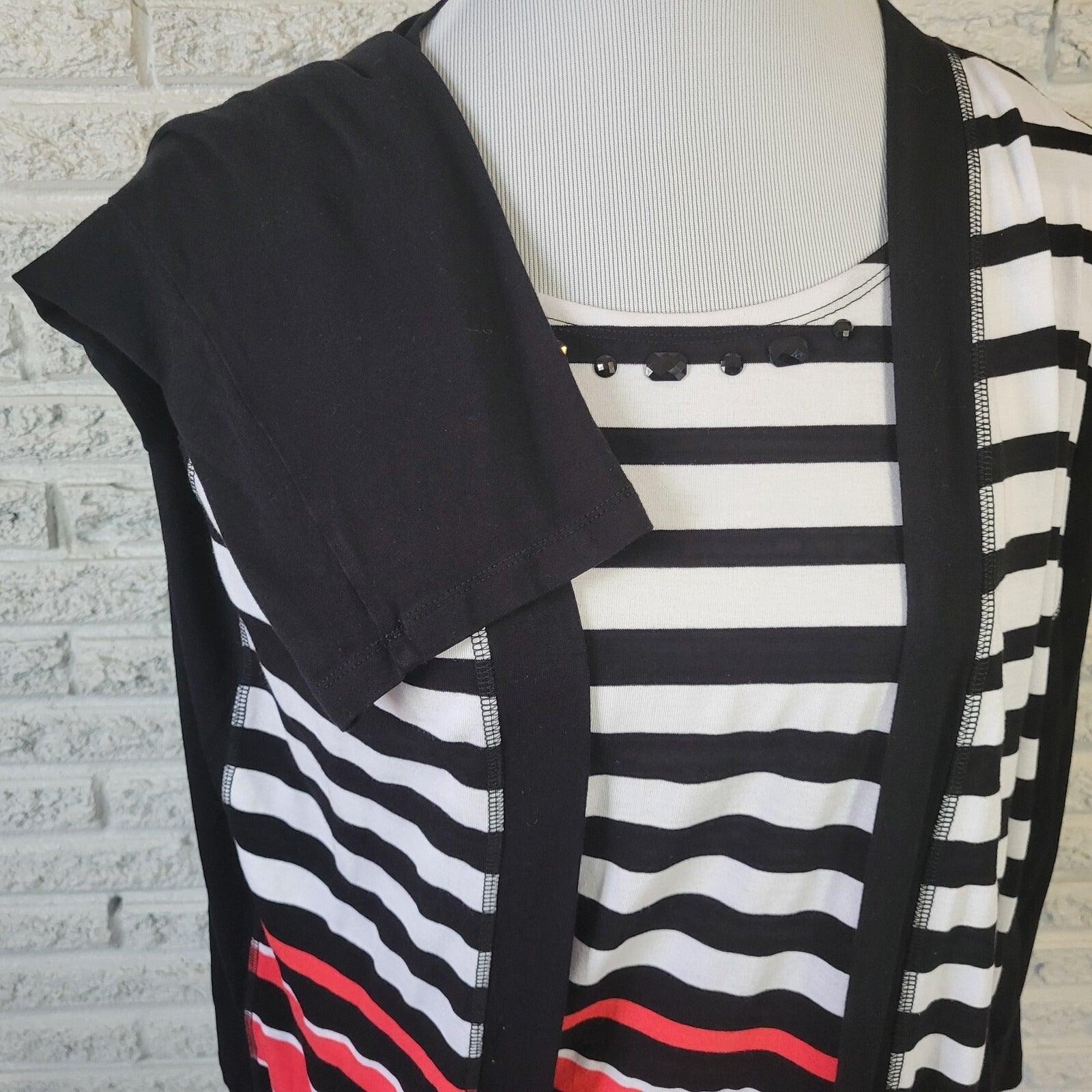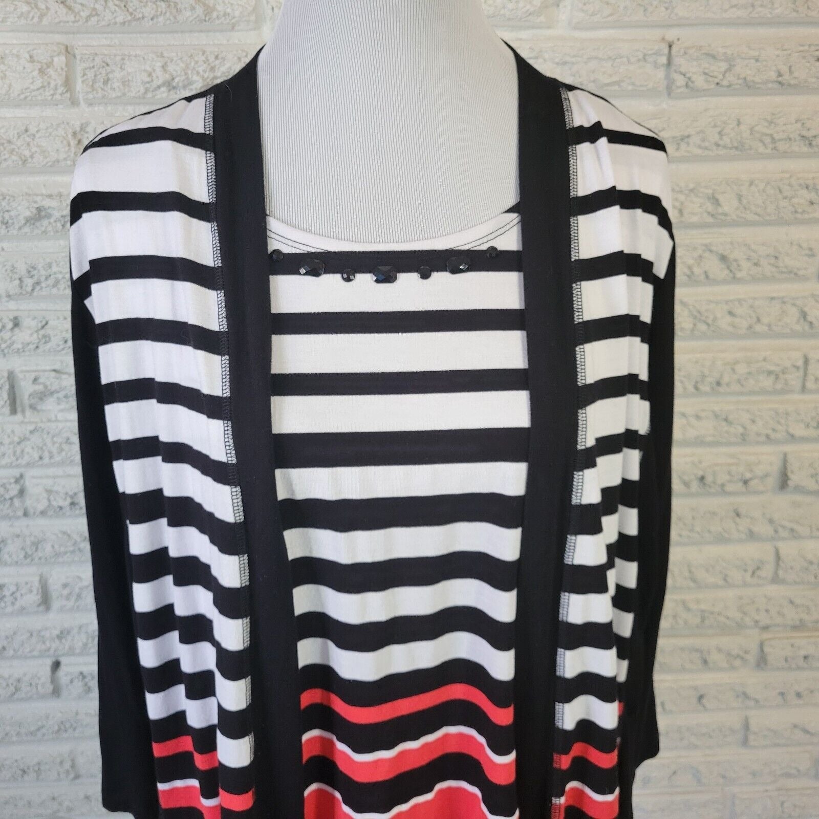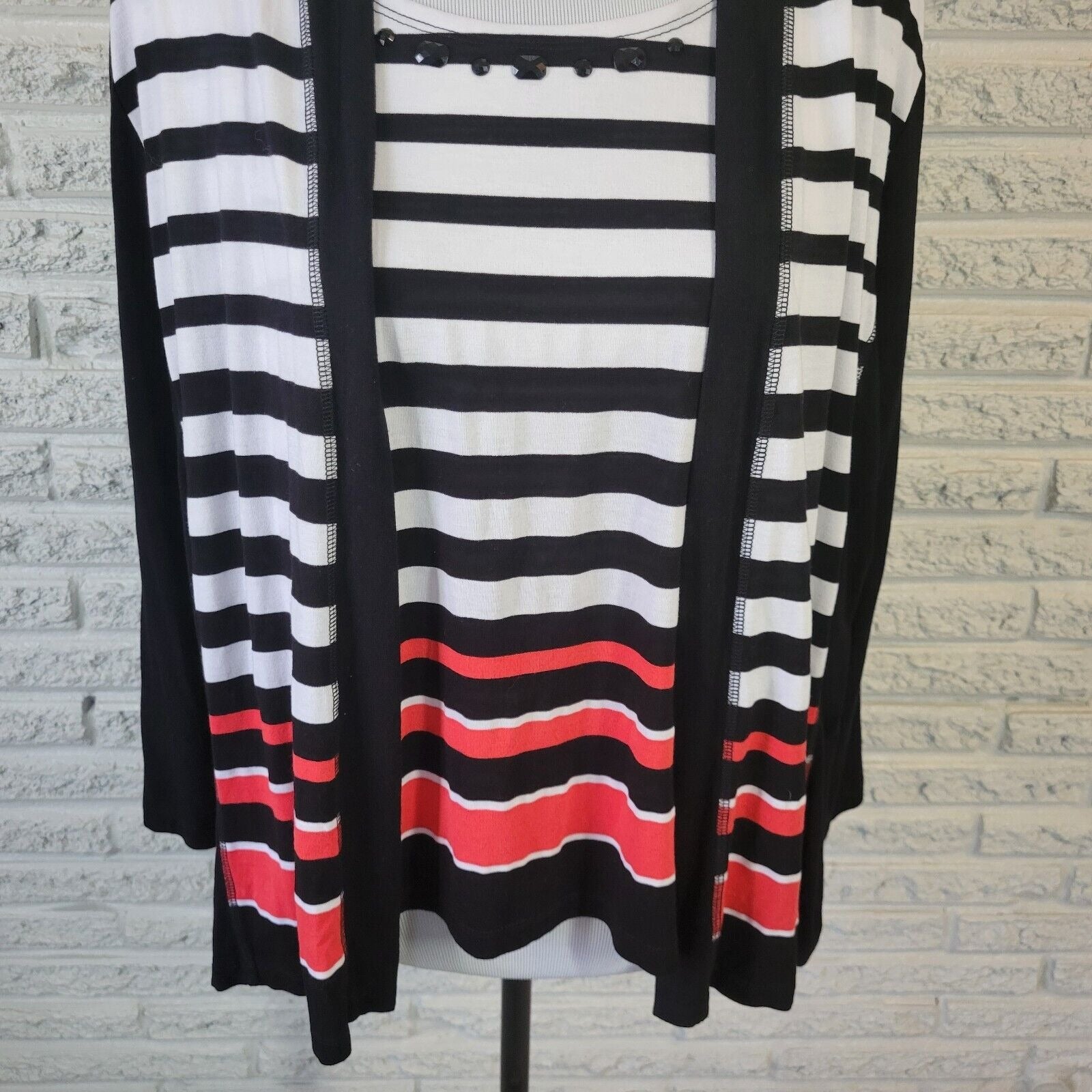 Alfred Dunner Womens Top PXL Long Sleeve Black Stripe Office Beaded with Tank