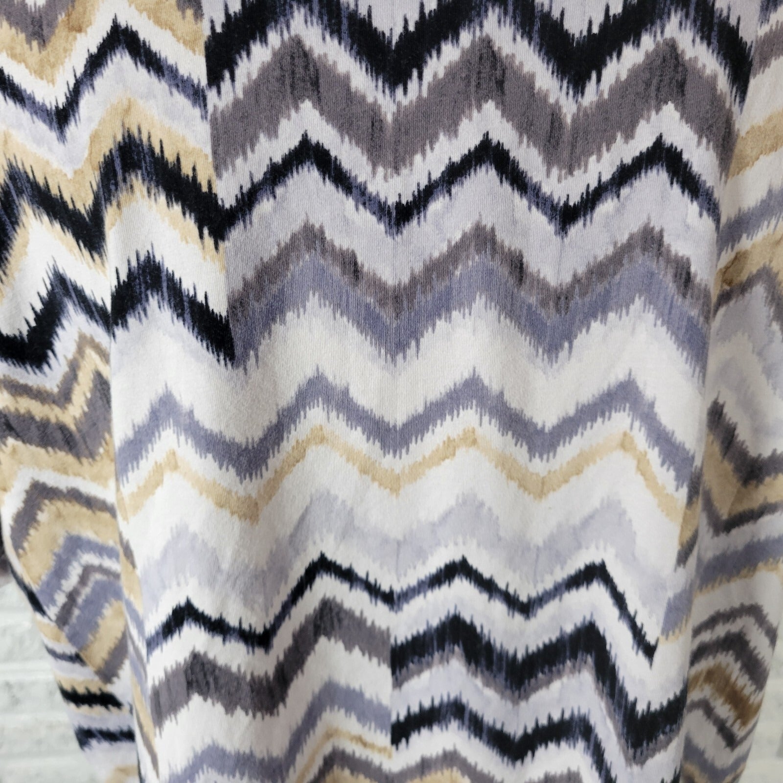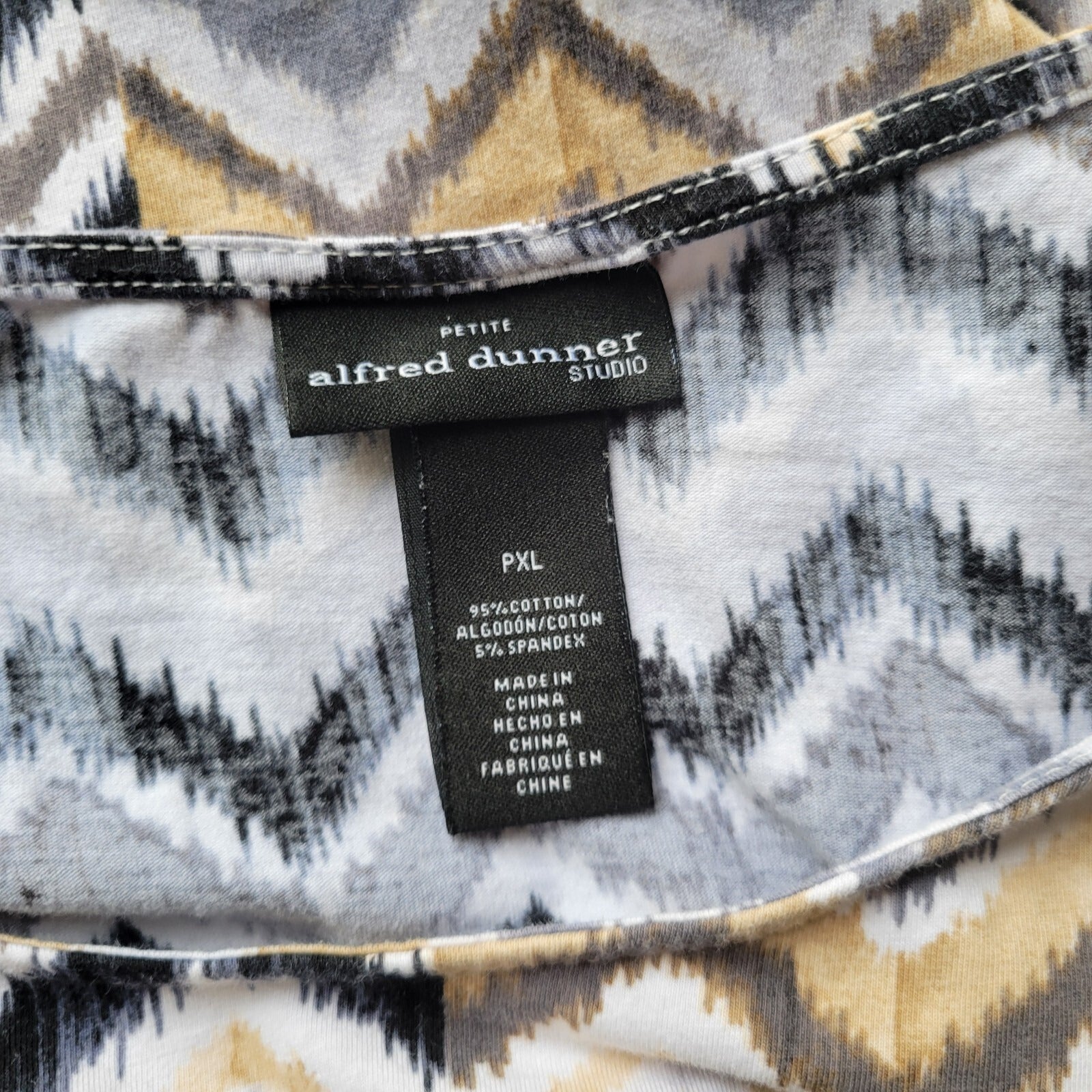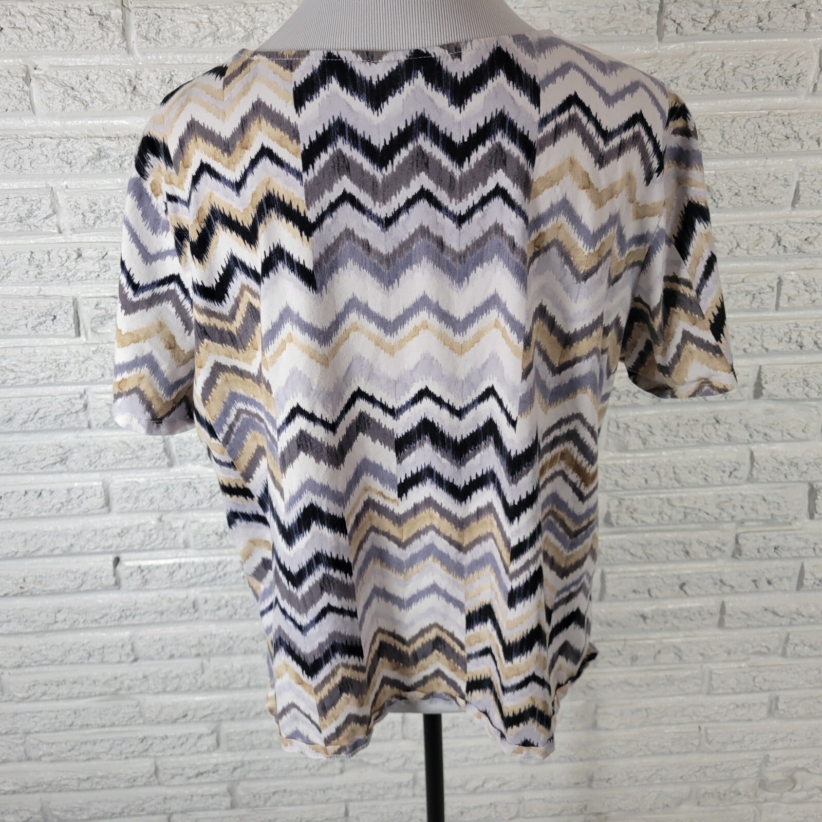 Alfred Dunner Womens Top PXL Petite Tee Short Sleeve Tan Black Zig Zag Casual