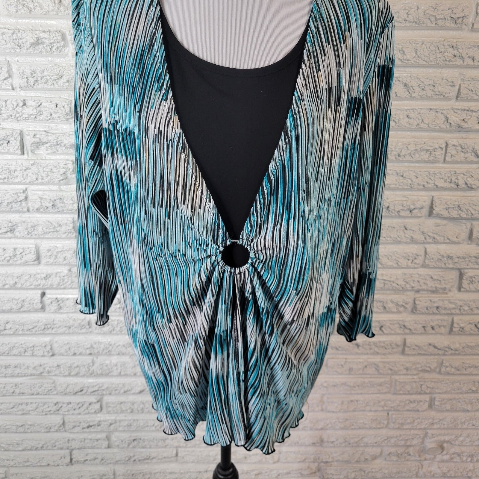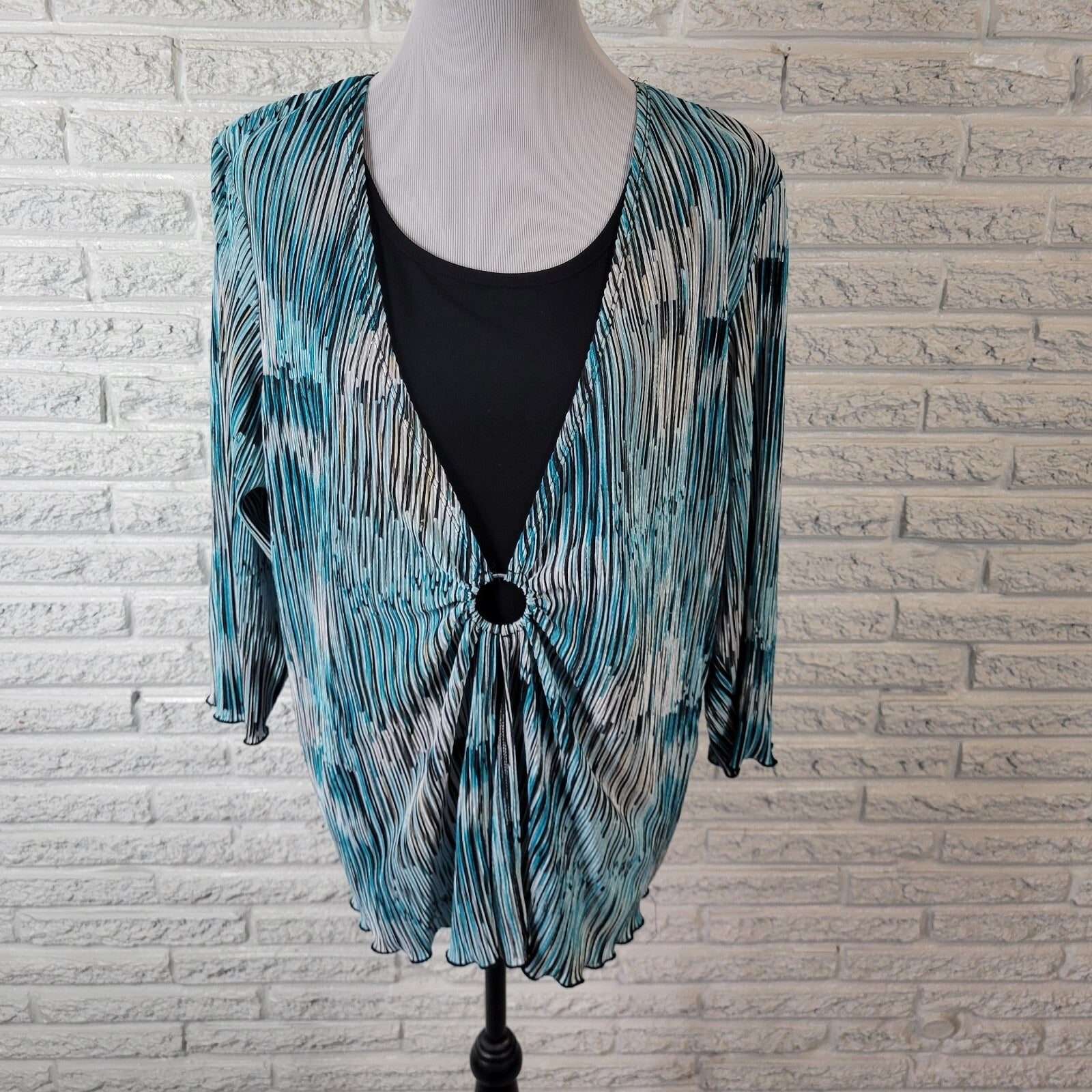 Allison Daley II Womens Top 2X Plus 3/4 Sleeve Blue Stripe Crinkle Lightweight