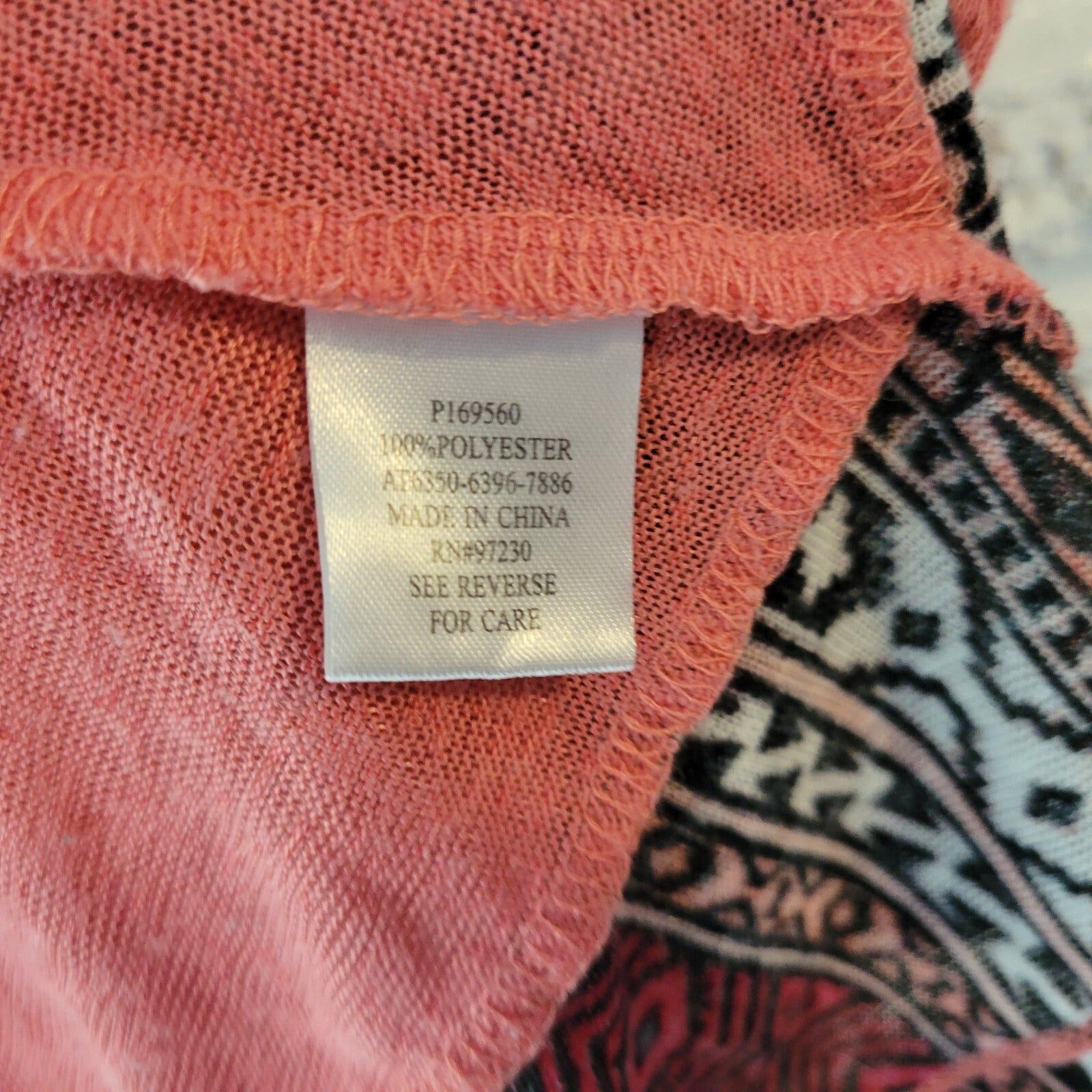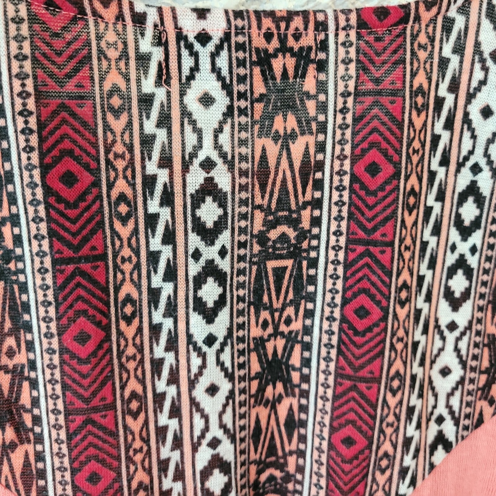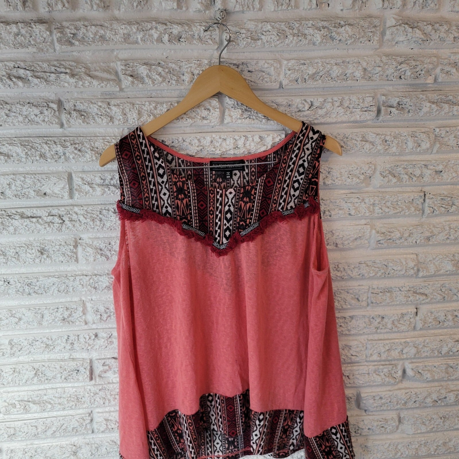 Almost Famous Womens Top 3X Plus Tank Boho Pink Burgundy Geometric Fringe Sheer