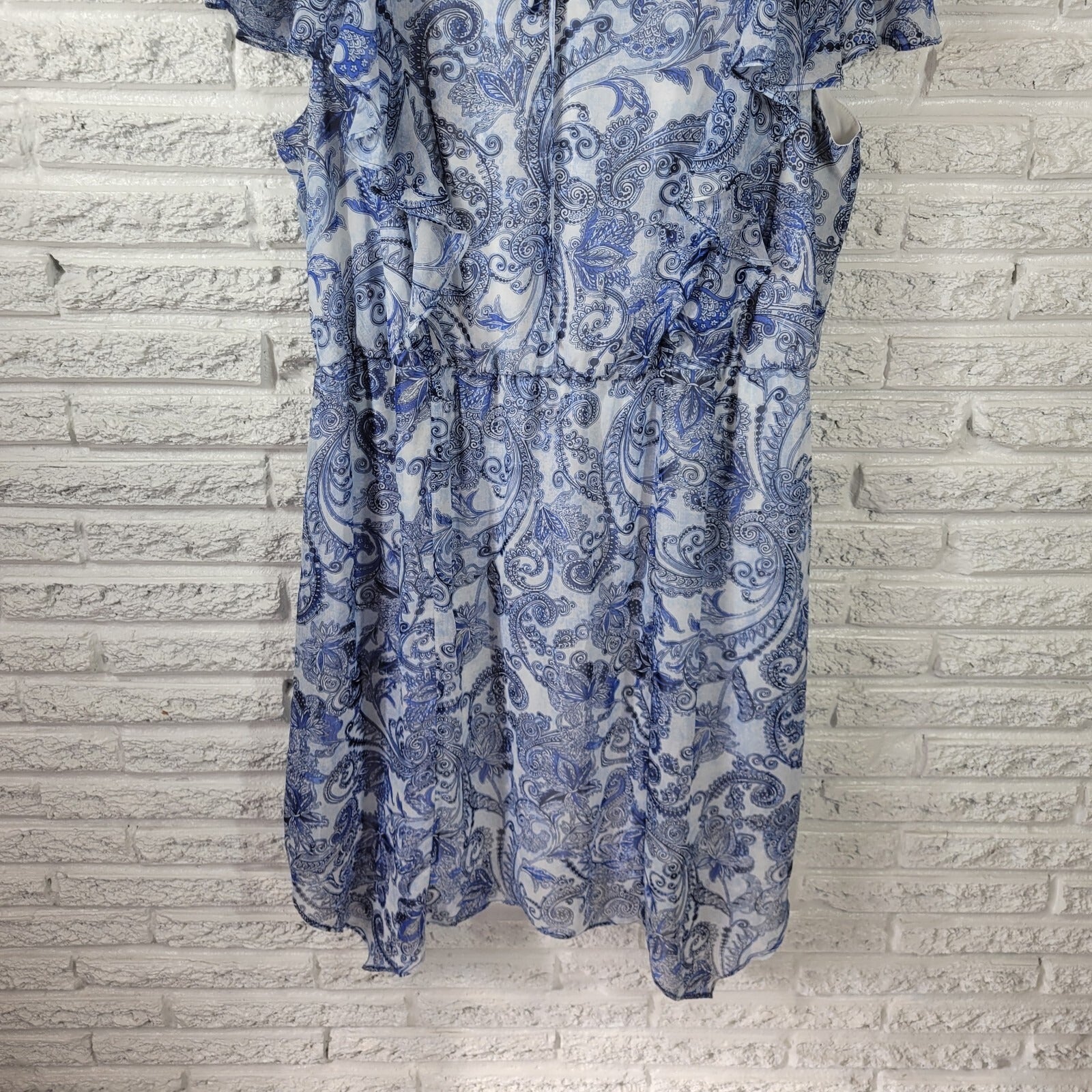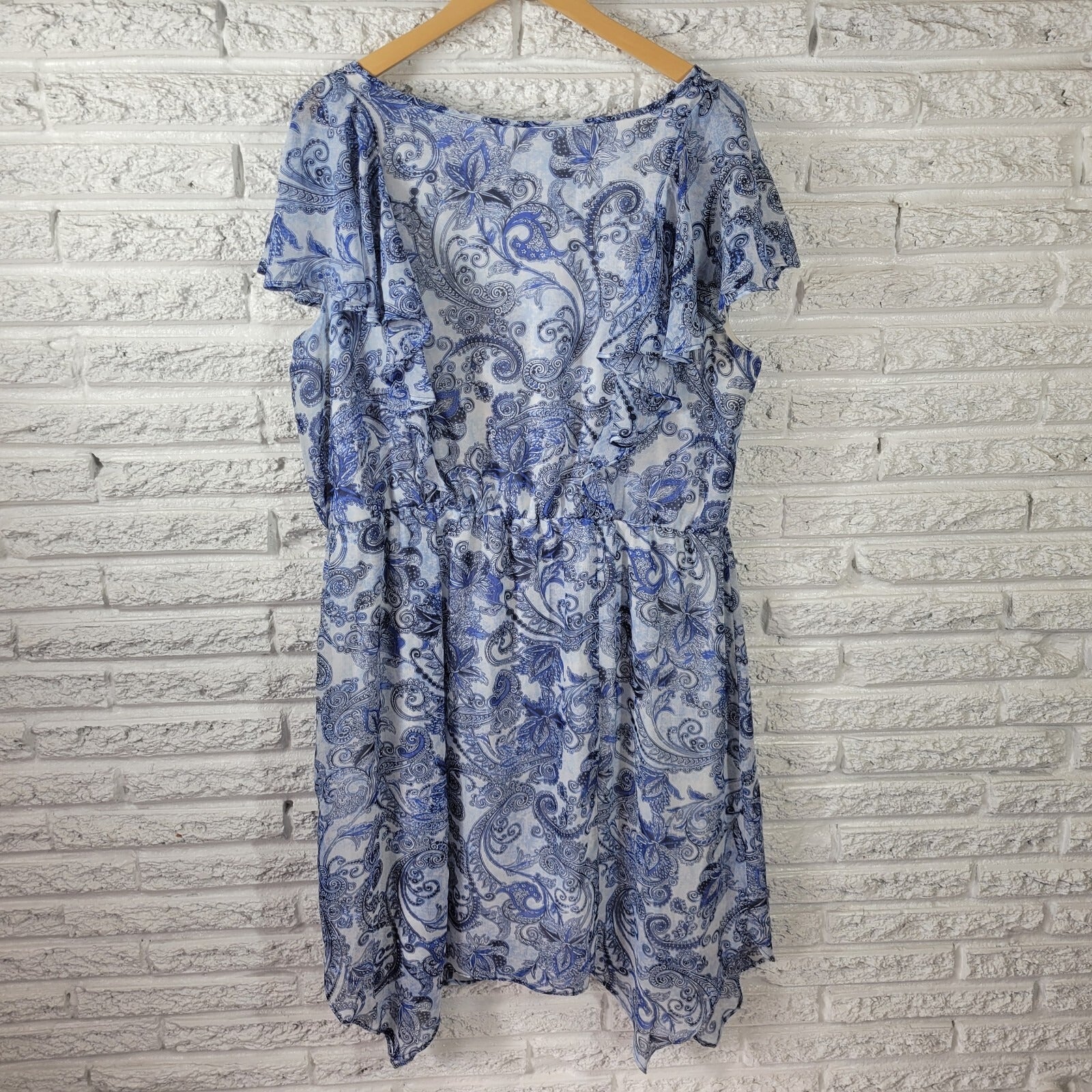 Alyx Women Dress 20W Plus Sheath Flutter Sleeve Blue Paisley Keyhole Lightweight