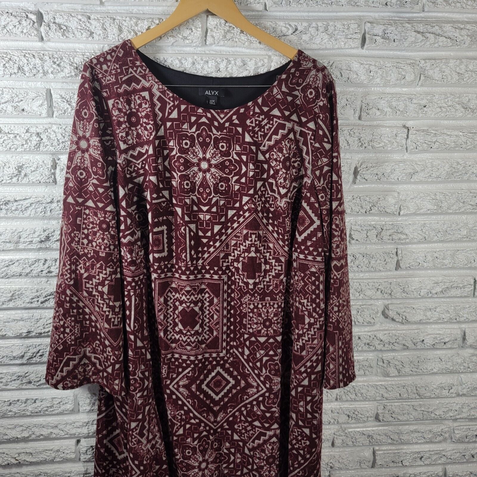 This Alyx women's dress in size 20W is perfect for any casual occasion. The brown geometric pattern adds a touch of elegance to the dress, while the long sleeves and round neckline provide comfort and practicality. The pullover closure makes it easy to wear, and the knee-length dress is perfect for any season. Made from a polyester blend knit fabric, this dress is machine washable and stretchy, ensuring a perfect fit every time. The dress is lined for added comfort, and the geometric pattern adds a unique touch to the overall design. Whether you're heading to the office or going out with friends, this shirt dress is the perfect addition to your wardrobe.