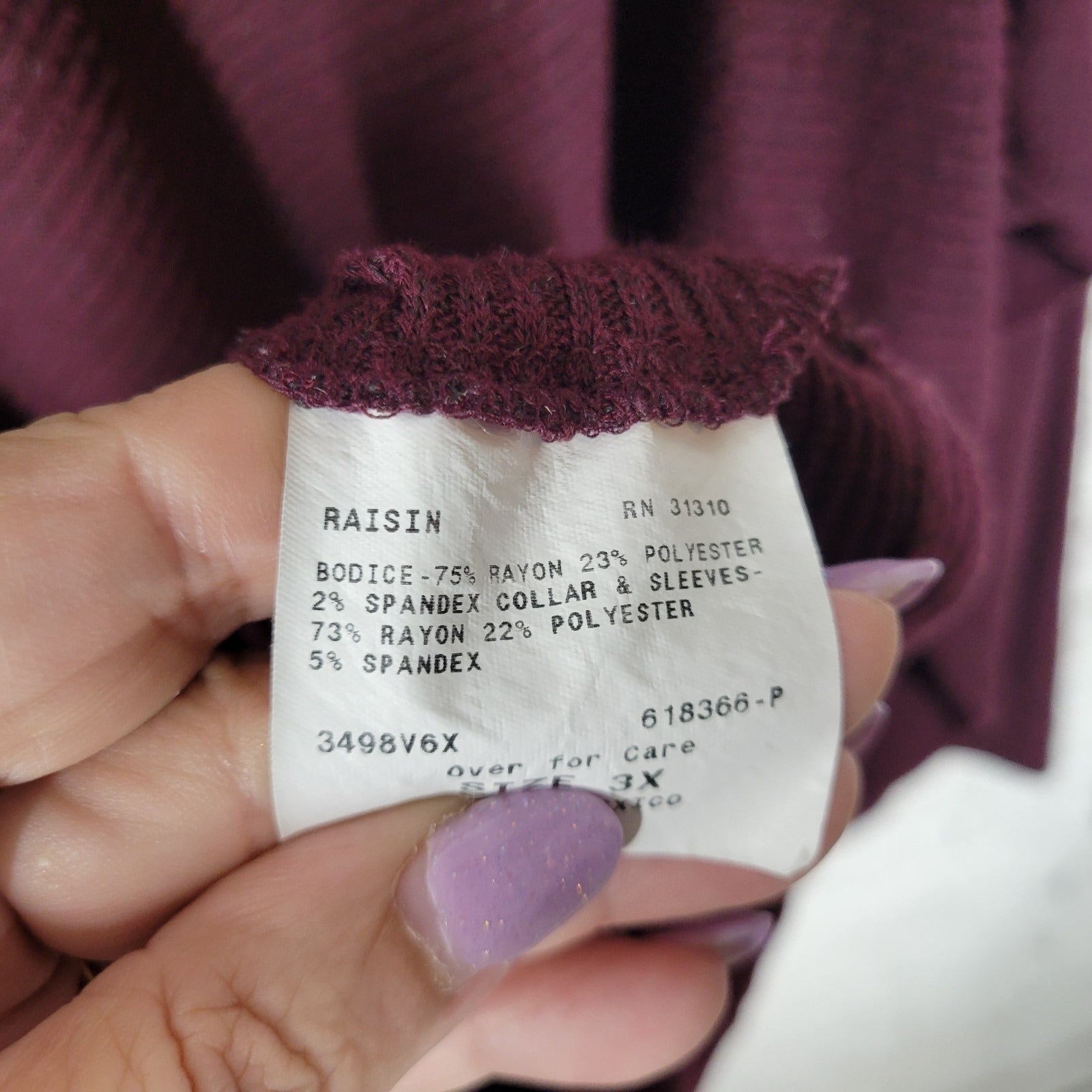 The Alyx Women's Sweater in size 3X Plus is a stylish and comfortable option for the office or casual wear. This burgundy/PURPLE cowl neck sweater features a tight-knit design with long sleeves, making it perfect for all seasons. Made of a blend of polyester and rayon, this lightweight sweater is machine washable and easy to care for. The versatile cowl neck adds a touch of sophistication, while the regular fit ensures a comfortable and flattering silhouette. Perfect for travel or everyday wear, this sweater is a must-have addition to any woman's wardrobe.