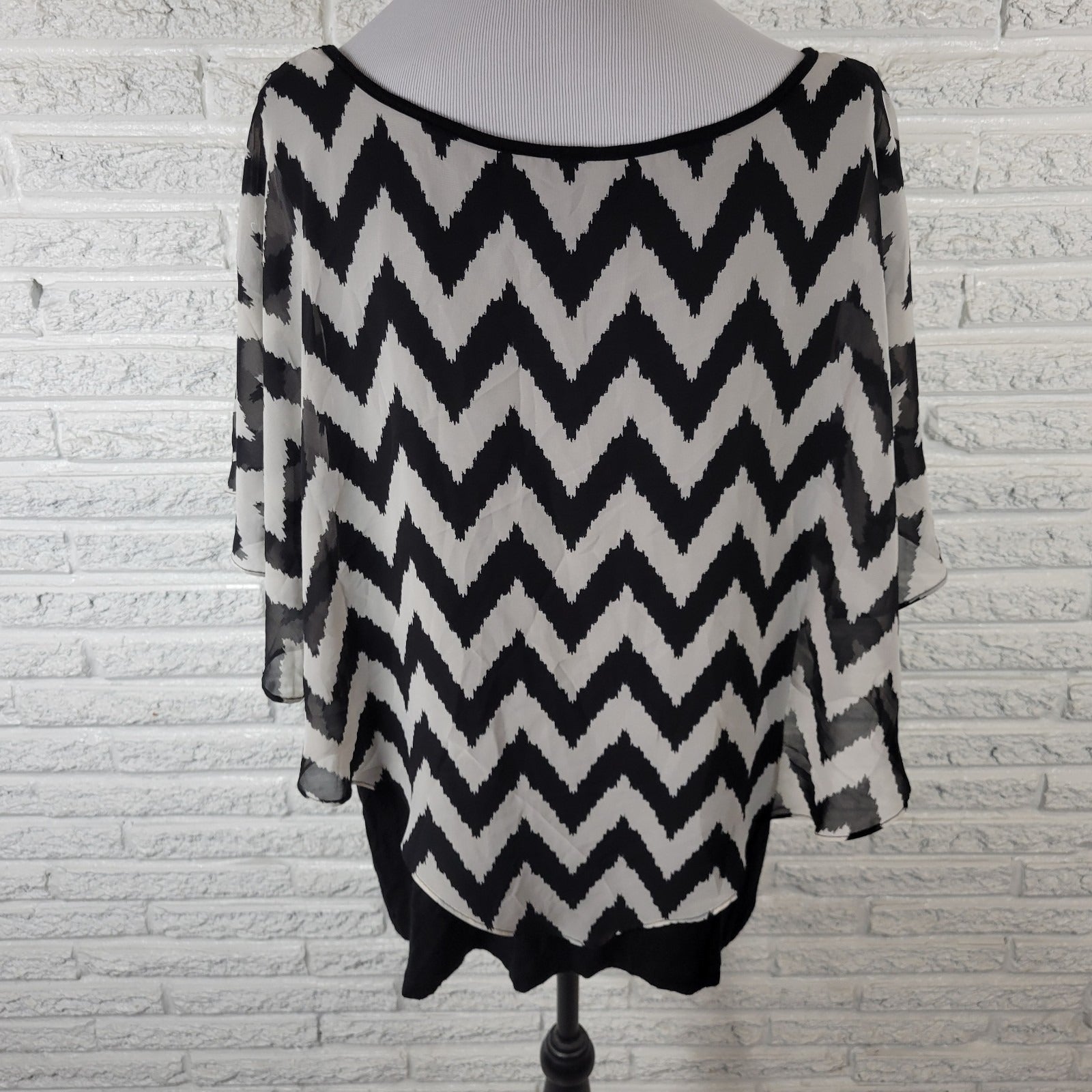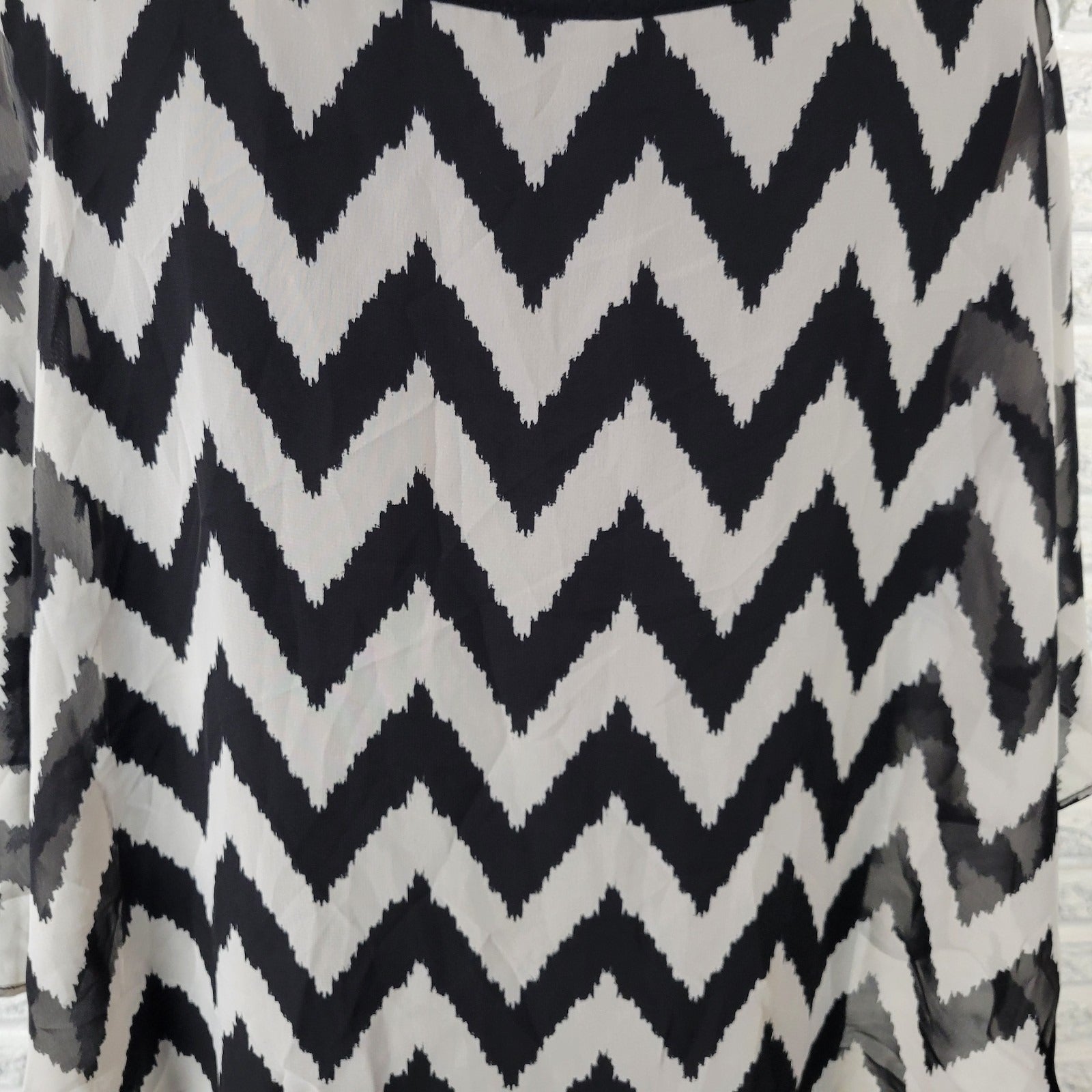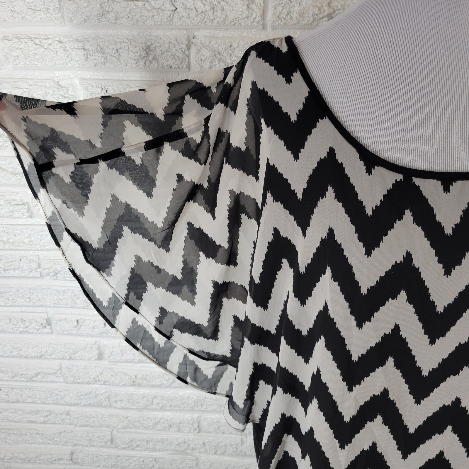 Alyx Womens Top 2X Plus Kimono Sleeve Black White Zig Zag Lightweight Lined