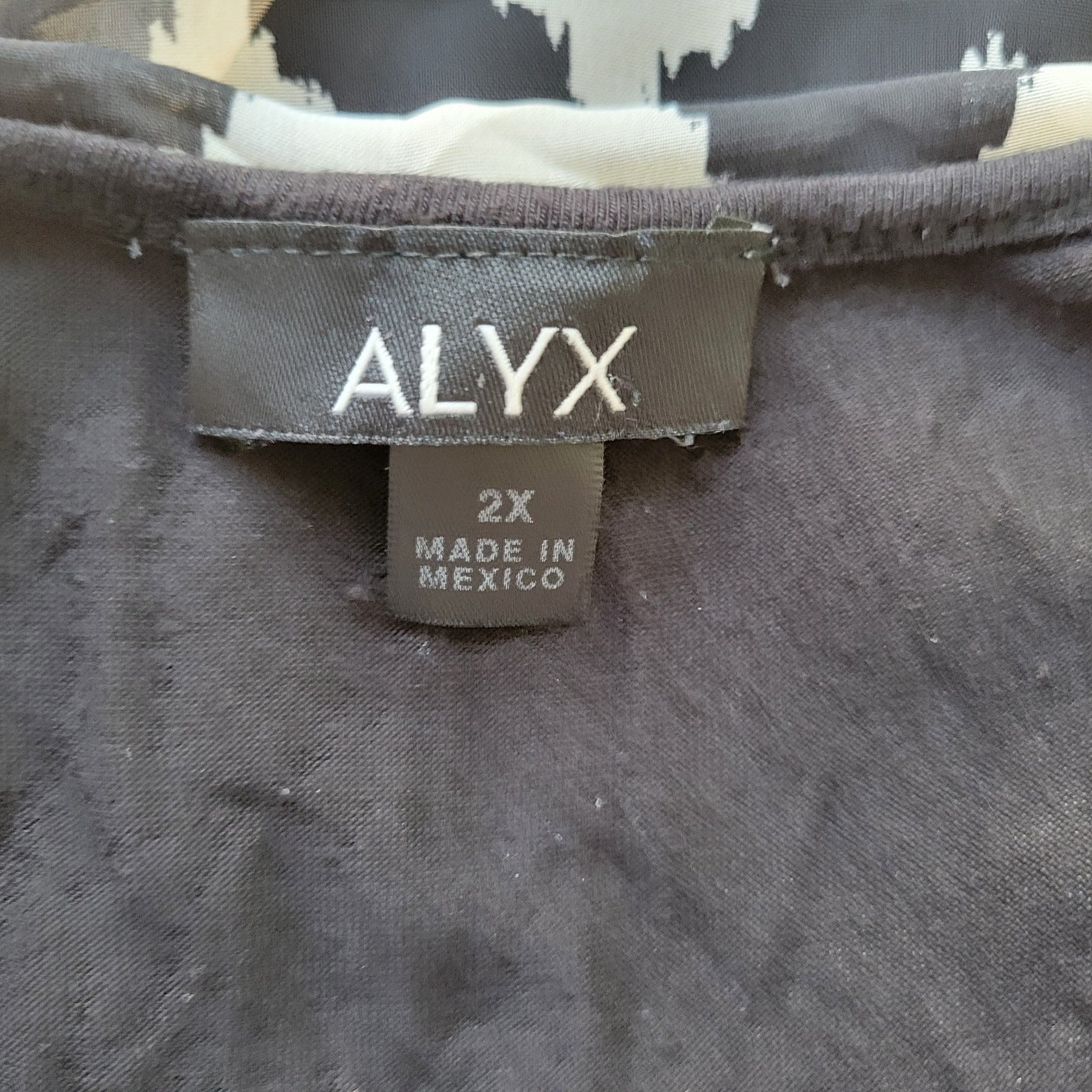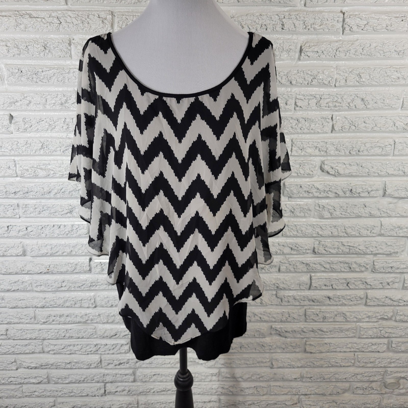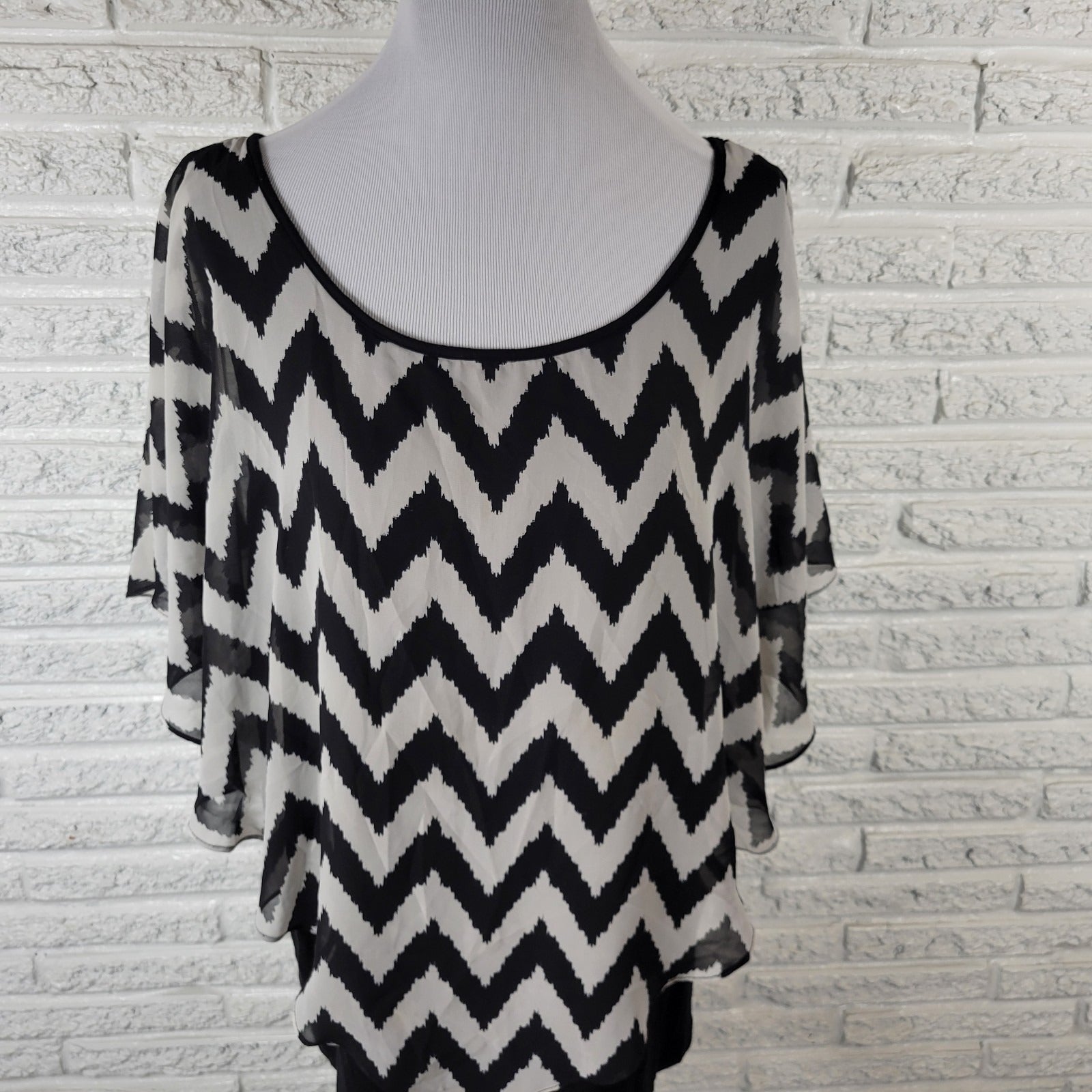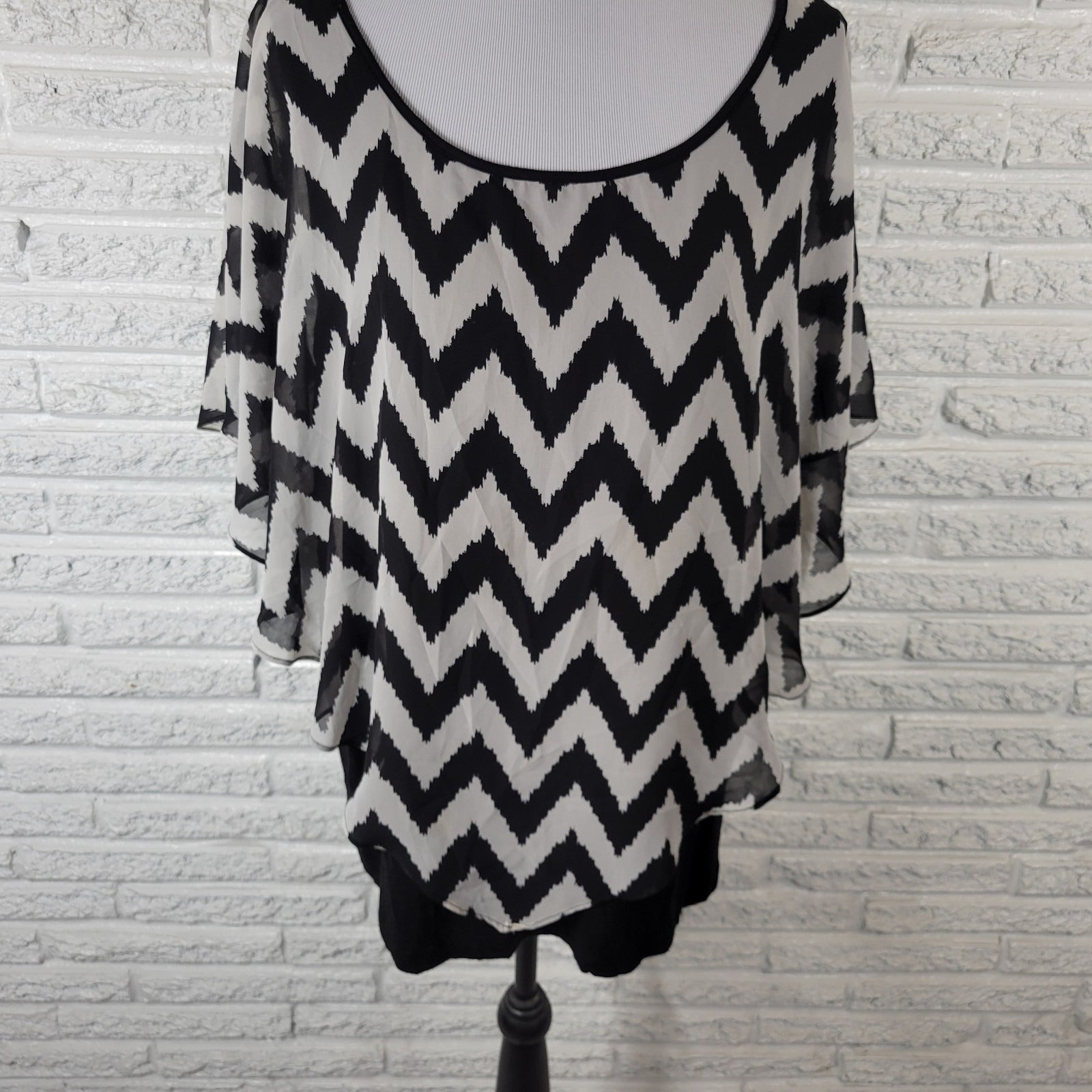 Alyx Womens Top 2X Plus Kimono Sleeve Black White Zig Zag Lightweight Lined