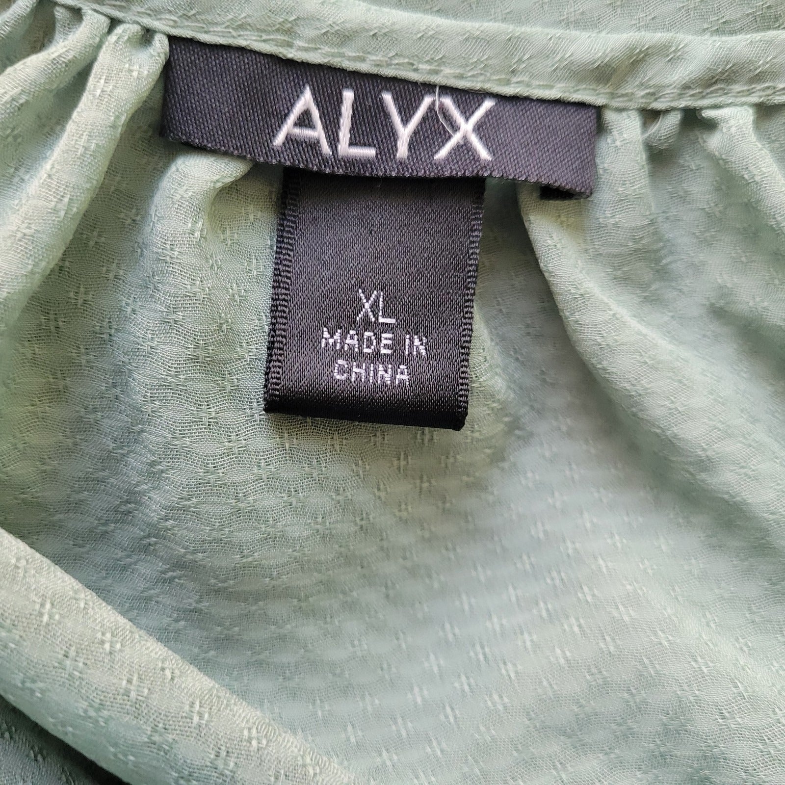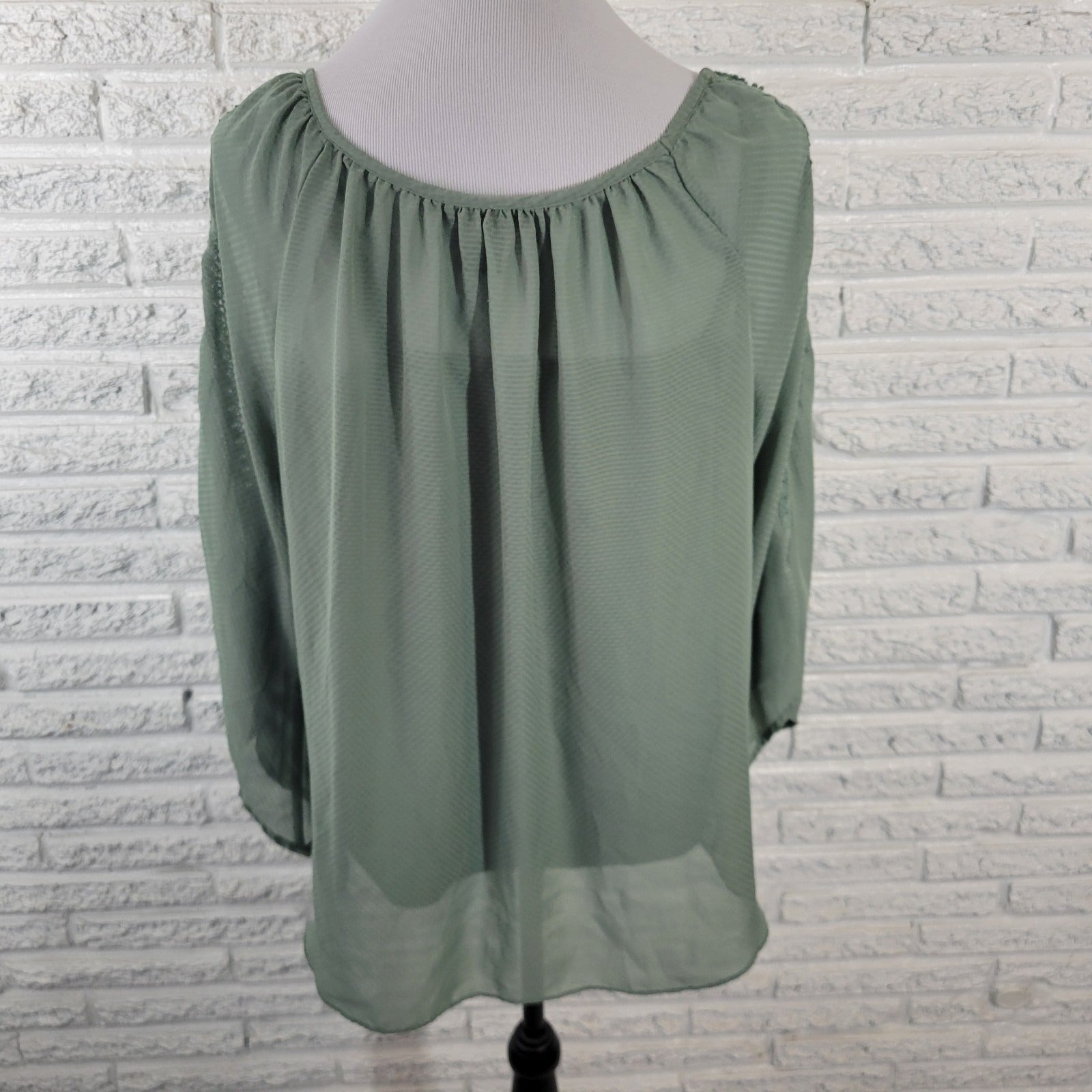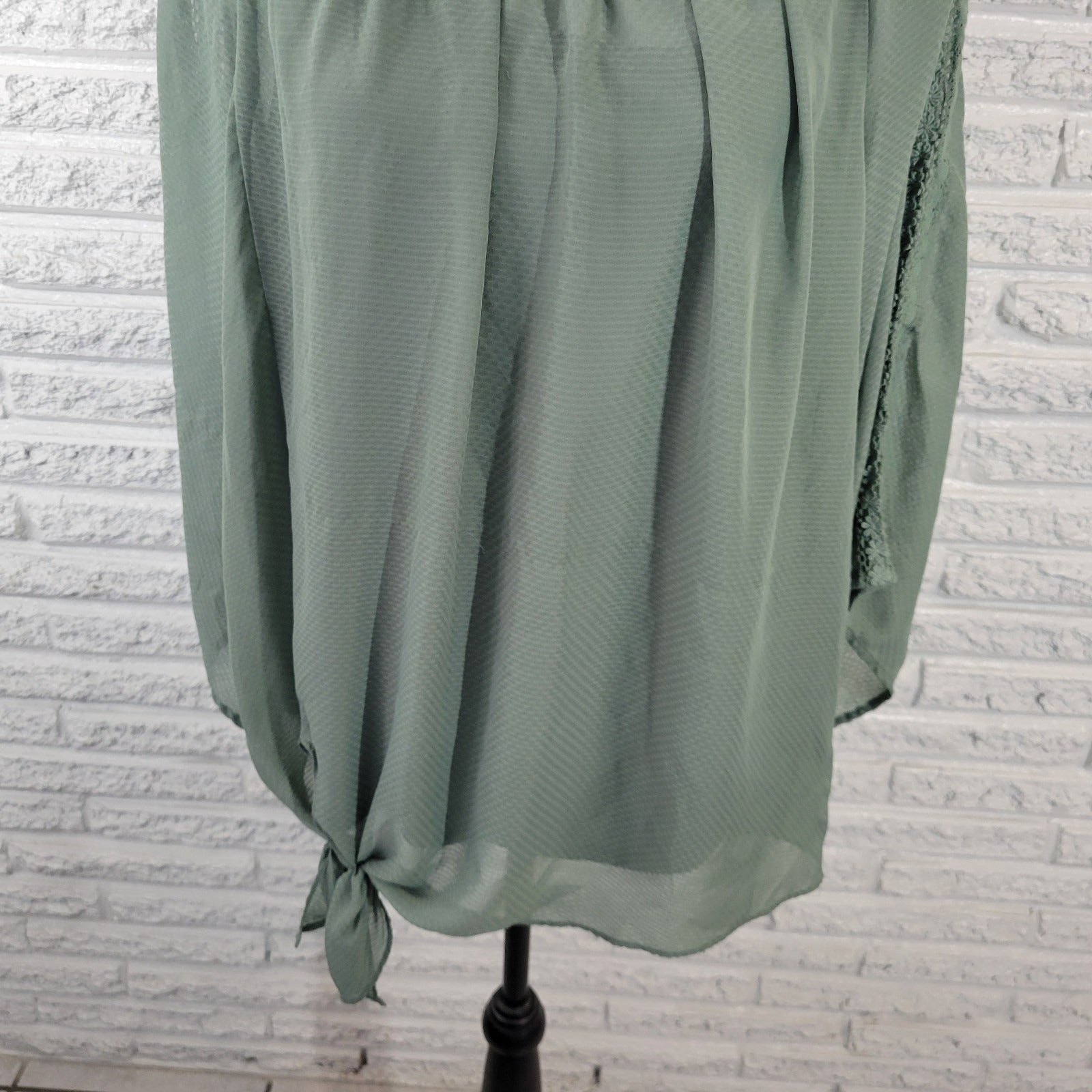 Alyx Womens Top Extra Large XL Sheer Crochet 3/4 Sleeve Green Lined Under Tank