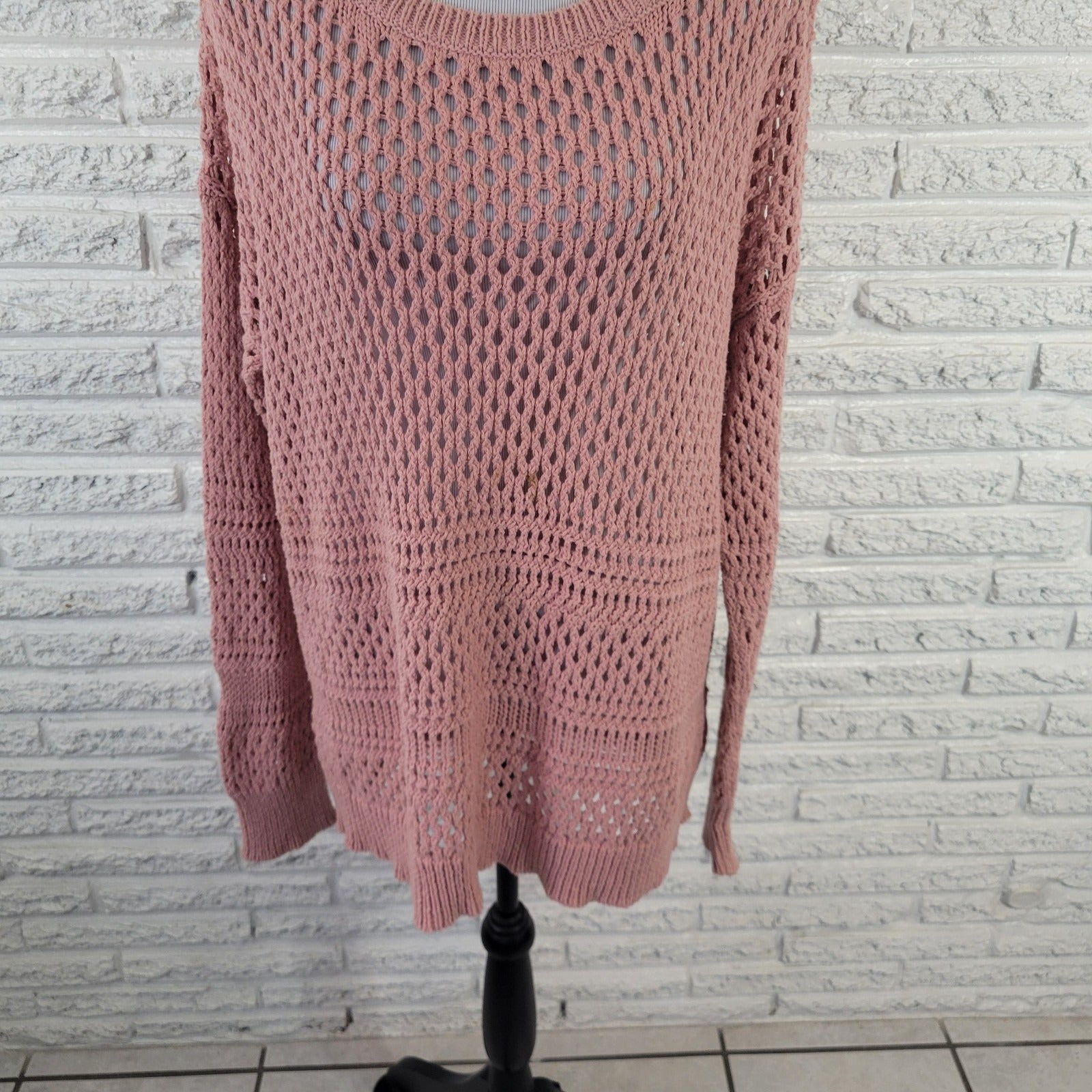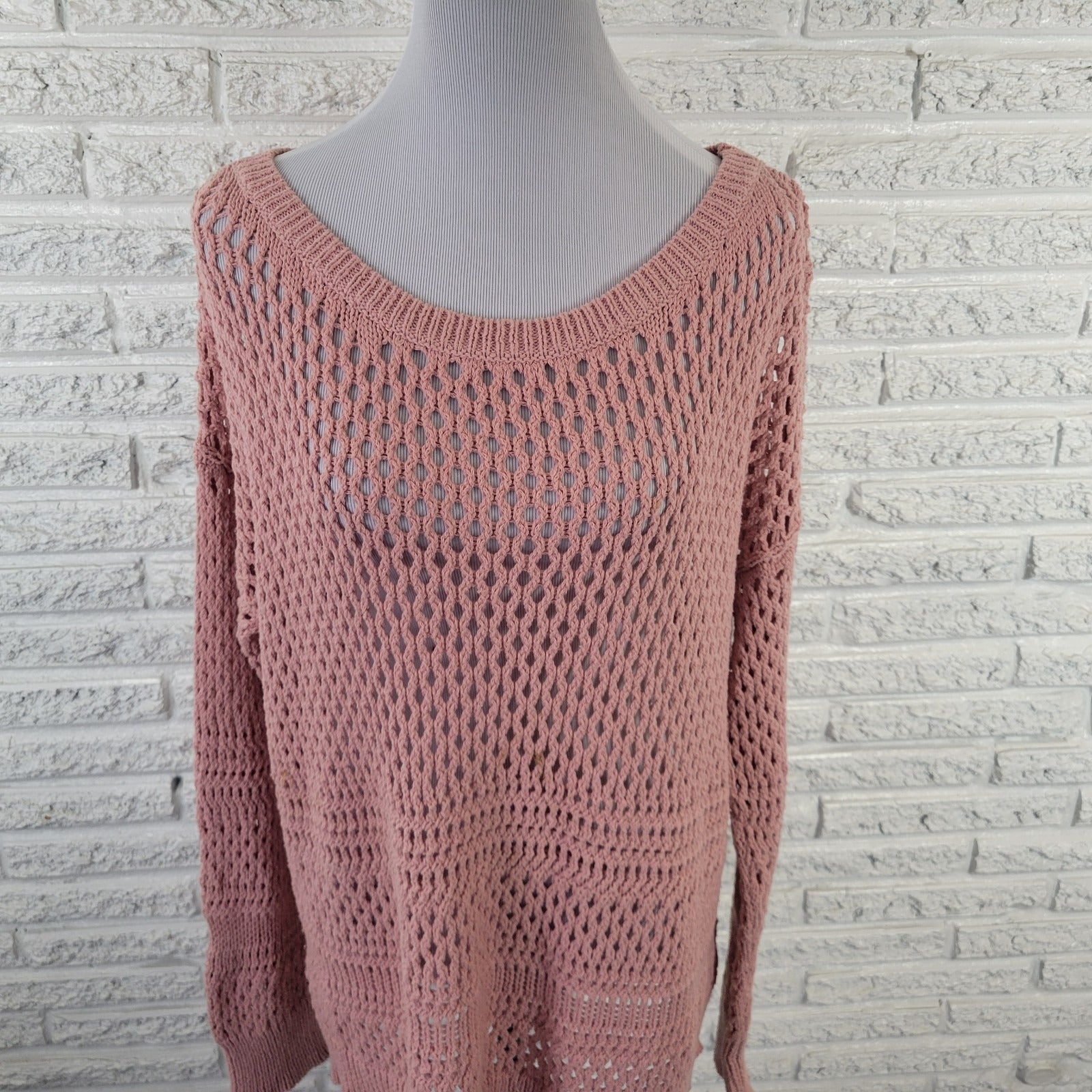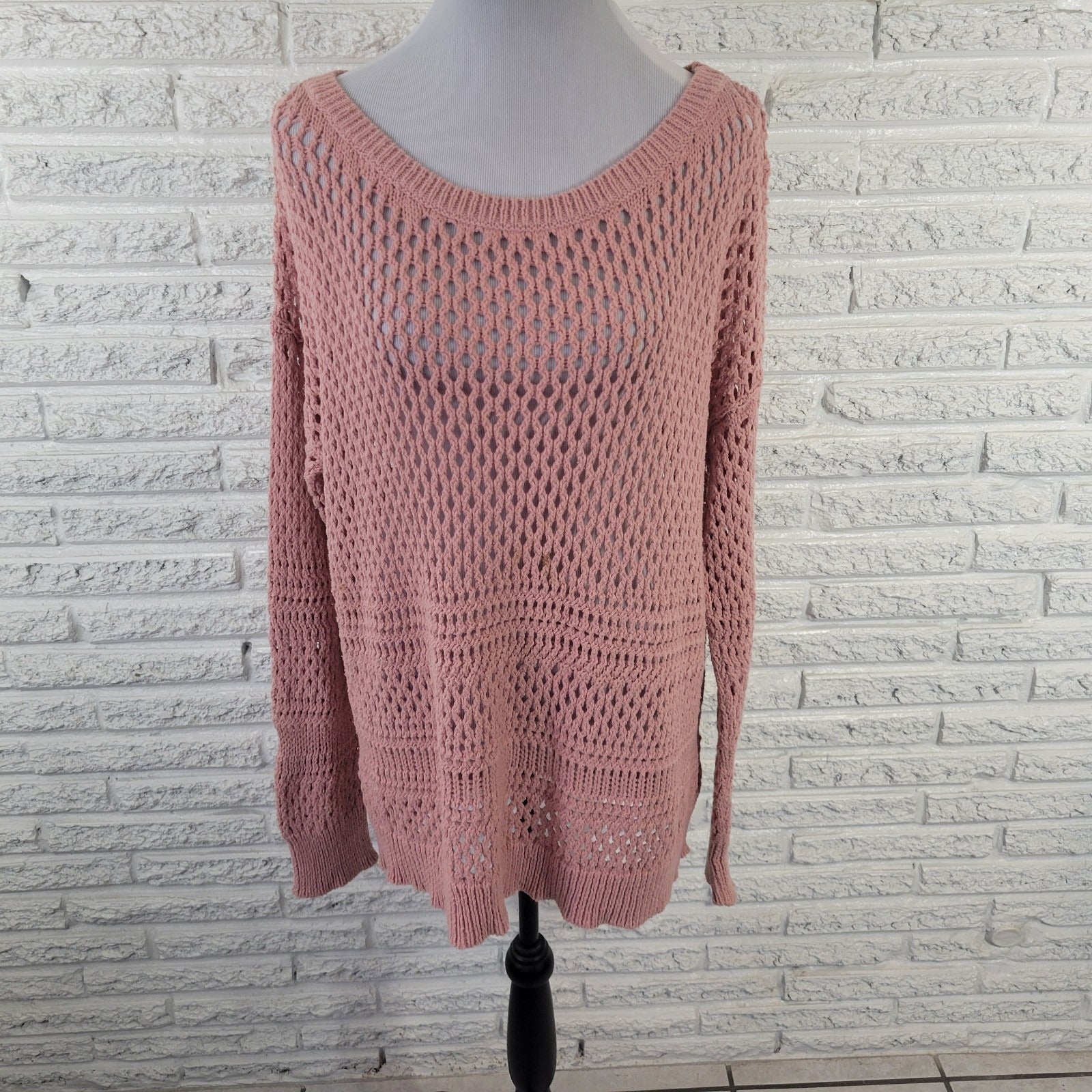 American Eagle Outfitters Womens Sweater XXL Plus Open Knit Pink Cotton Blend