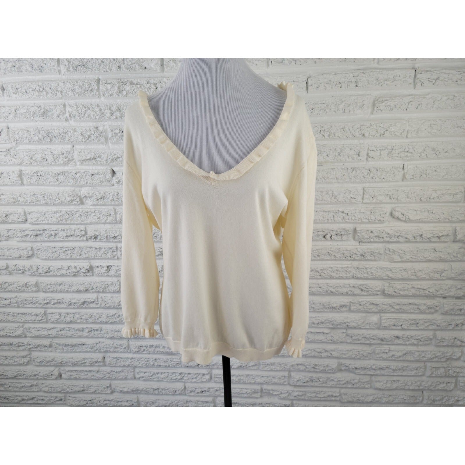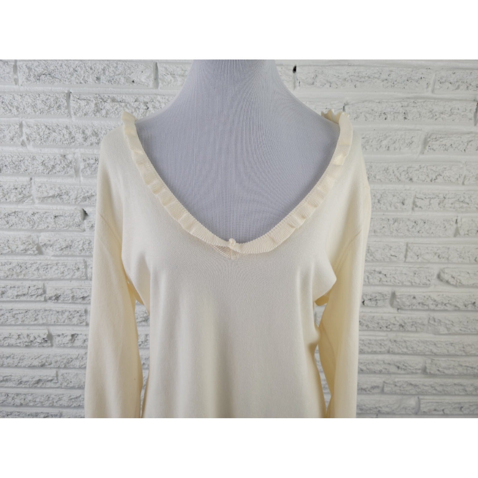 American Living Women Top Extra Large Lightweight Sweater Ruffle Cream Office