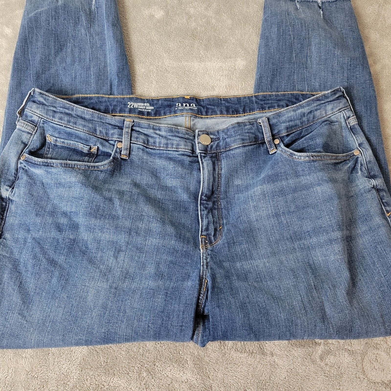 Ana Womens Jeans 22W Plus Curvy Skinny Medium Blue Denim Frayed Hems Zip Fly