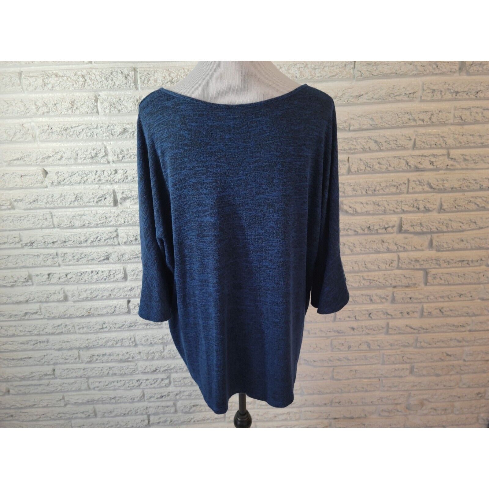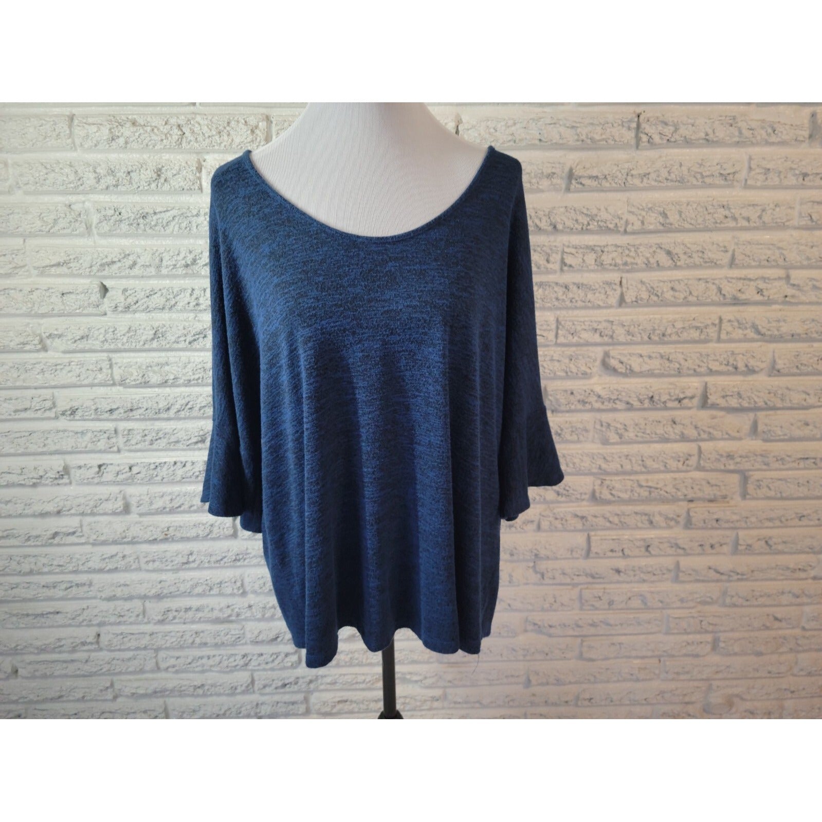 Ana Womens Sweater XXL Plus Pullover Bell Sleeve Blue Heather Lightweight Soft