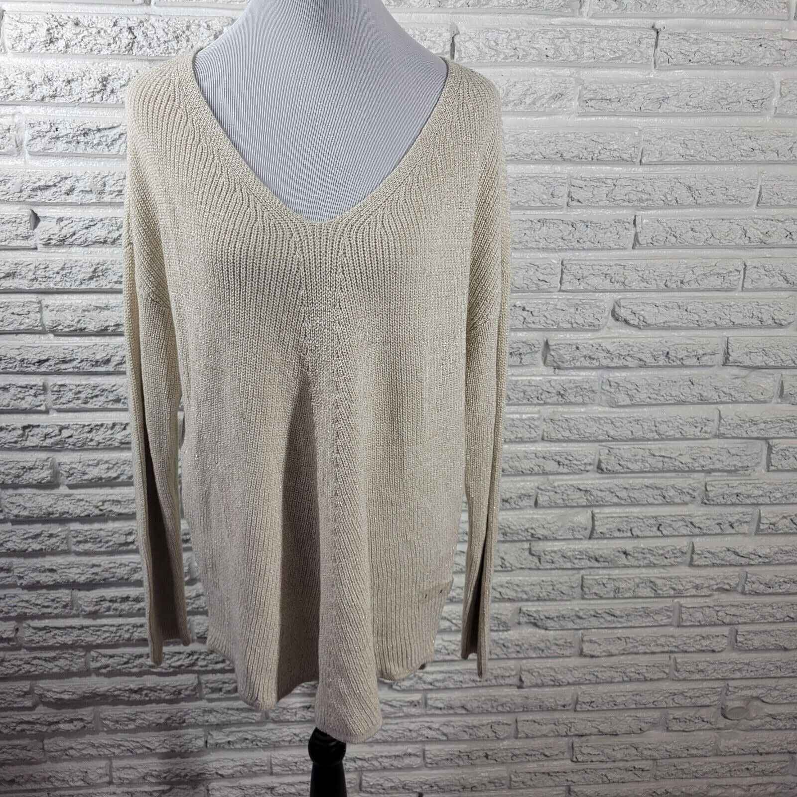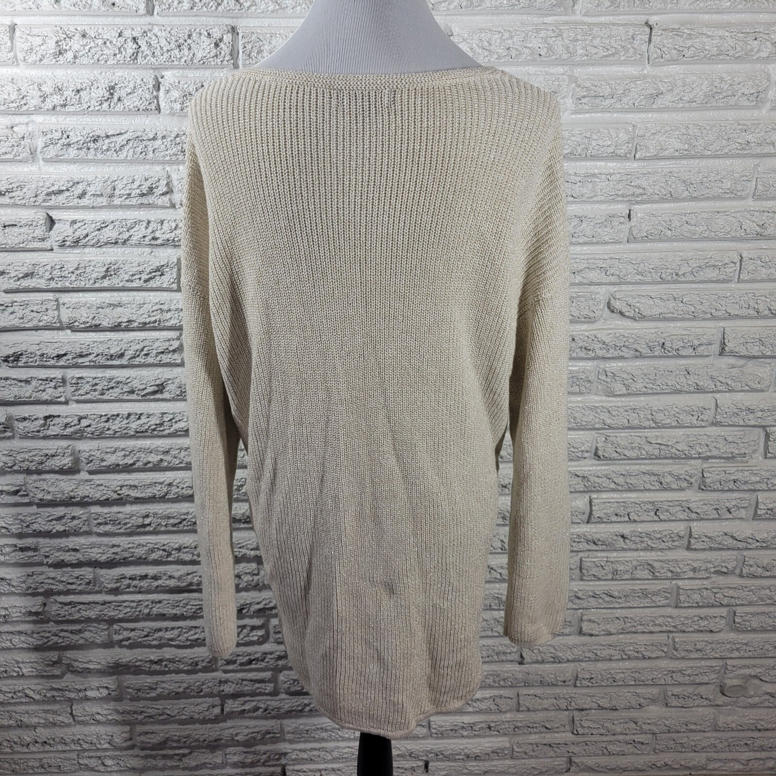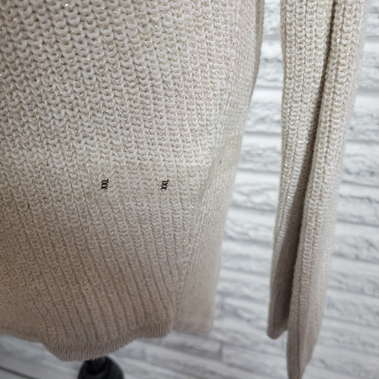 Ana Womens Sweater XXL Plus Pullover White Cotton Blend Metallic Thread Career