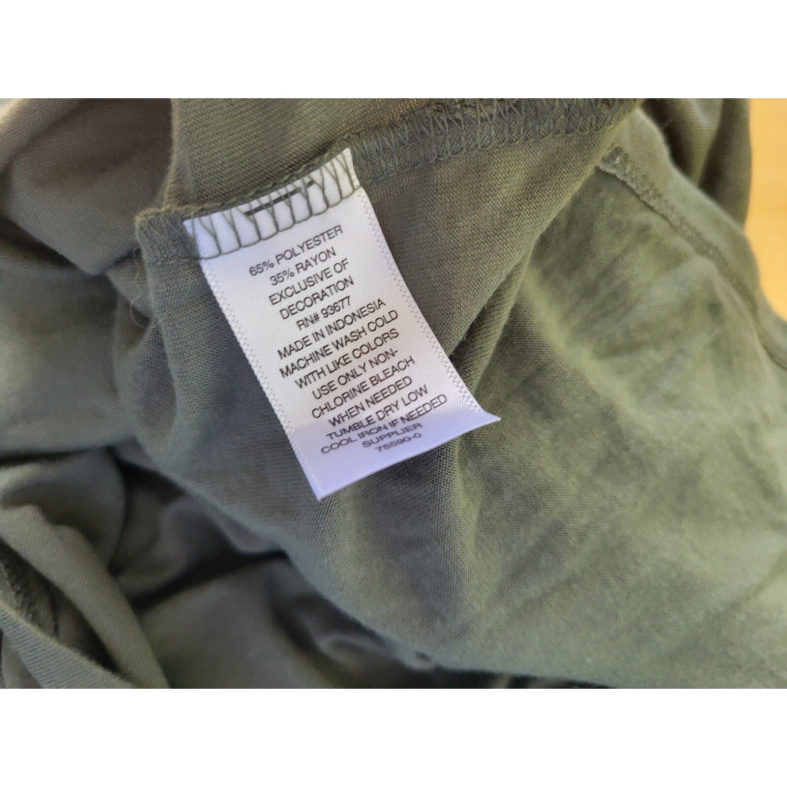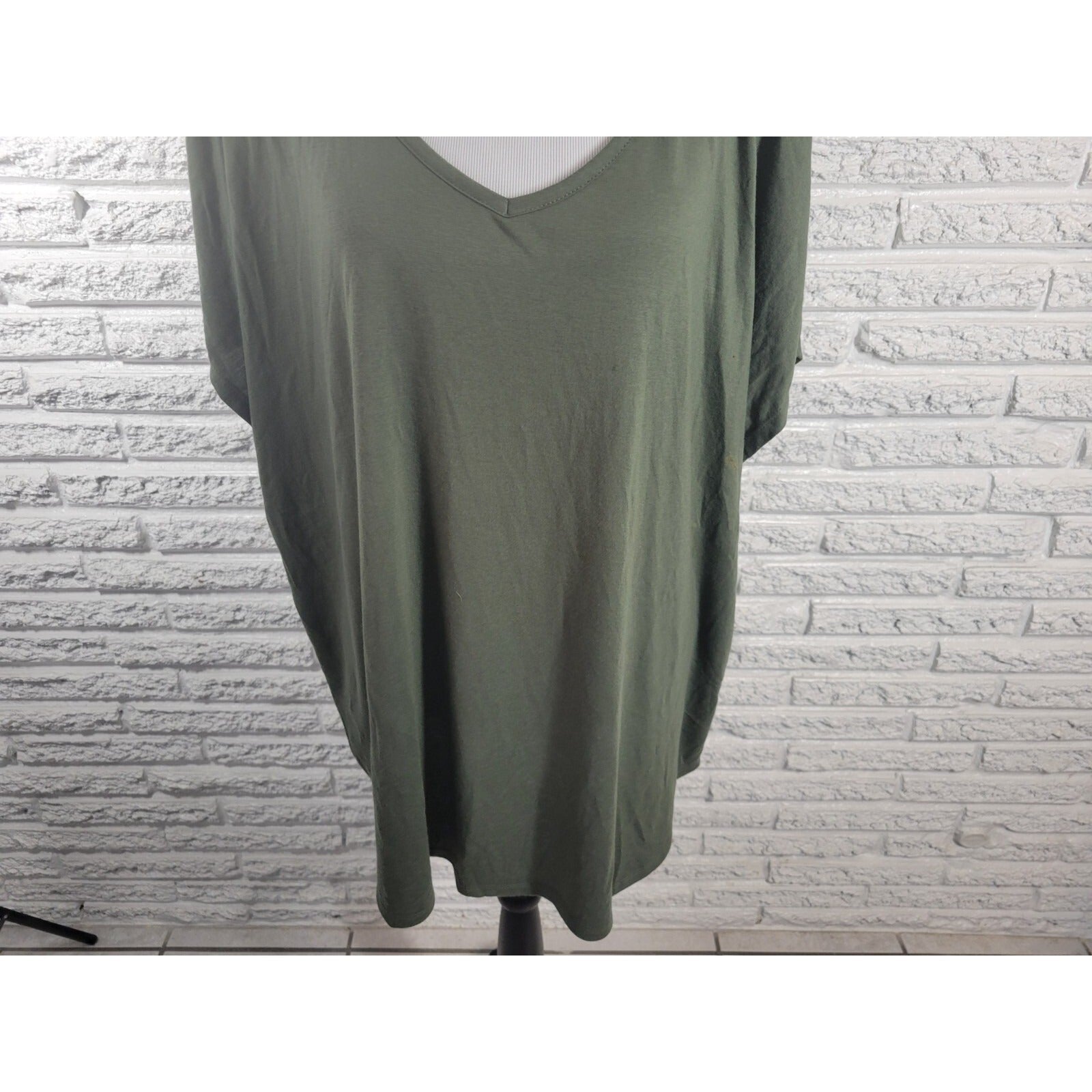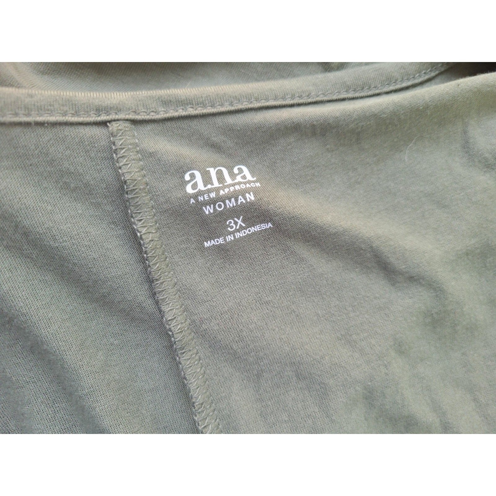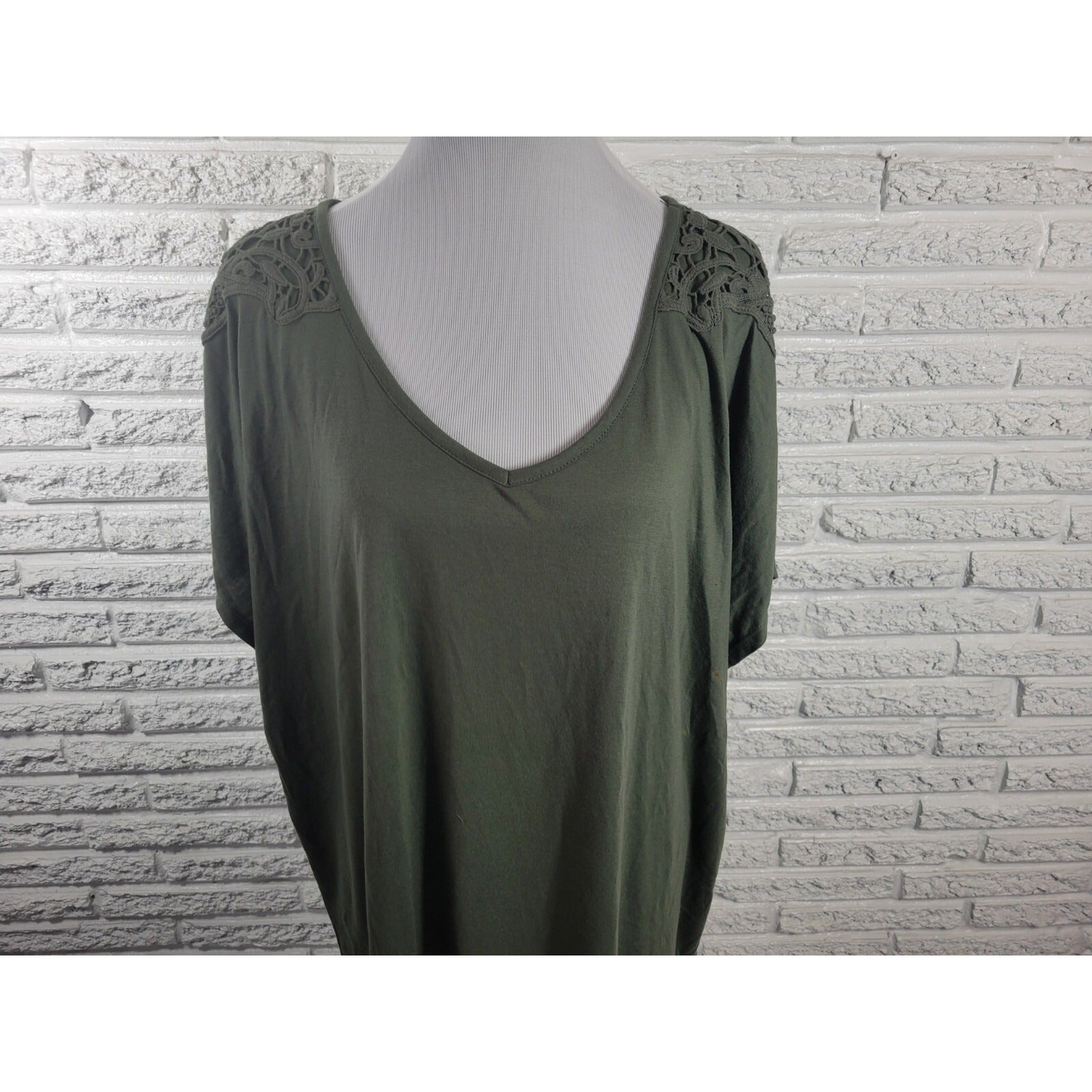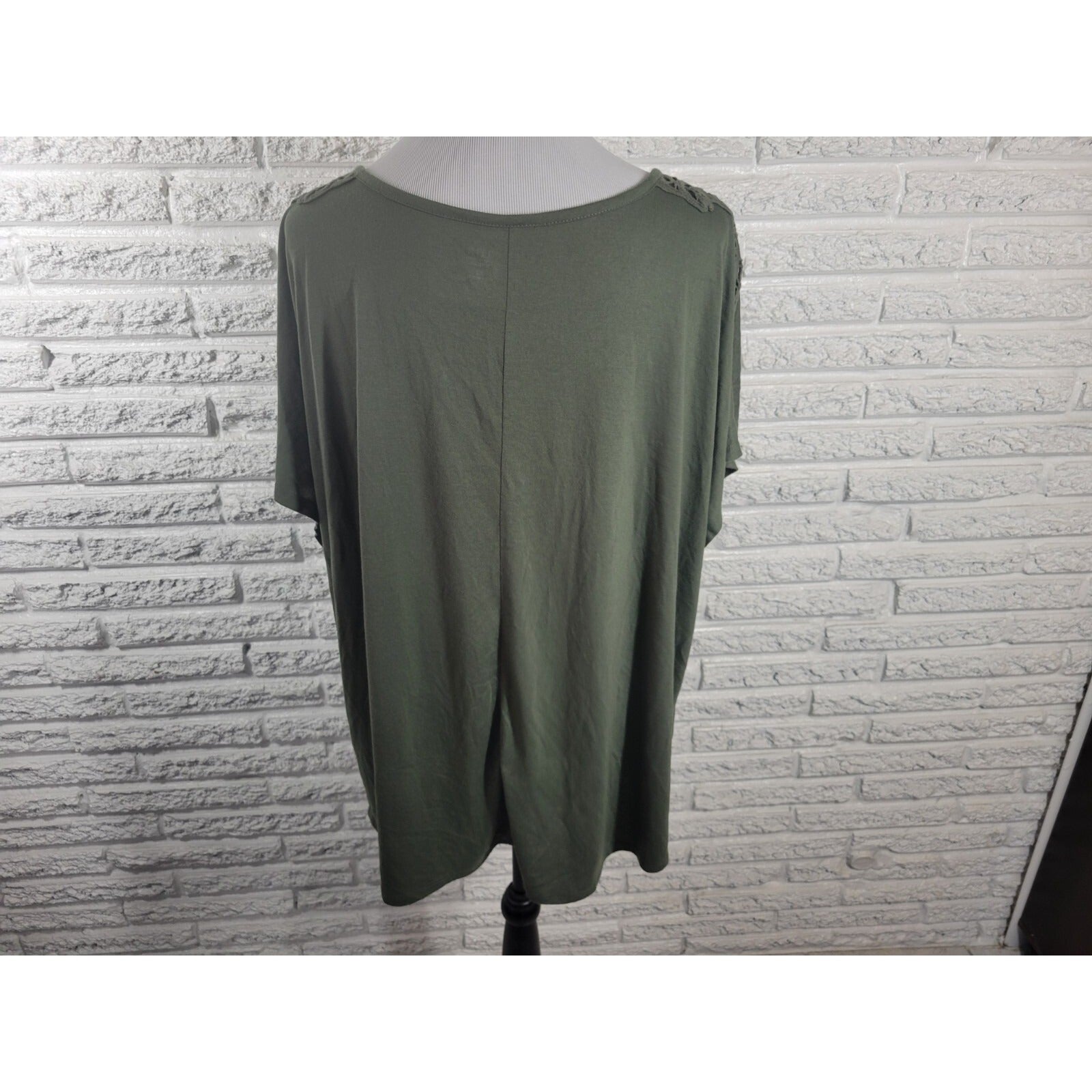 Ana Womens Top 3X Plus Tee Cap Sleeve Green Crochet Shoulder Soft Poly Blend