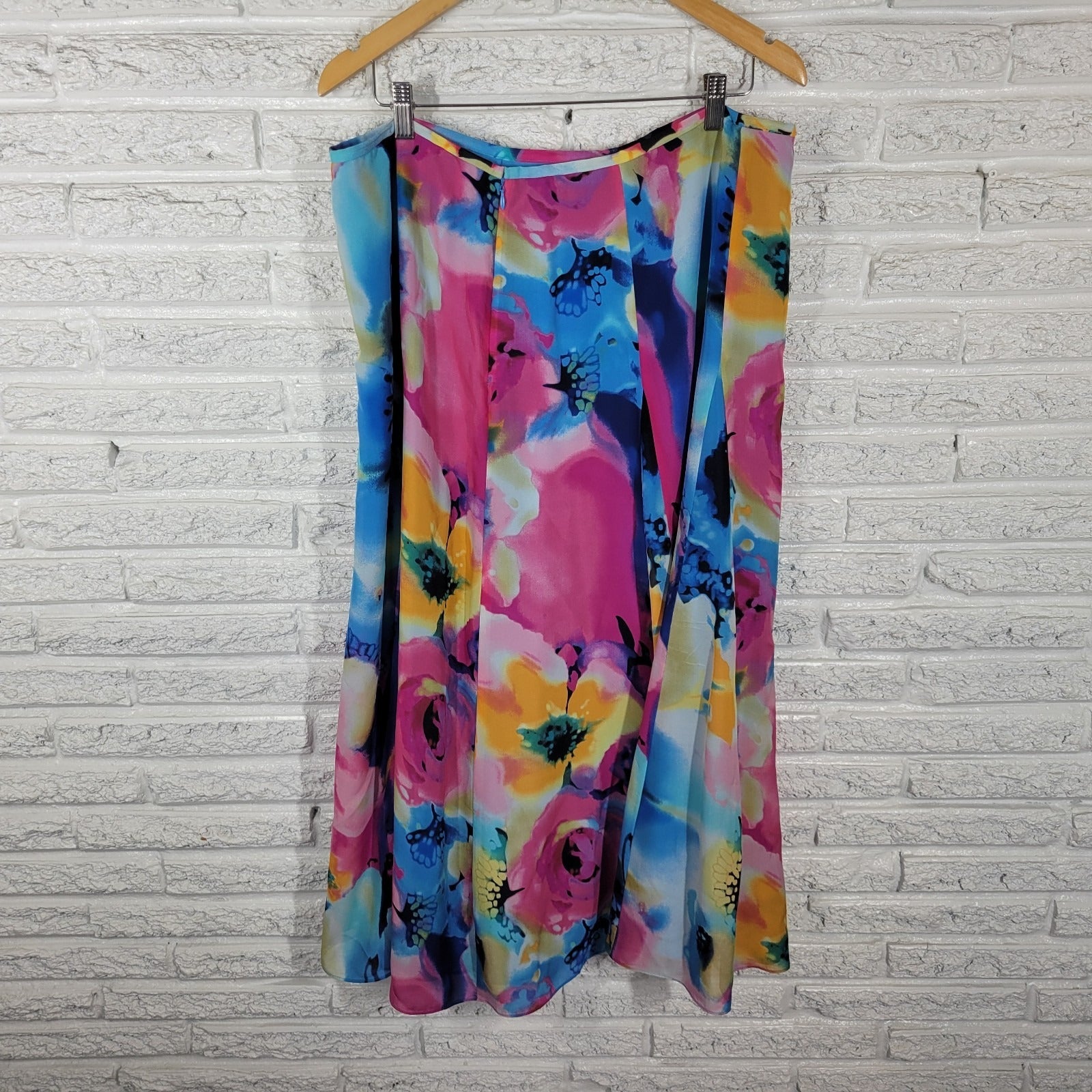 Anne Klein Women Skirt 16 ALine Midi Silk Blue Pink Floral Watercolor Lined Zip