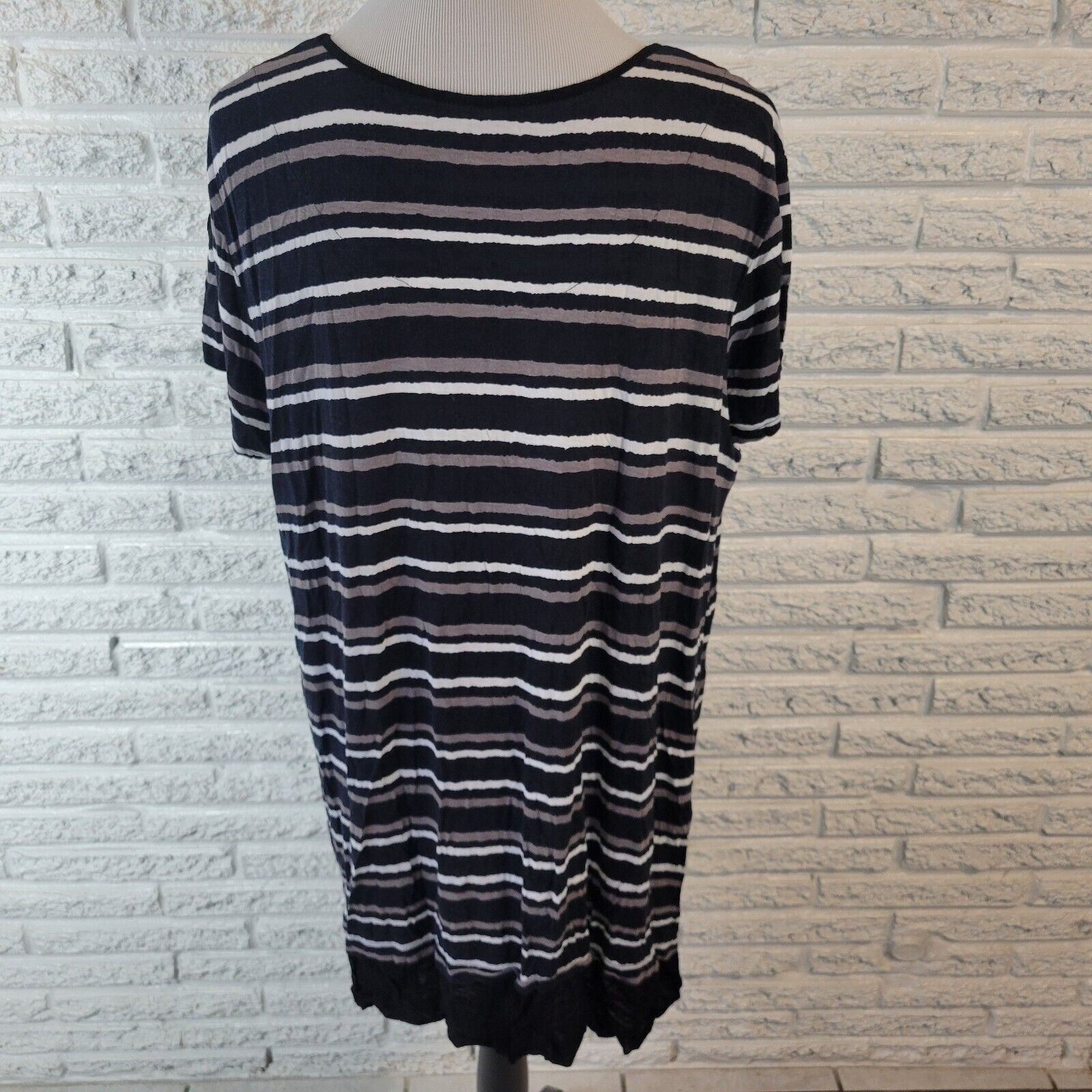 Anne Klein Womens Dress XL Mini Short Sleeve Black Stripe Chiffon Hem Pockets