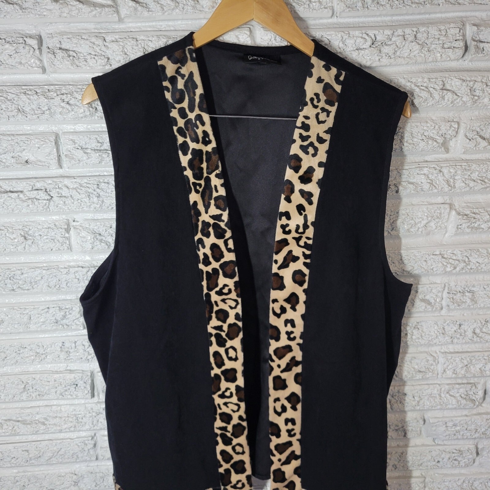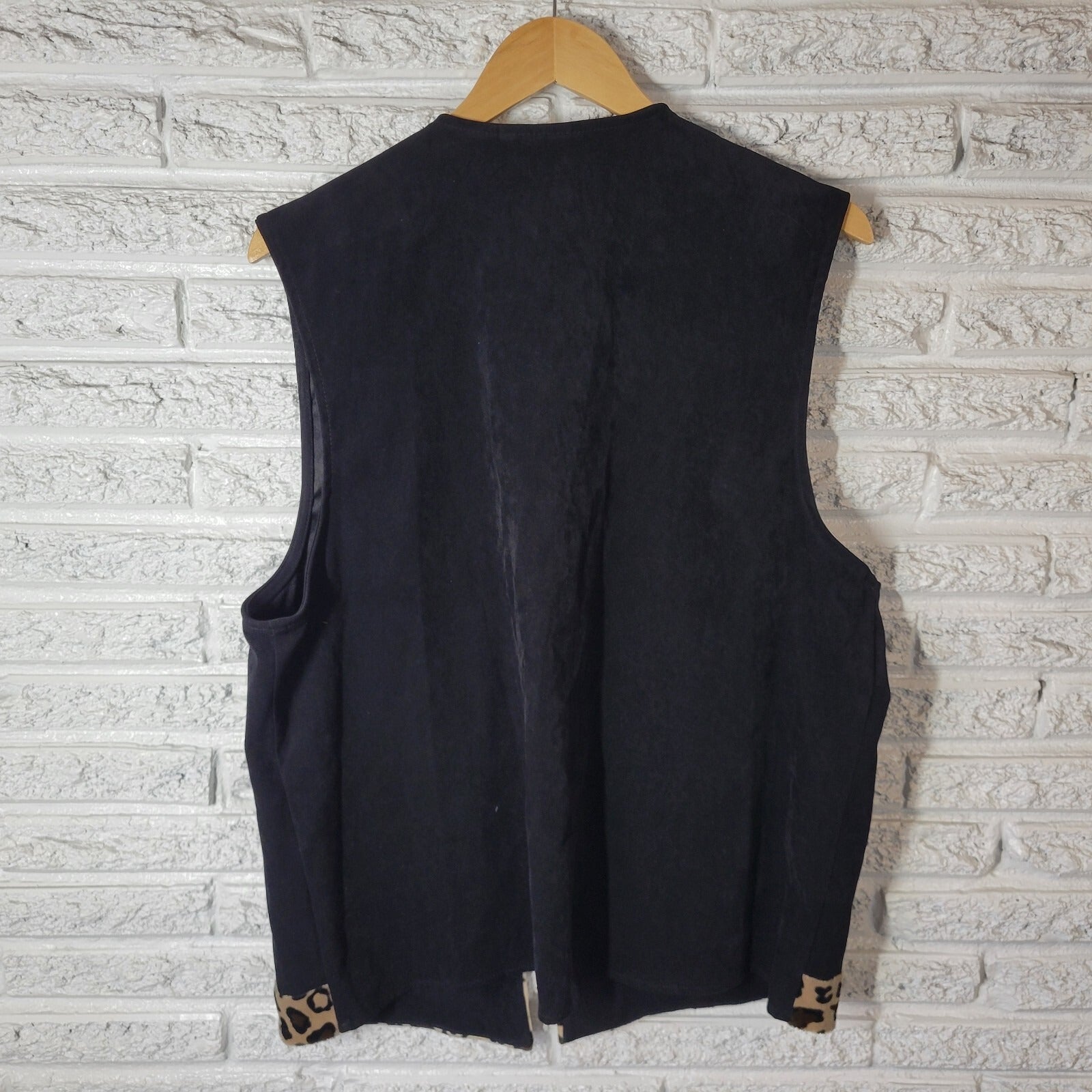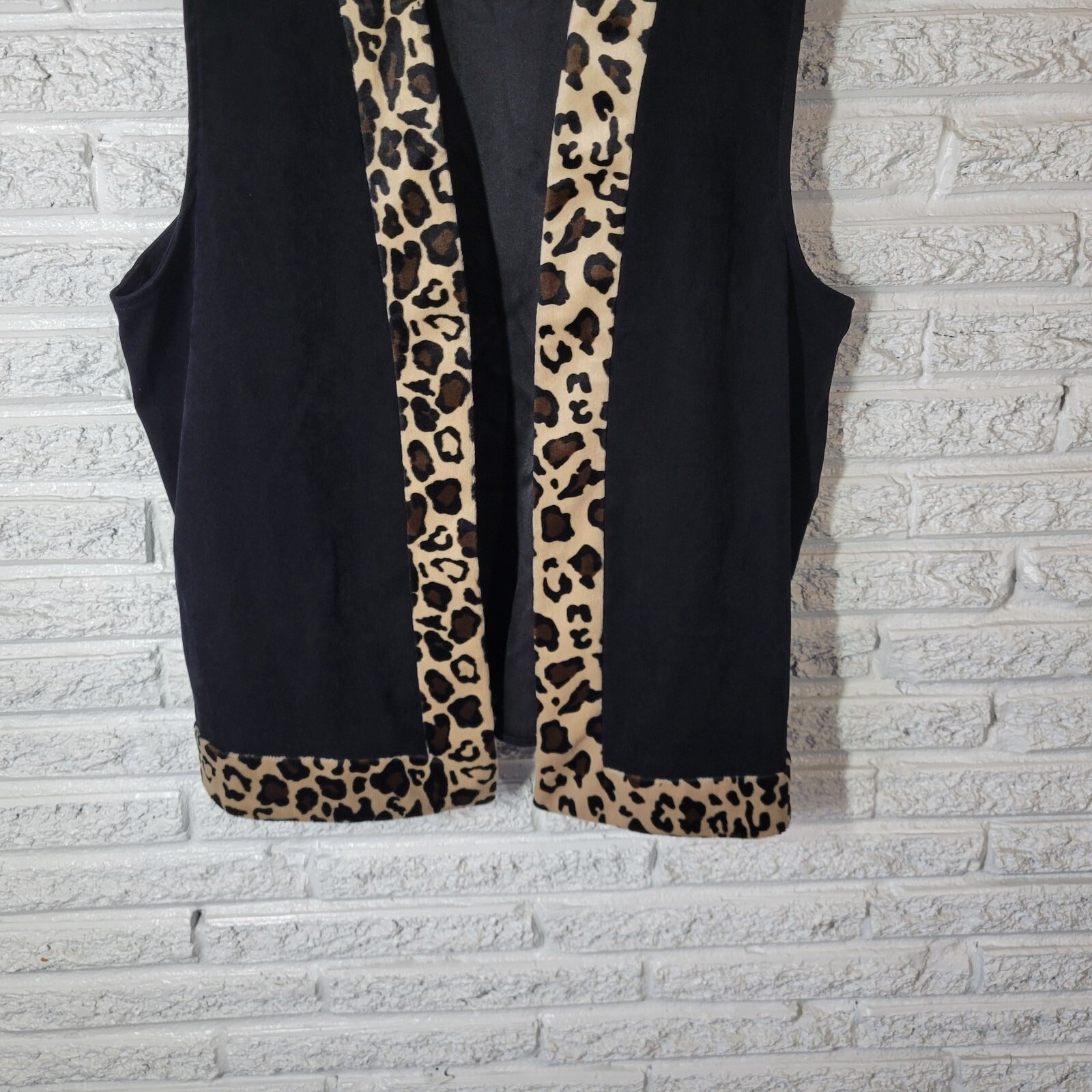 Anthony Mark Hankins Womens Vest 16W Open Sleeveless Black Animal Print Velour