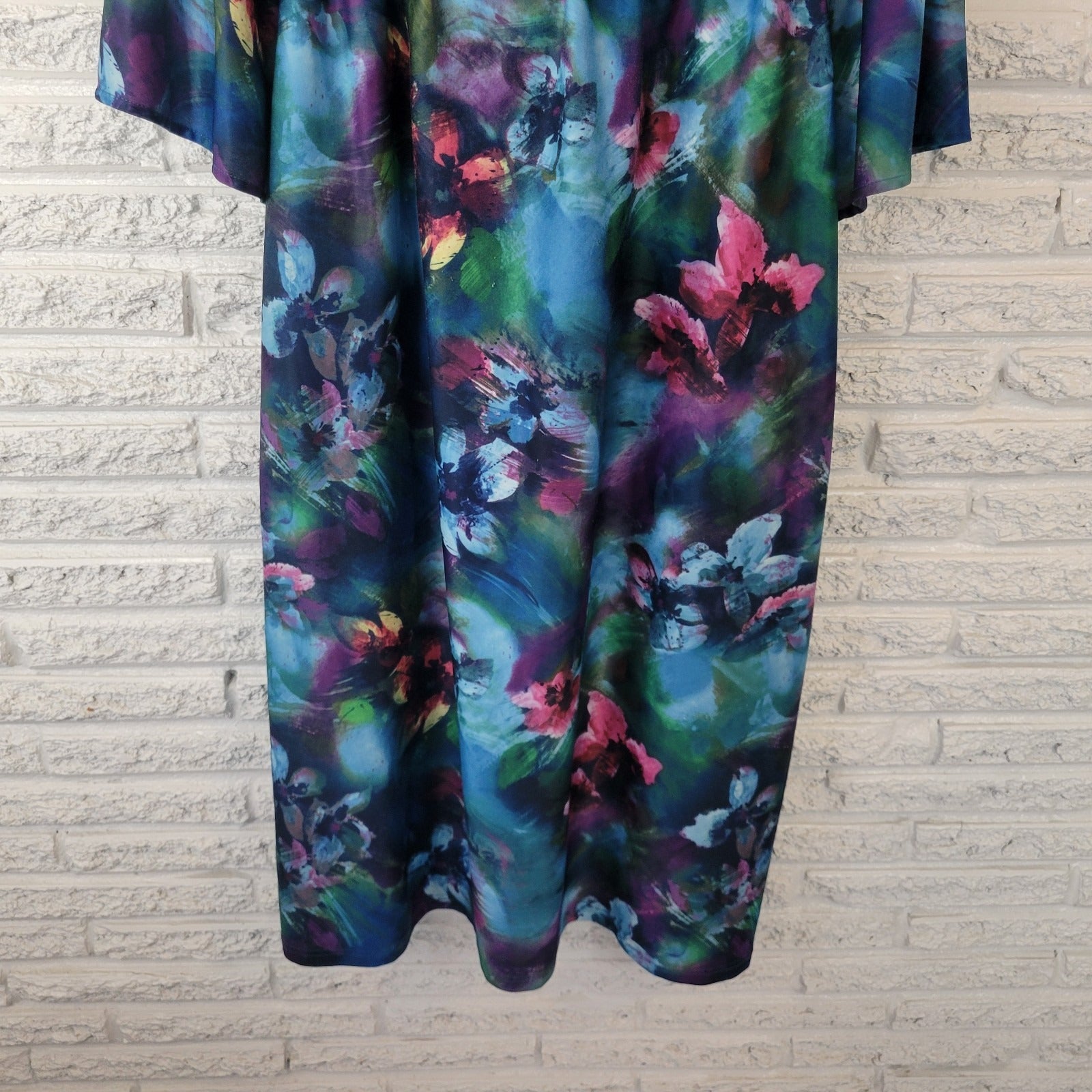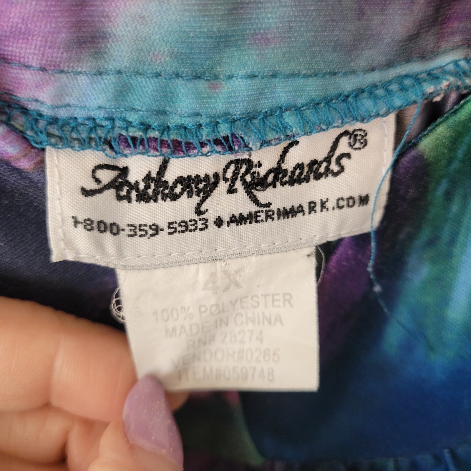 The Anthony Richards Women's Dress in size 4X is a comfortable and stylish muu muu kaftan in a beautiful blue/purple watercolor print. Featuring a V-neckline, short sleeves, and a pullover closure, this knee-length dress is perfect for travel or casual occasions. Made of polyester with stretch, it is machine washable for easy care. The dress also has a unique feature of pockets, adding both functionality and style to the garment. Perfect for all seasons, this plus-size kaftan from the brand Anthony Richards is a versatile and stylish addition to any woman's wardrobe.