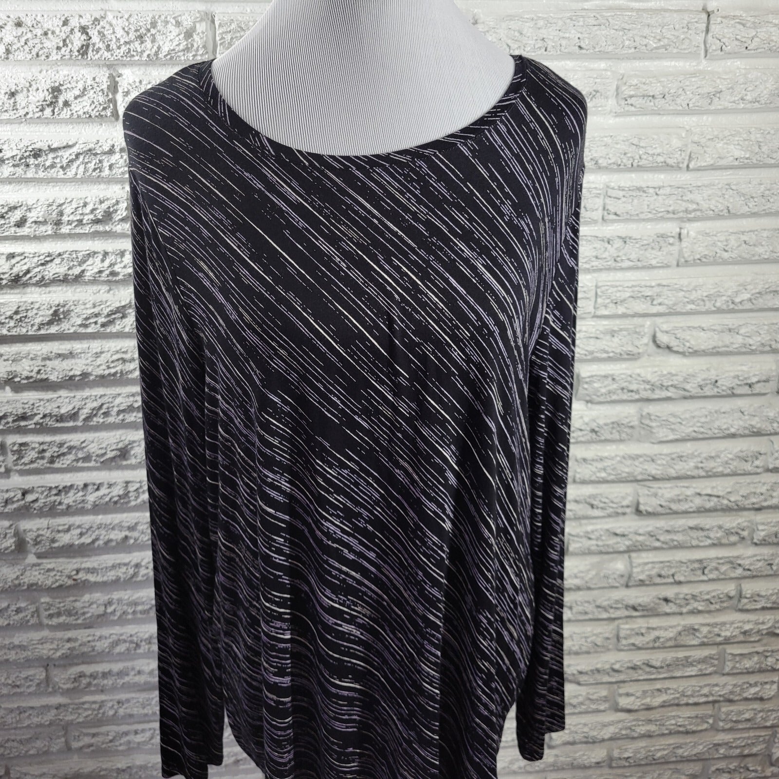 Apt 9 Essentials Womens Top Extra Large Black Diagonal Stripe Comfy Casual