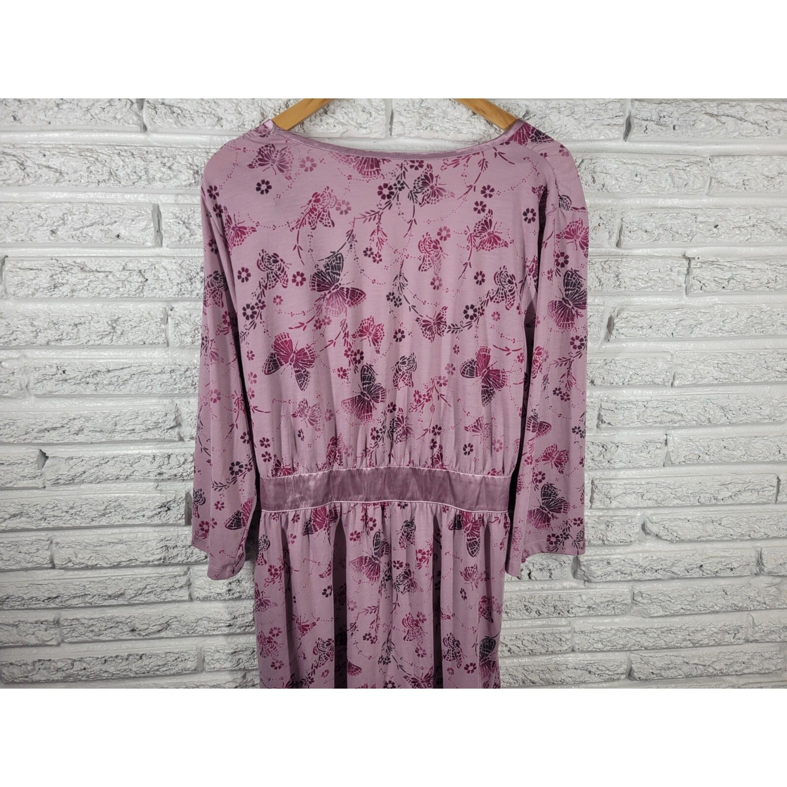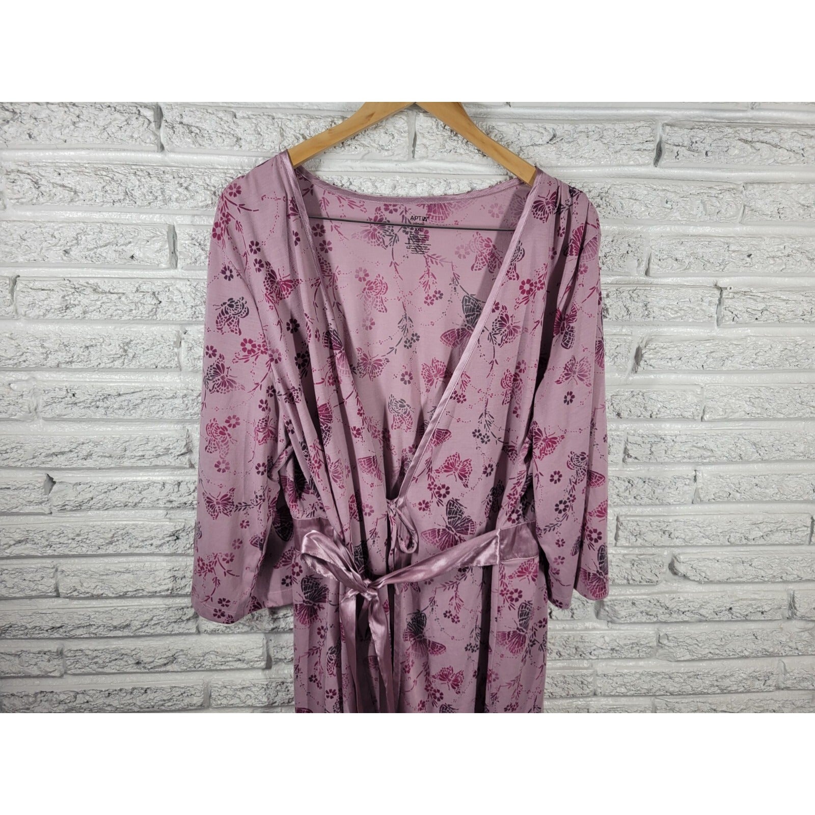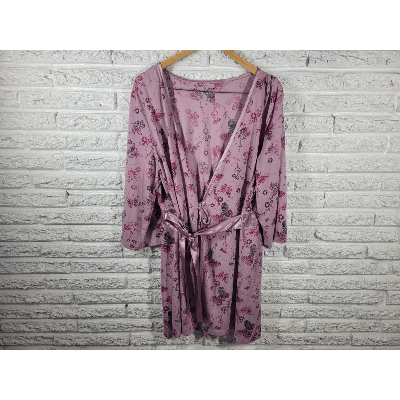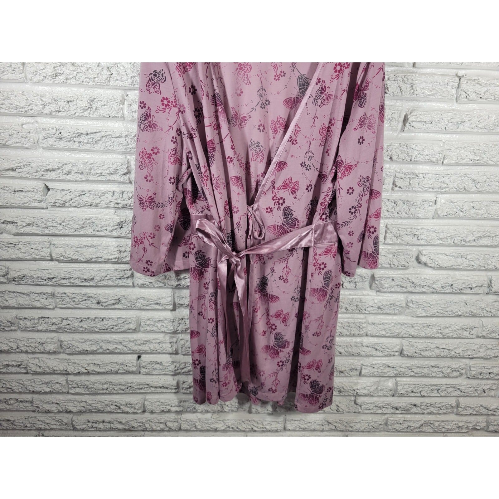 Apt 9 Intimates Womens Robe XXL Plus 3/4 Sleeve Butterflies Lavender Lightweight