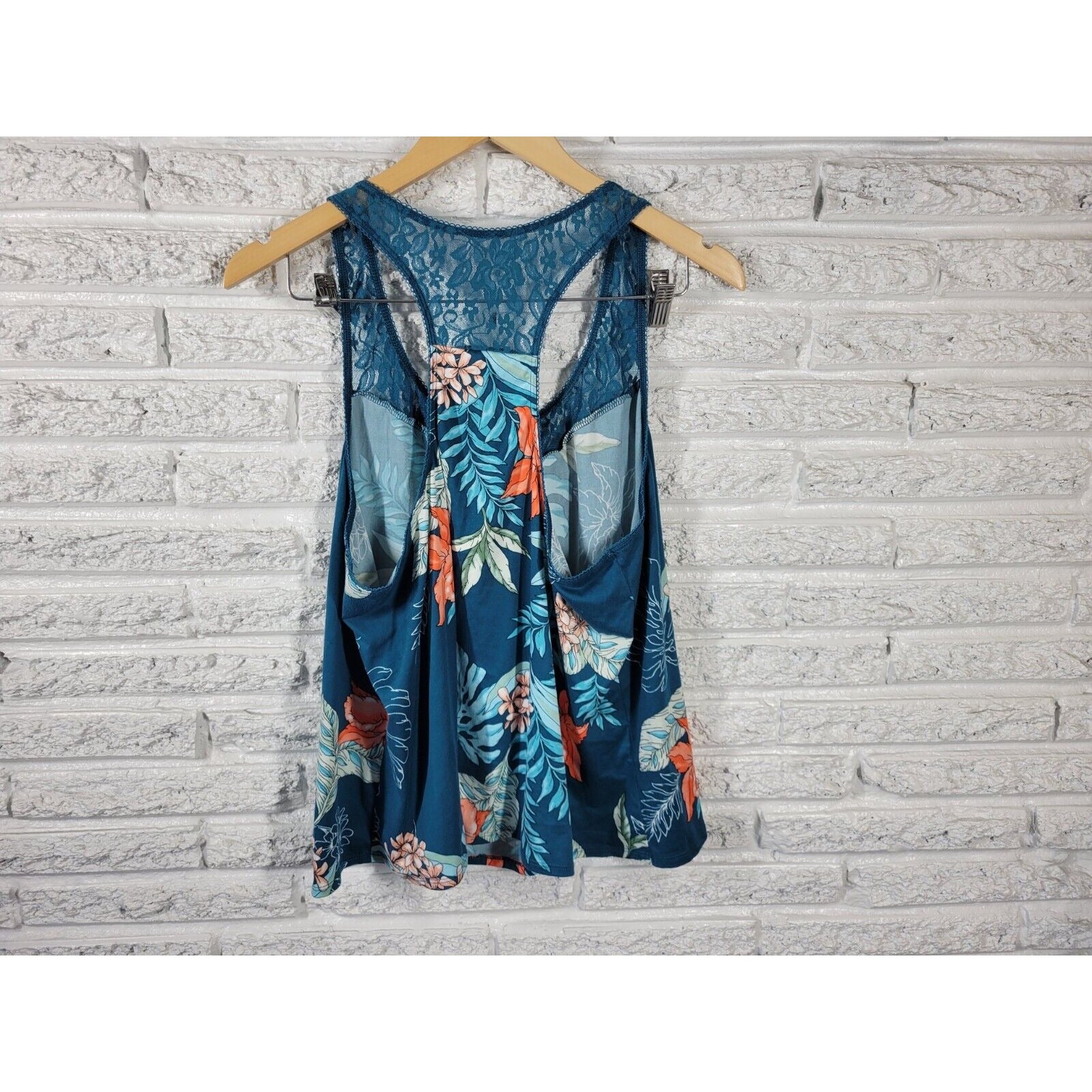 Apt 9 Women Top 1X Pajama Tank Racerback Lace Blue Floral Lightweight Poly Blend