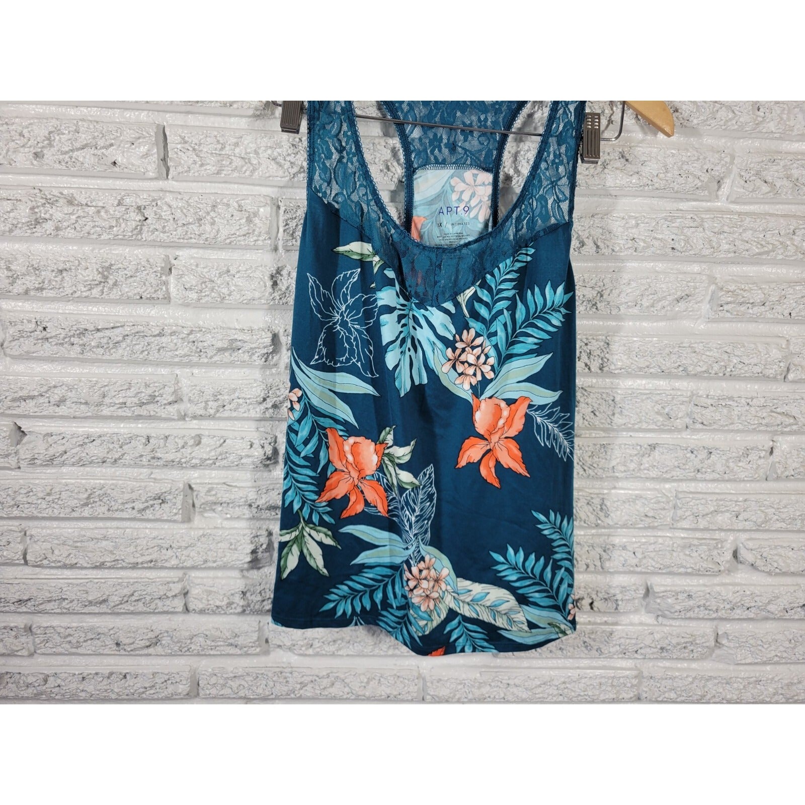 Add a touch of elegance to your sleepwear collection with this Apt. 9 Women Top in size 1X. The blue floral print is perfect for any season, while the lightweight poly blend fabric makes it comfortable to wear all year round. The sleeveless design and round neck neckline create a relaxed look, and the racerback lace details add a touch of sophistication. This pajama top is easy to care for as it is machine washable, making it hassle-free to maintain. It is perfect for lounging around the house or even as a casual top. Made in Cambodia, this top is not only stylish but also affordable. Elevate your sleepwear collection with this Apt. 9 Women Top and enjoy a comfortable and stylish night's sleep.