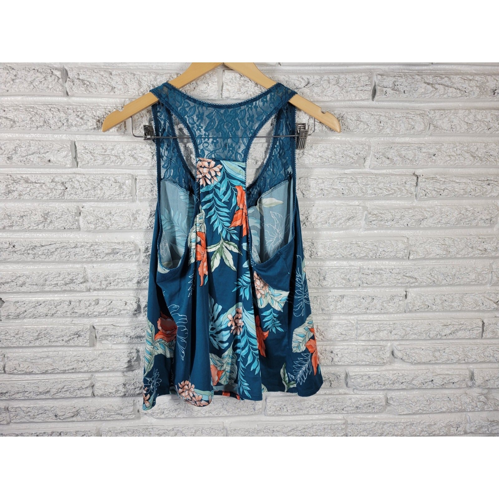 Apt 9 Women Top 1X Plus Pajama Tank Racerback Lace Blue Lightweight Poly Blend