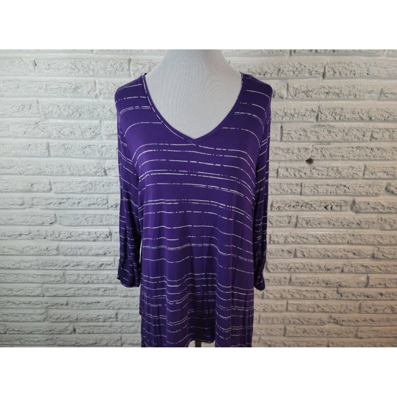 Apt 9 Women Top Extra Large XL Tee Tunic 3/4 Sleeve Asymmetric Shark Bite Purple