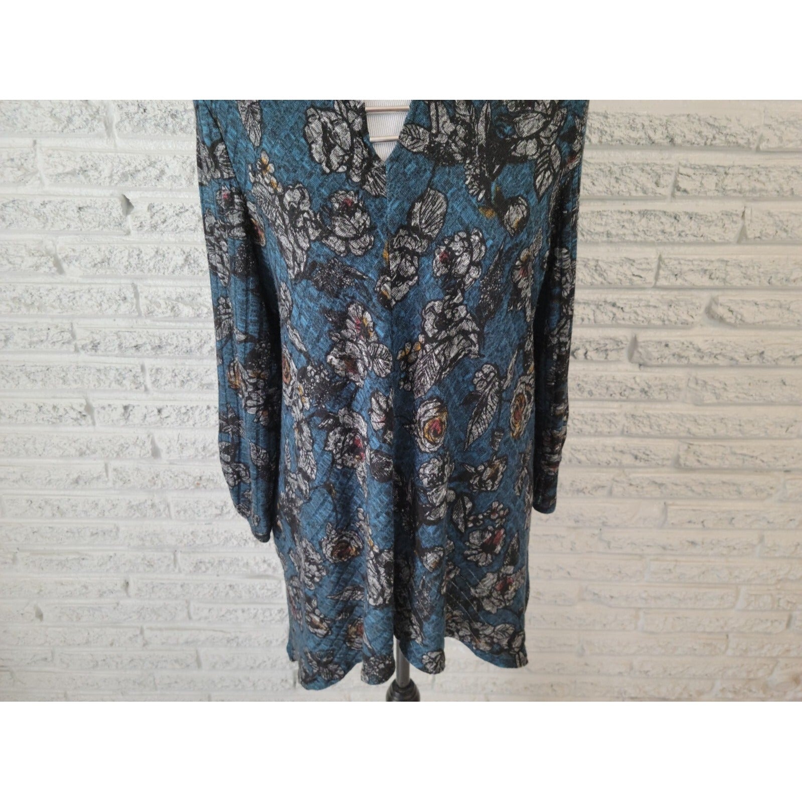 Apt 9 Women Top XXL Plus Tunic 3/4 Sleeve Ruched Blue Floral Poly Blend Keyhole