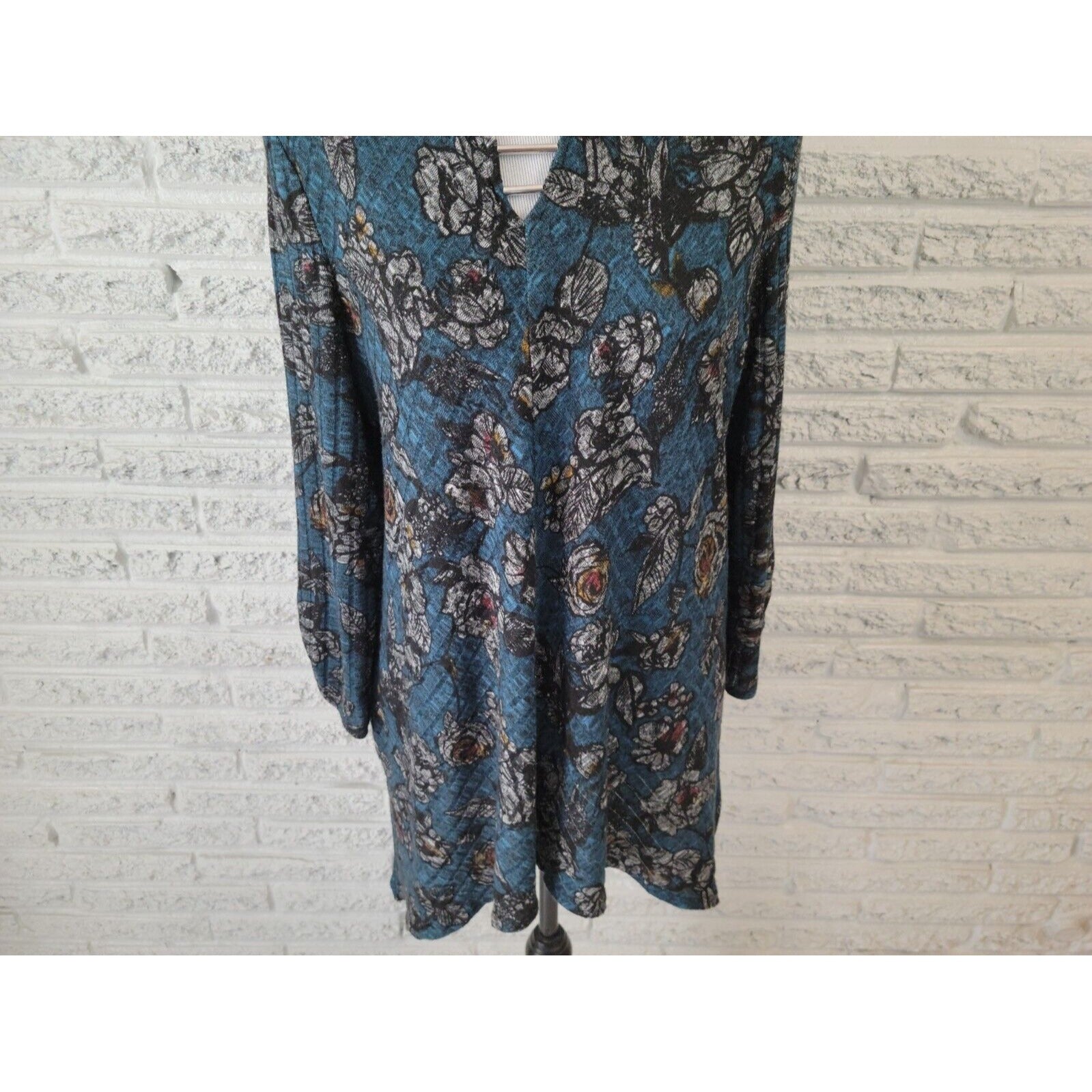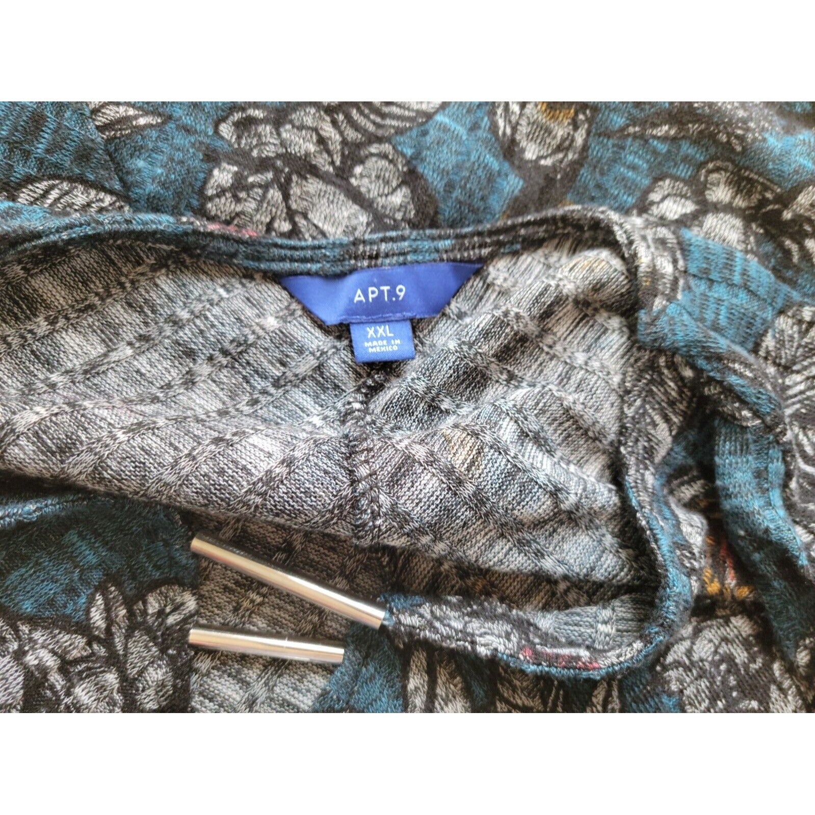 Apt 9 Women Top XXL Tunic 3/4 Sleeve Knit Ruched Blue Floral Poly Blend Keyhole