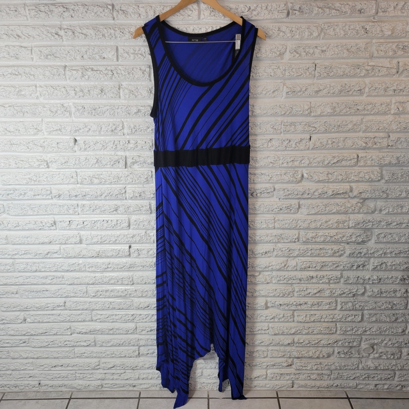 Apt 9 Womens Dress 1X Plus Sheath Sleeveless Blue Black Stripe Handkerchief Hem
